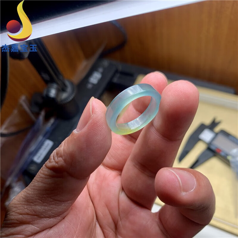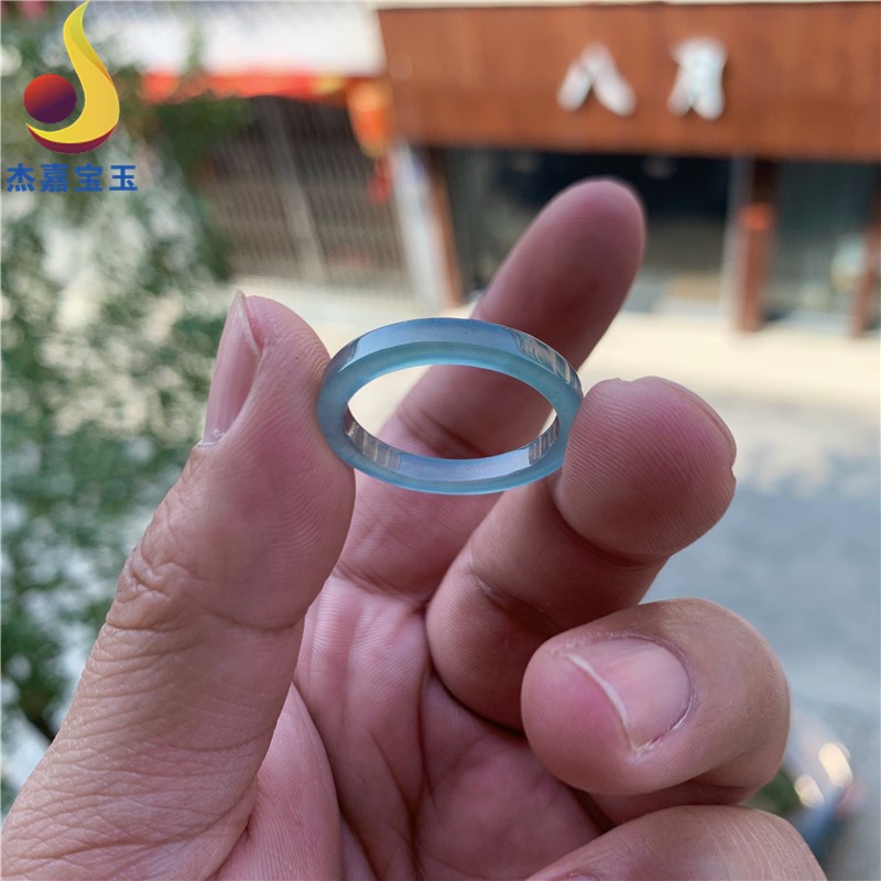 杰嘉宝玉 原创翡翠蓝水戒圈冰种方戒情侣指环男女款礼物带证书 其他尺寸支持定做不退不换