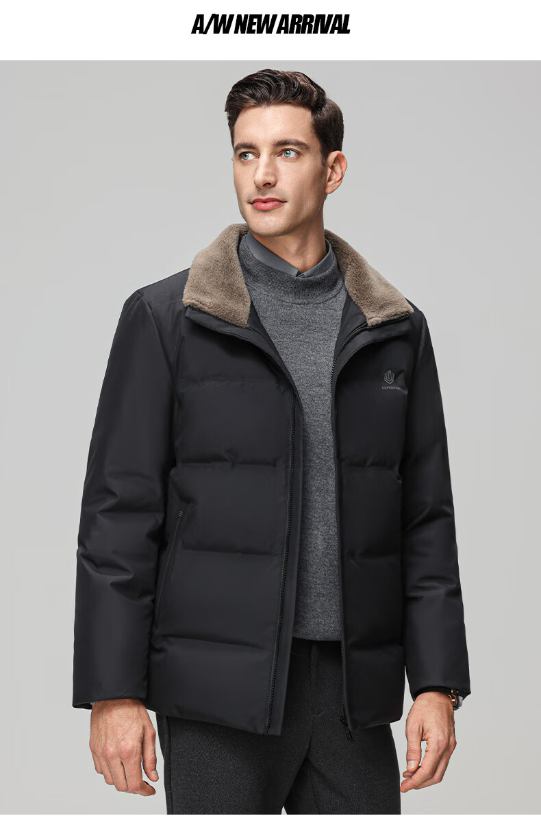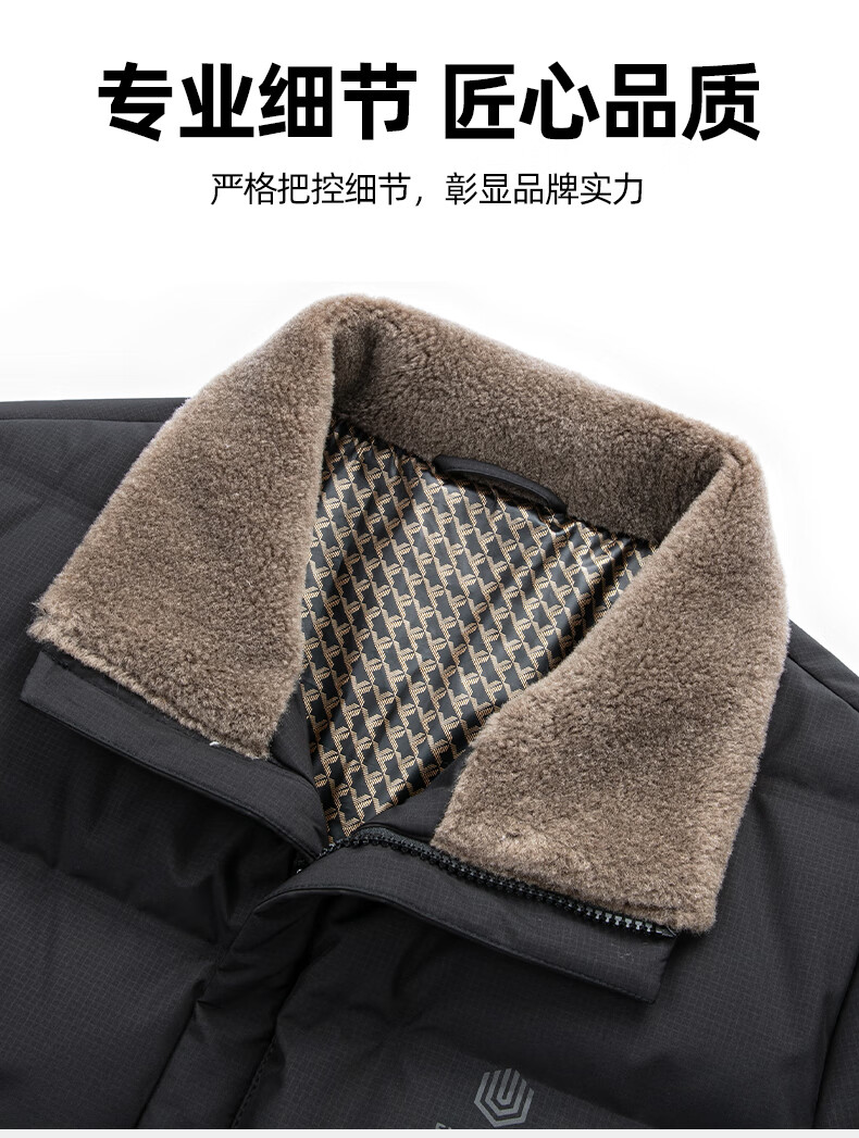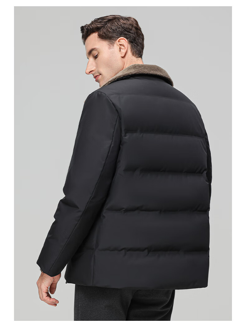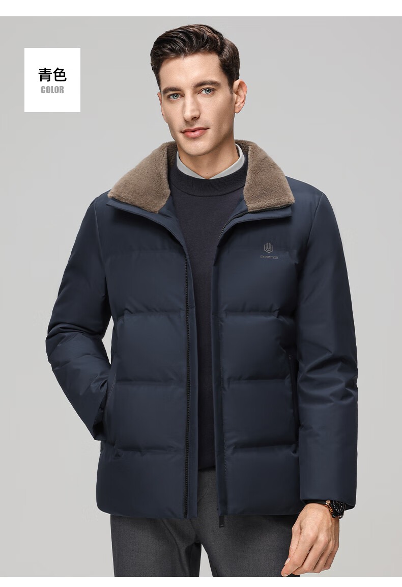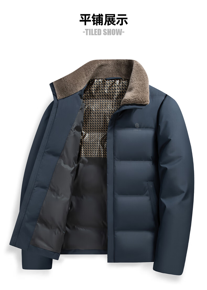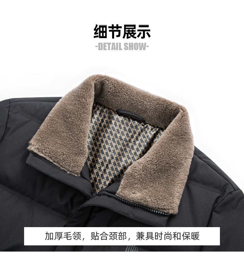 罗蒙(ROMON)羊羔毛领石墨烯羽绒服男冬季新款中老年爸爸装加厚保暖防寒外套男 青色【鸭绒款】 L (175) 【建议120-135斤】