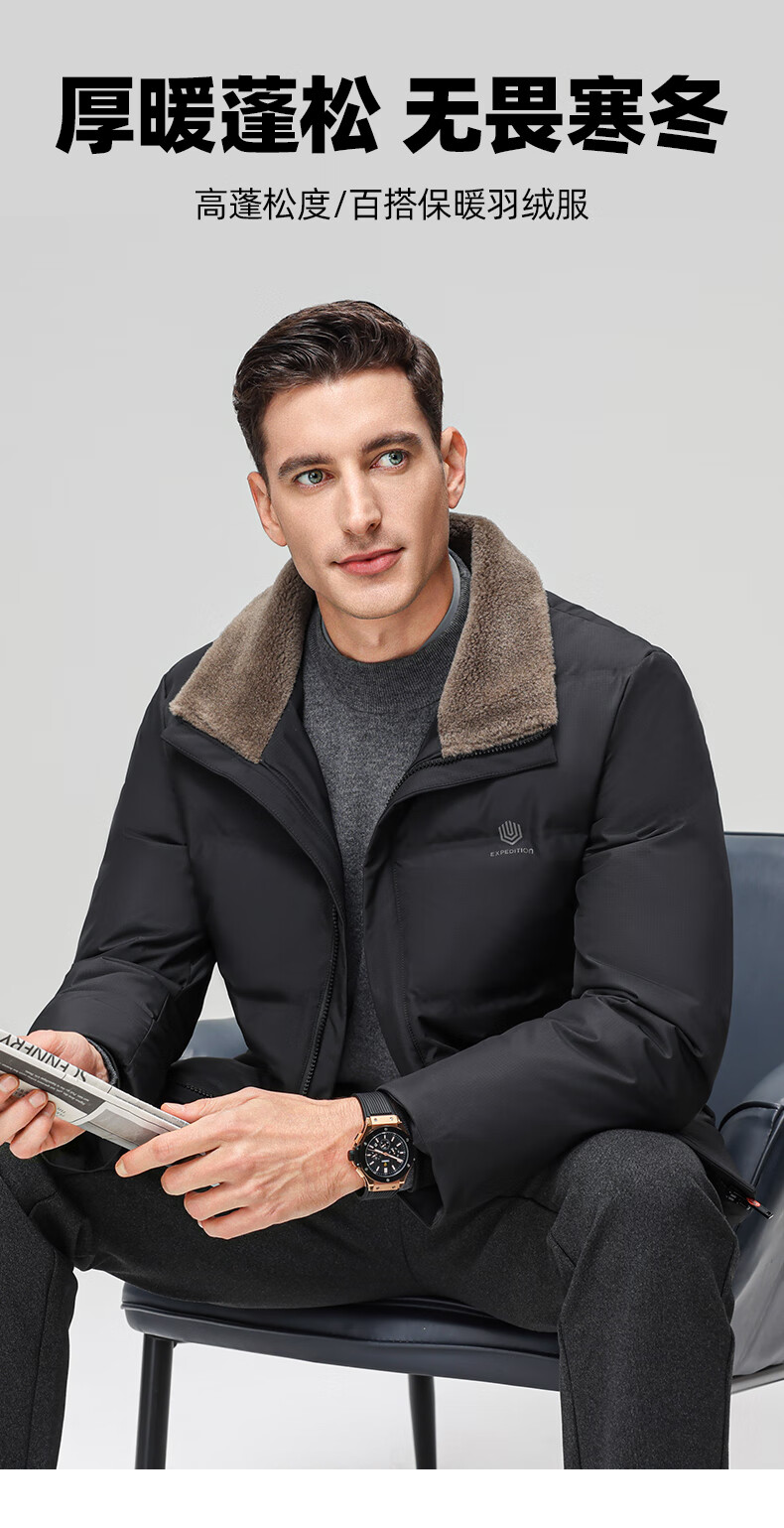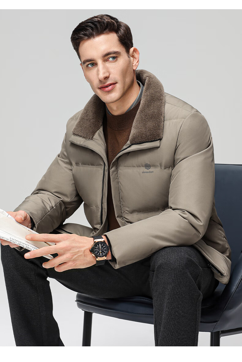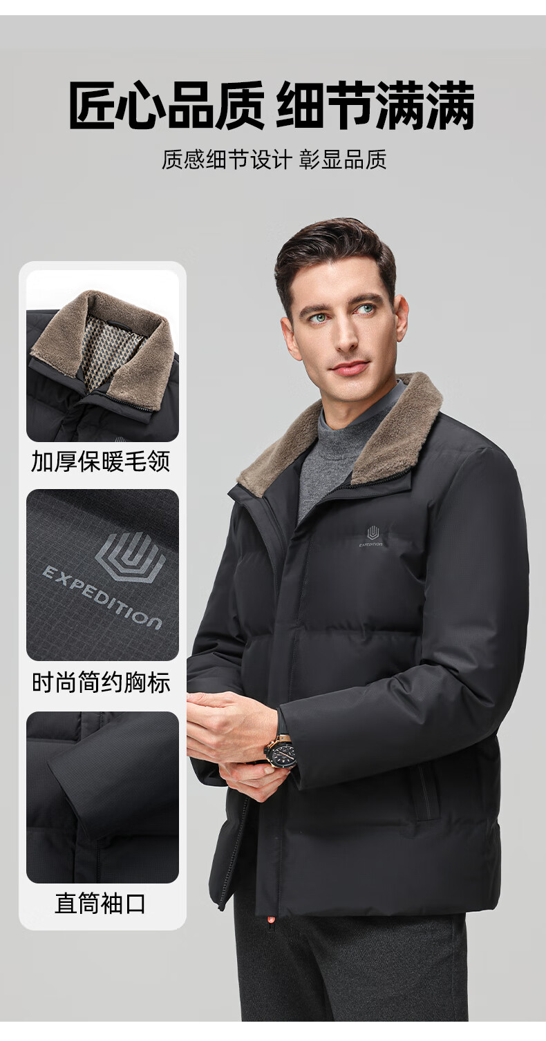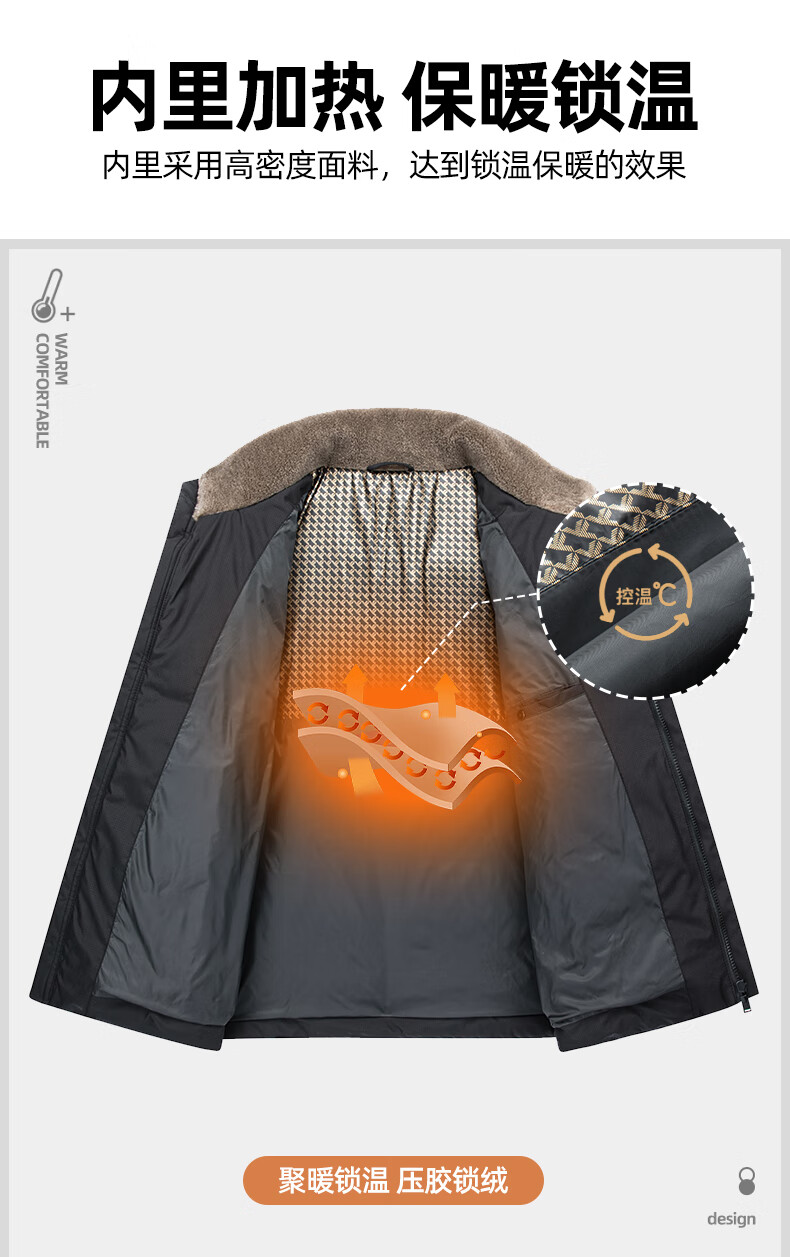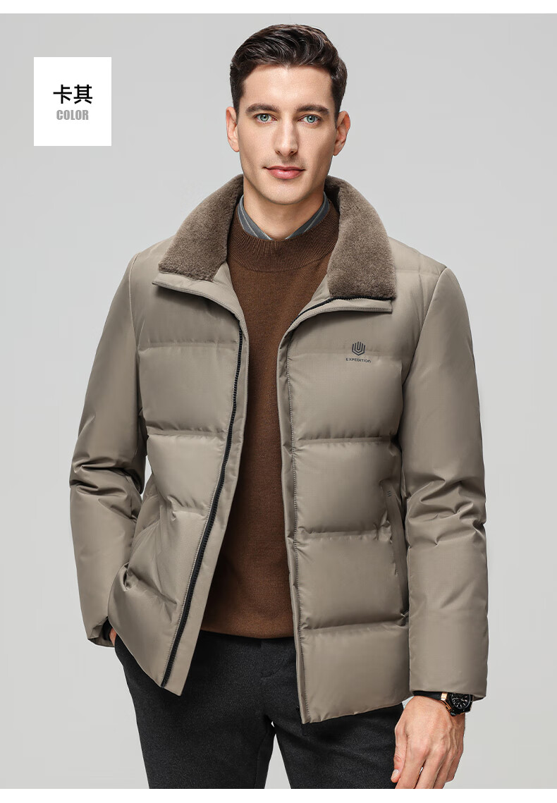 罗蒙(ROMON)羊羔毛领石墨烯羽绒服男冬季新款中老年爸爸装加厚保暖防寒外套男 青色【鸭绒款】 L (175) 【建议120-135斤】
