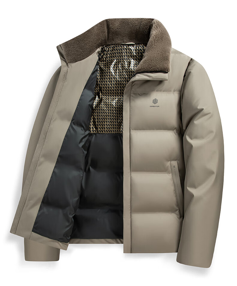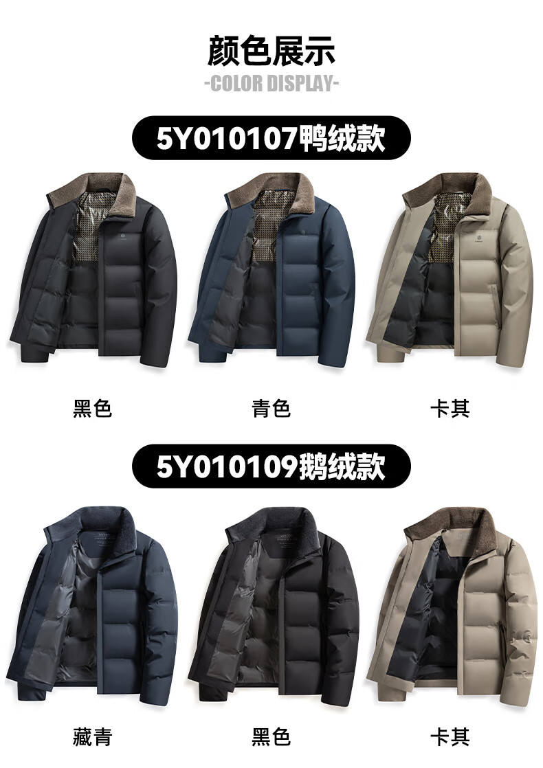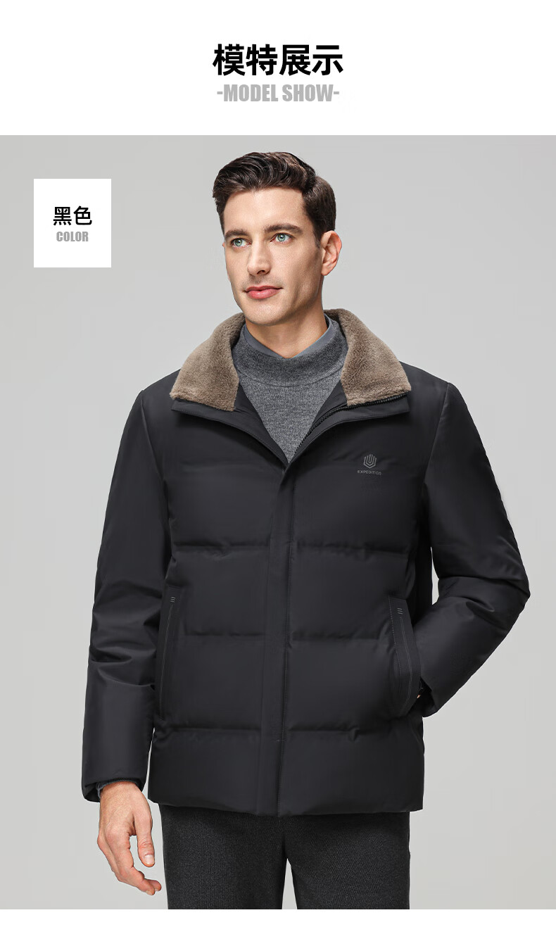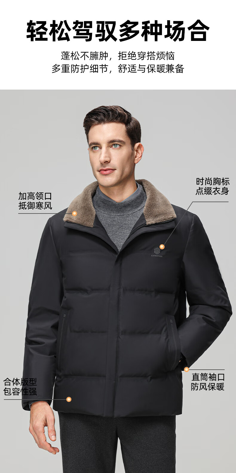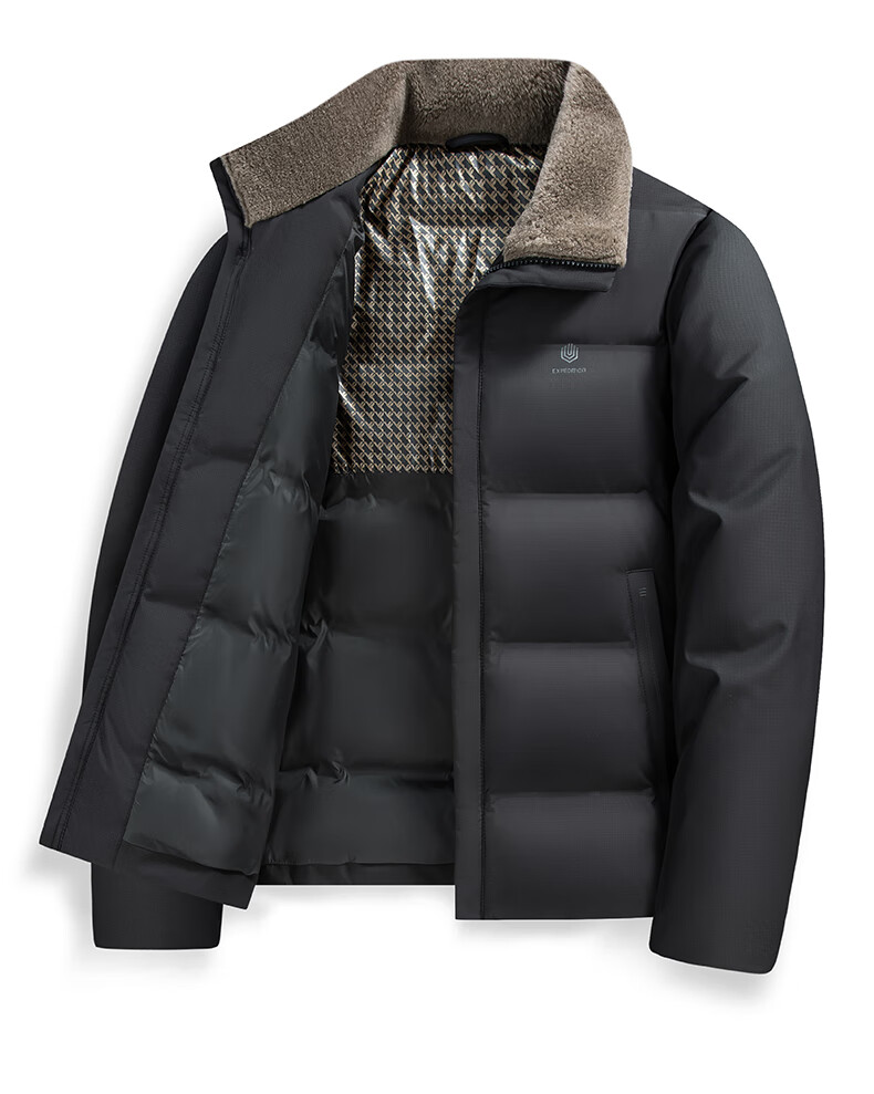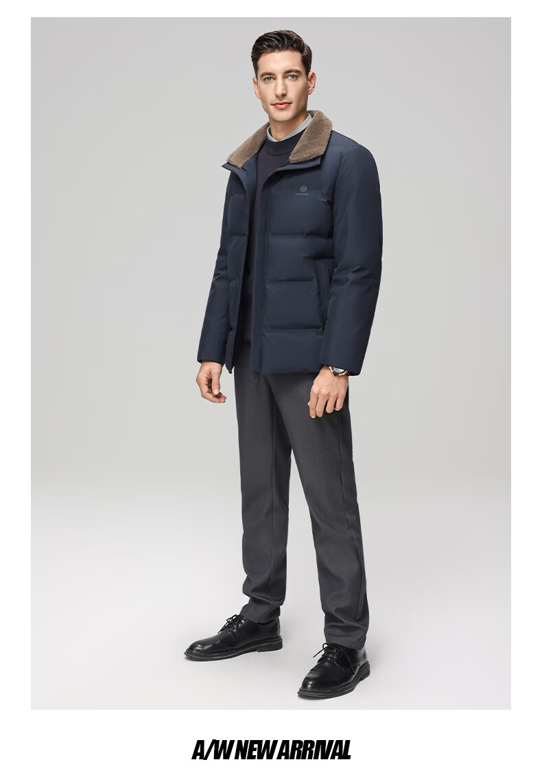 罗蒙(ROMON)羊羔毛领石墨烯羽绒服男冬季新款中老年爸爸装加厚保暖防寒外套男 青色【鸭绒款】 L (175) 【建议120-135斤】