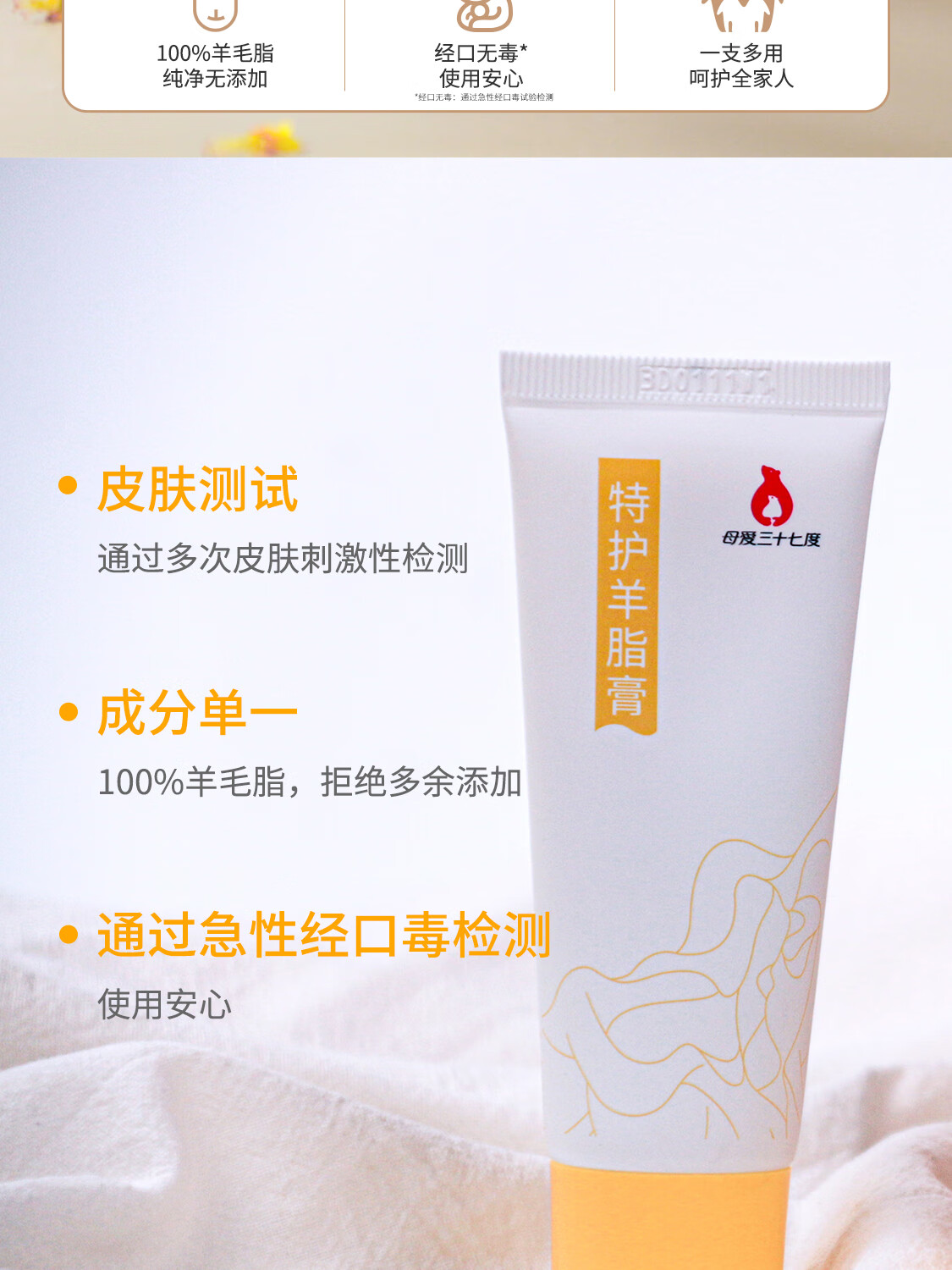 母爱三十七度羊脂膏乳头霜皲裂羊毛脂膏滋润保湿舒缓37g 37g
