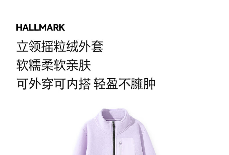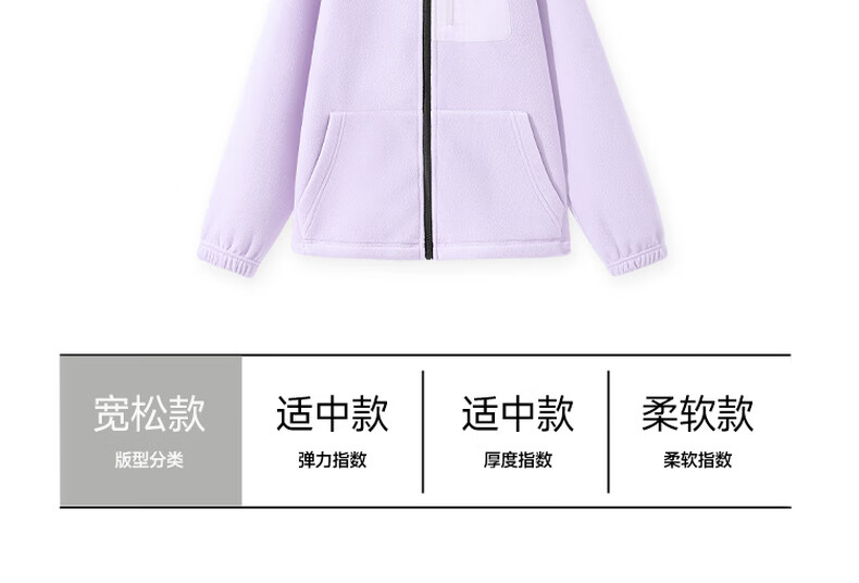 班尼路(Baleno)S&K系列开衫外套女装加绒加厚保暖秋冬新款摇粒绒长袖户外上衣服 浅紫#纯色 L