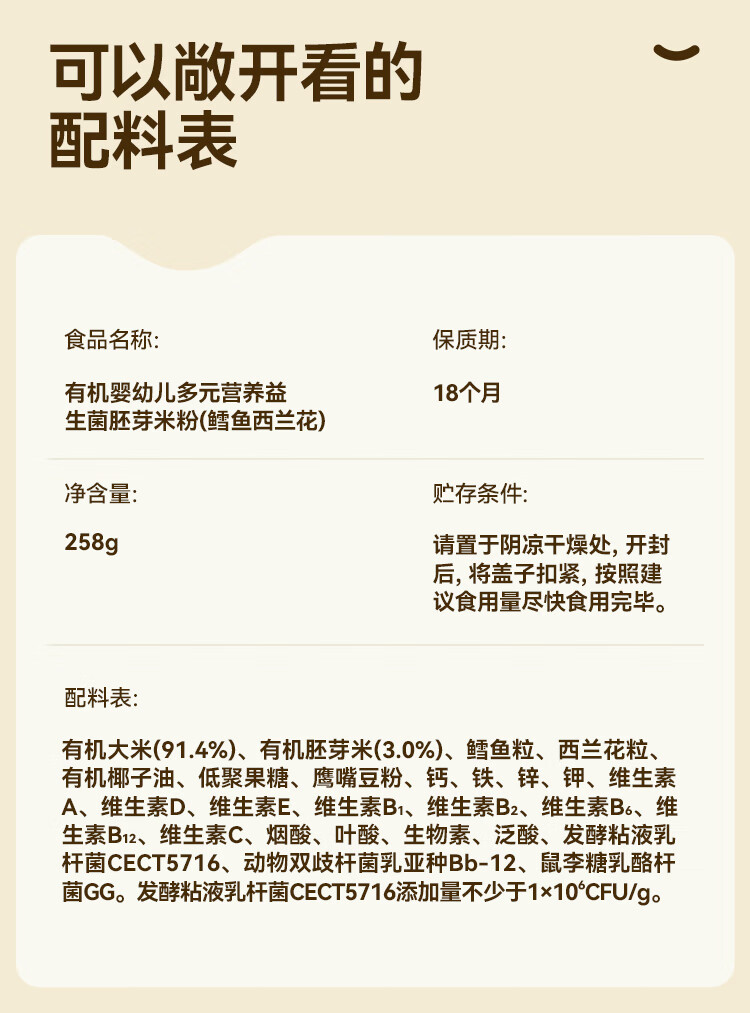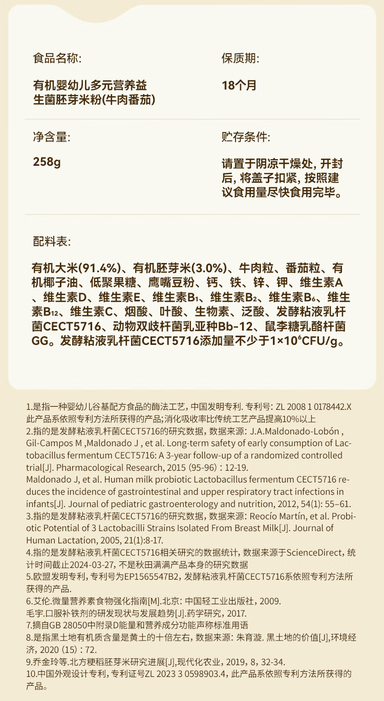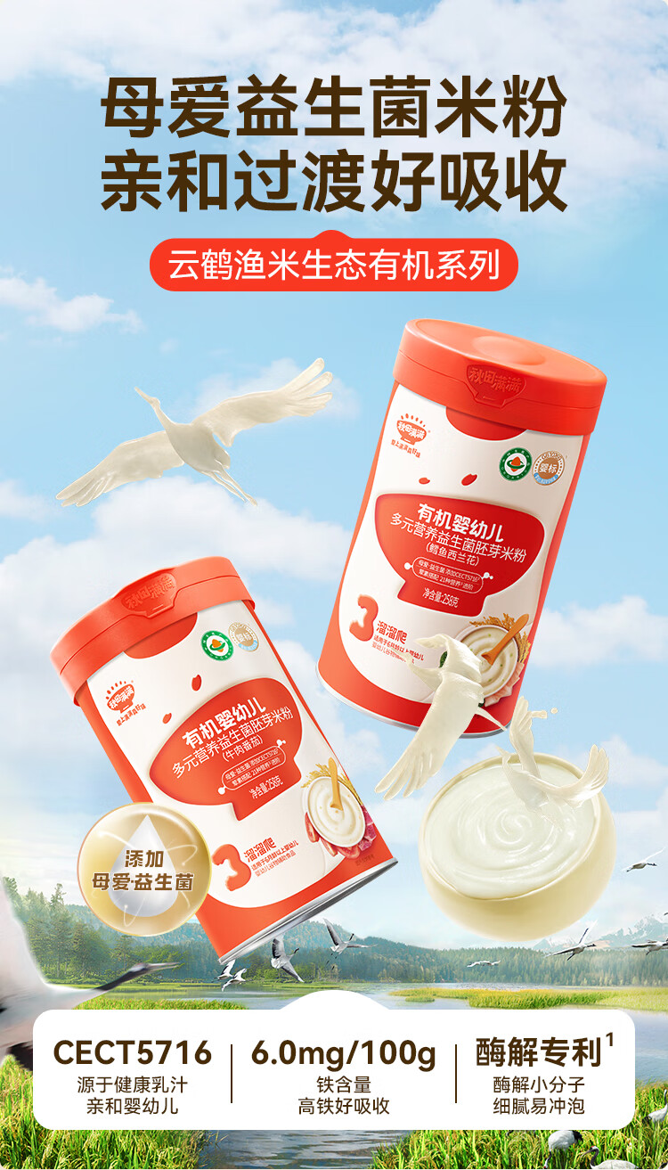 敏星氨基酸婴幼儿米粉有机无麸质不添加蛋奶宝宝辅食大米糊6个月龄起 敏童有机米粉258g