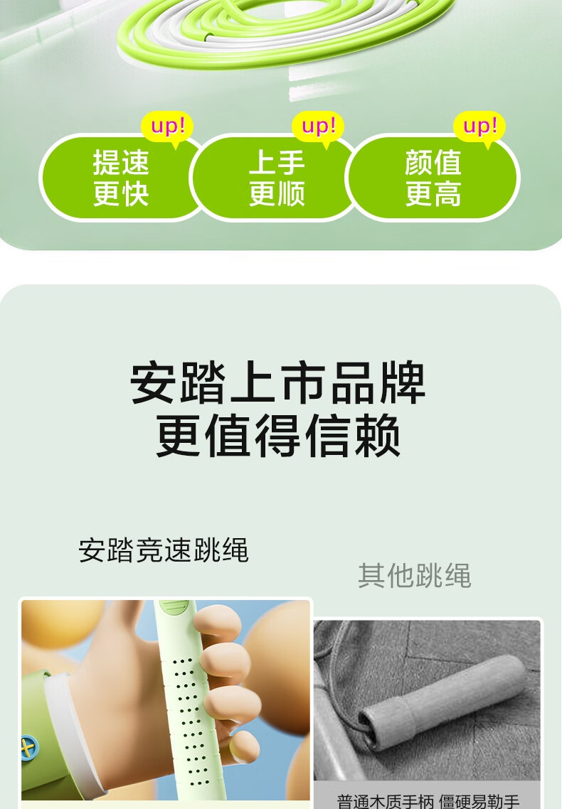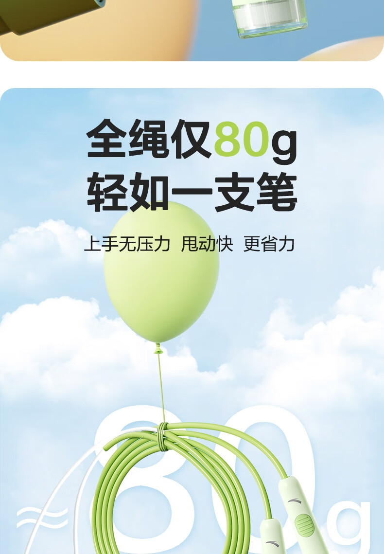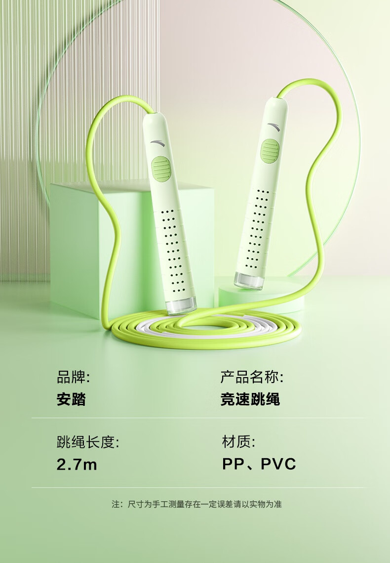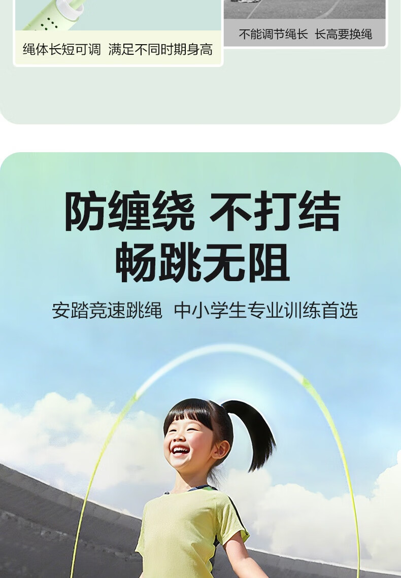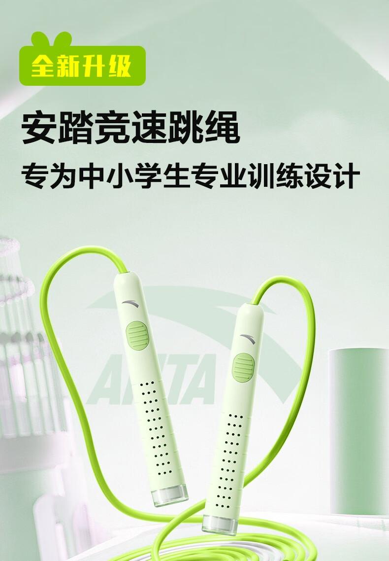 安踏(ANTA)竞速跳绳沙专用式儿童跳绳中考专用学生考试减肥专用绳子 青绿色【带姓名贴/轻便不打结/可调绳长】