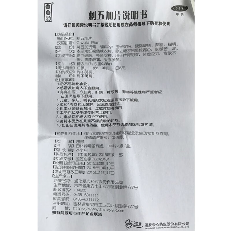 【当日发出】红绿灯 刺五加片 100片*1瓶/盒 失眠多梦益气食欲不振 2盒装