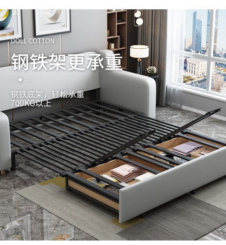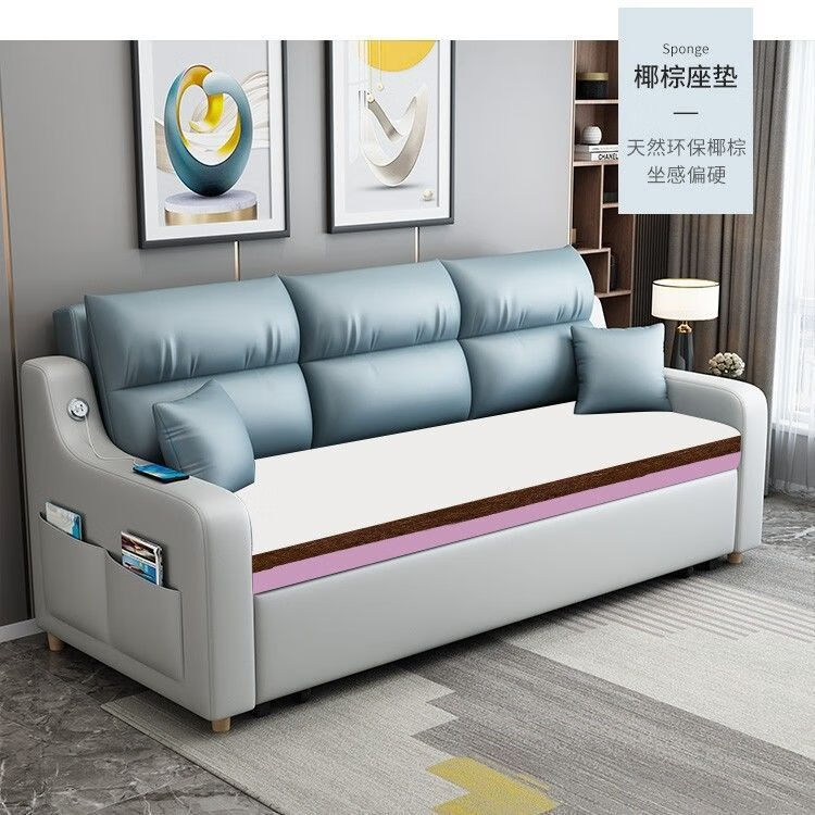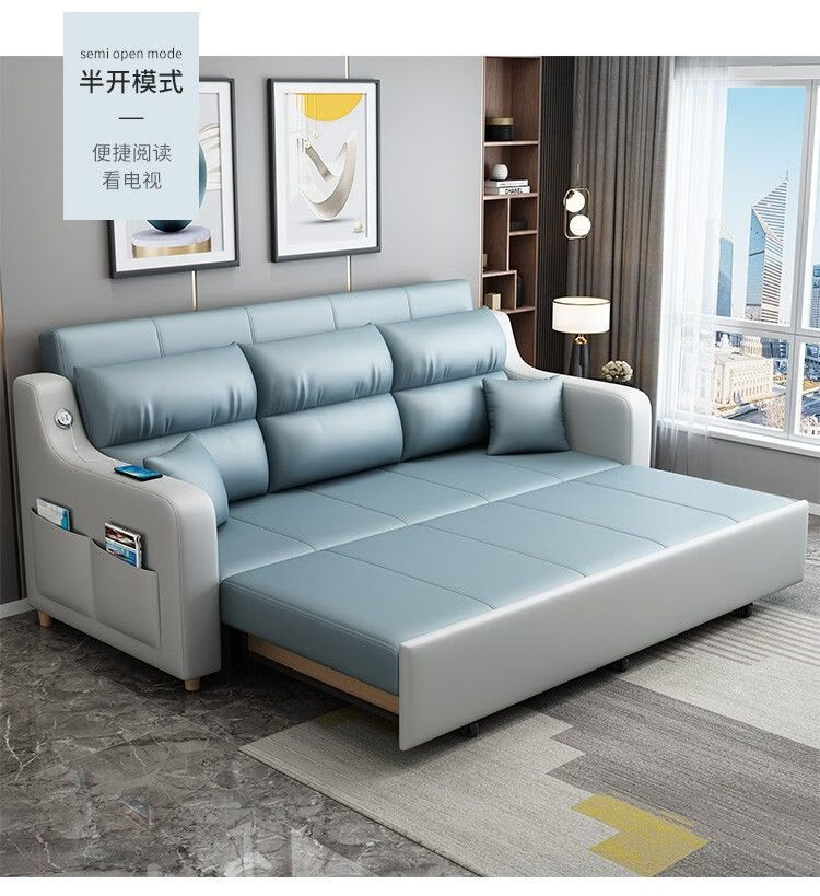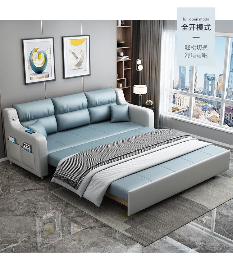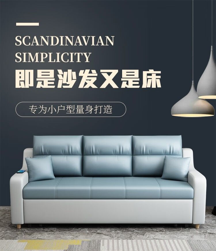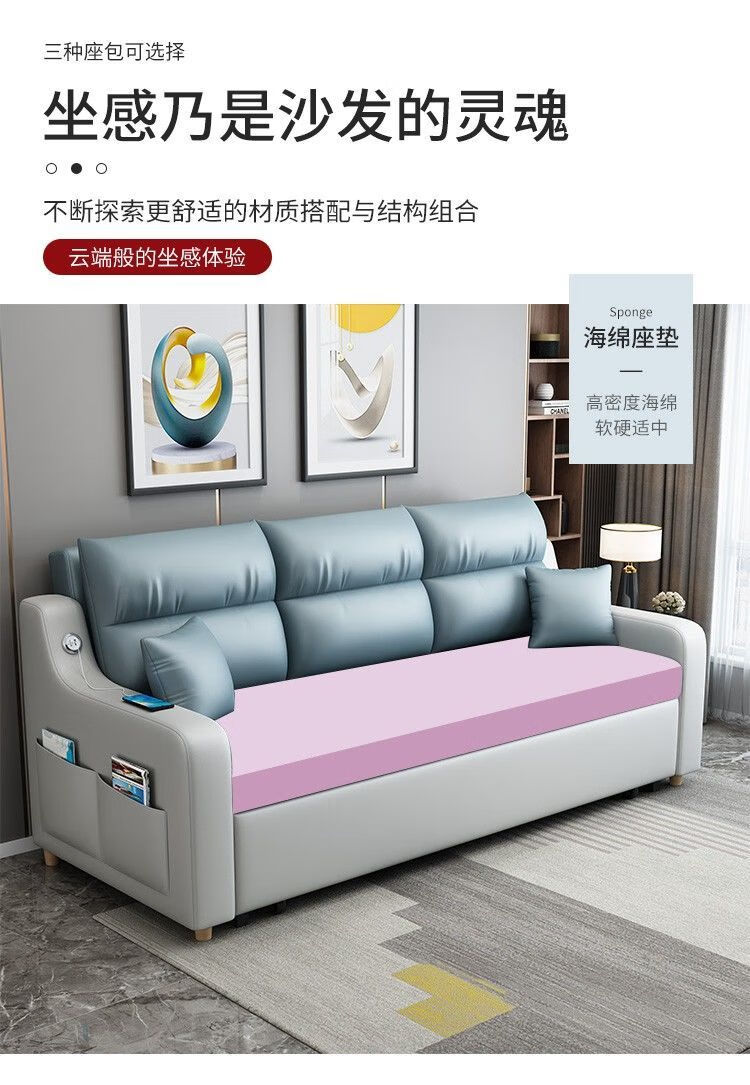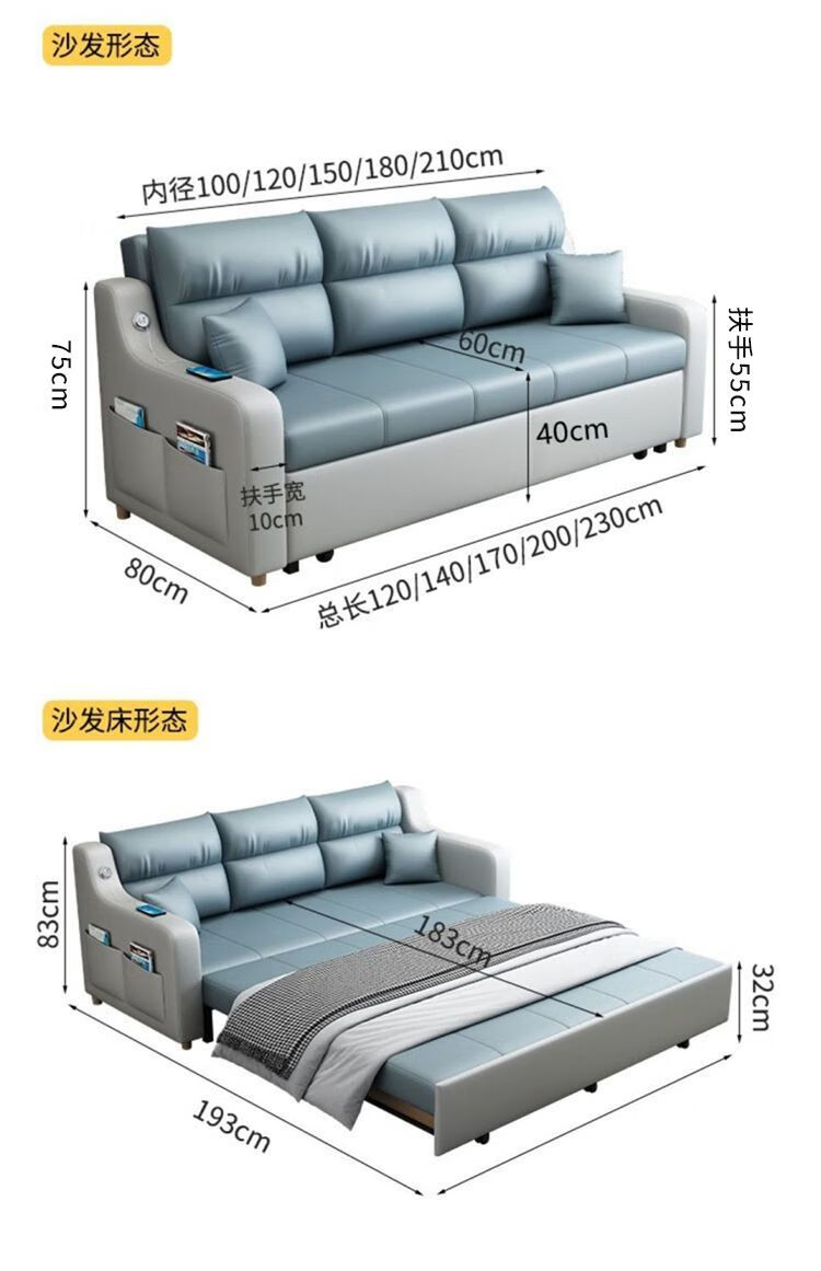 圣颜世家2025新款折叠沙发床两用多功能客厅小户型储物科技布简约实木沙发 无储物+科技布(颜色备注) 外径1.2米 海绵款+USB