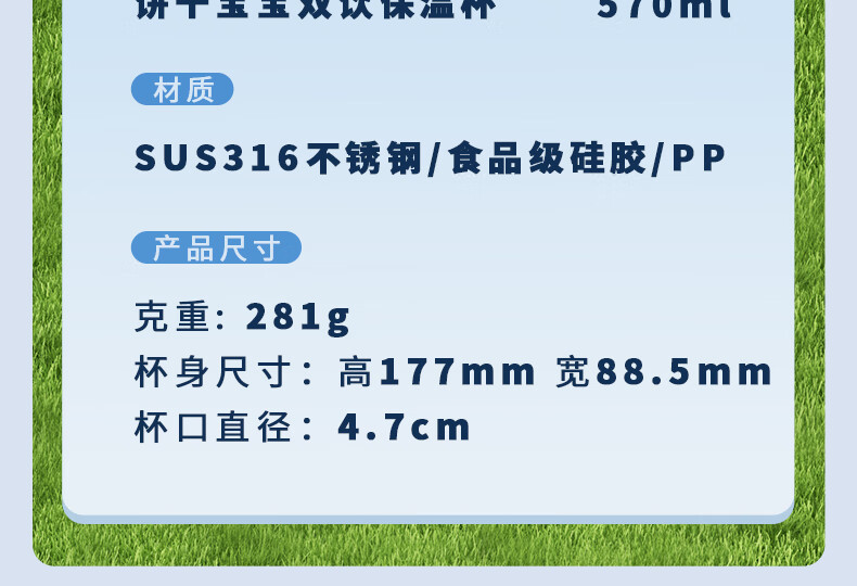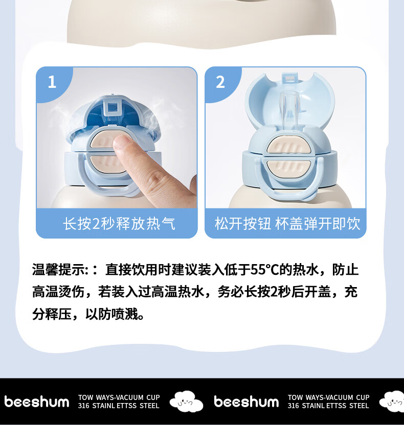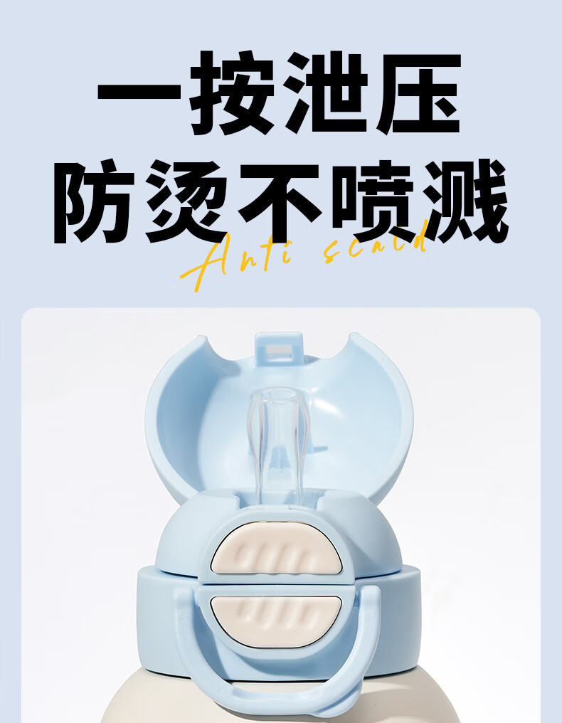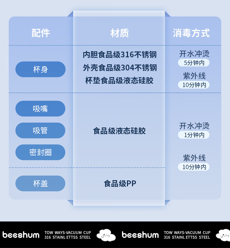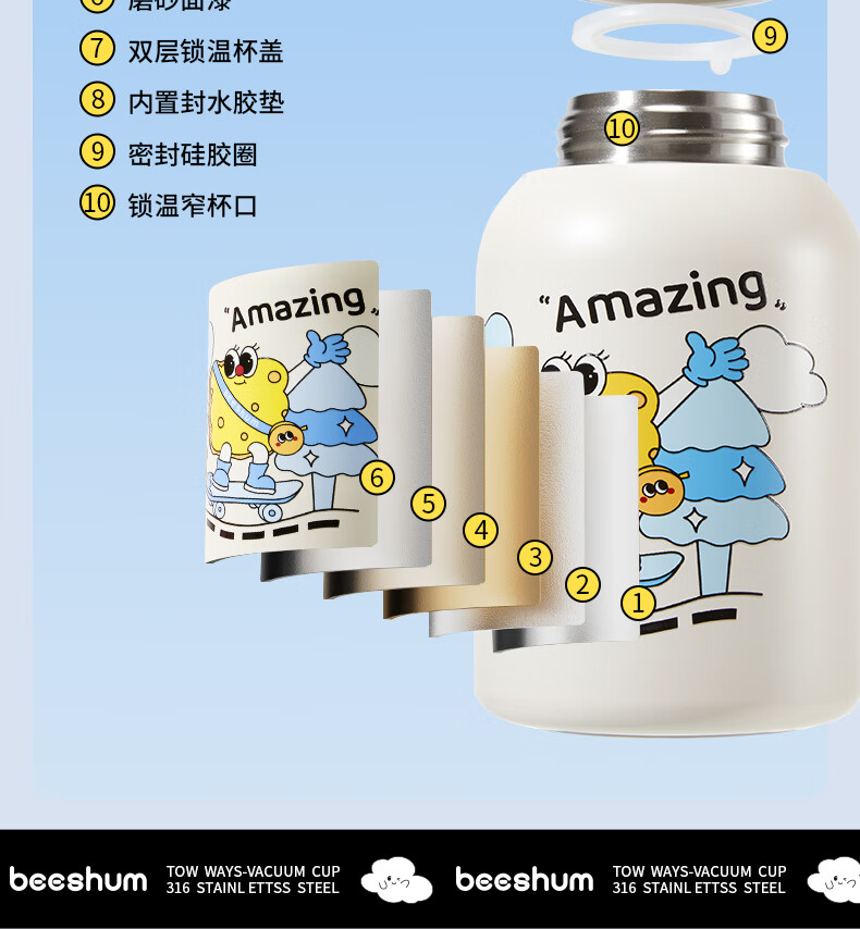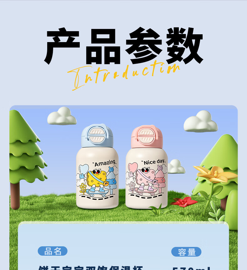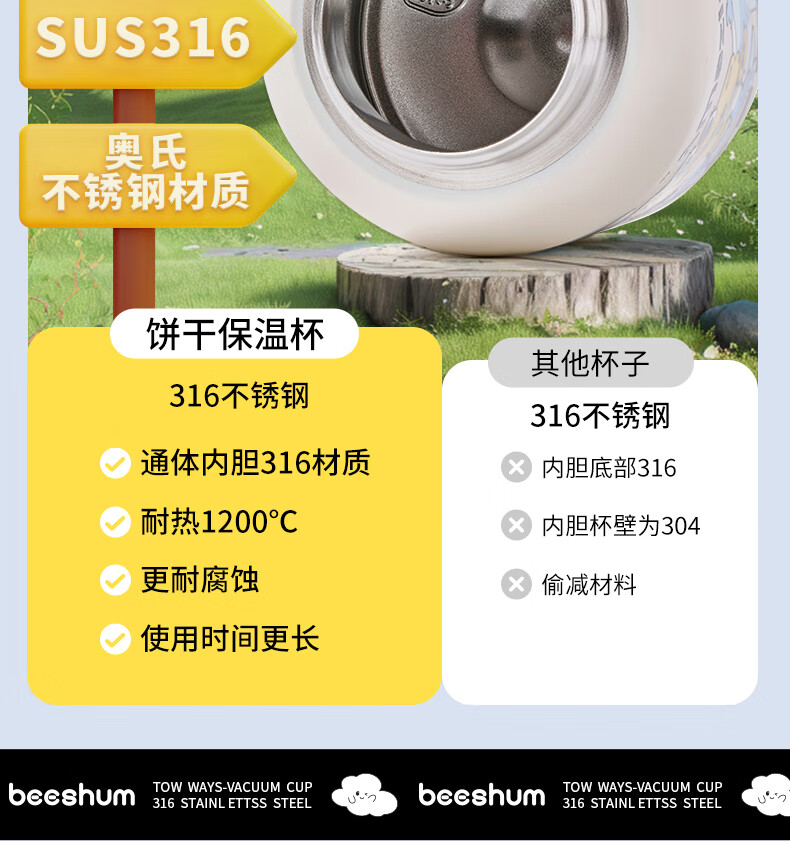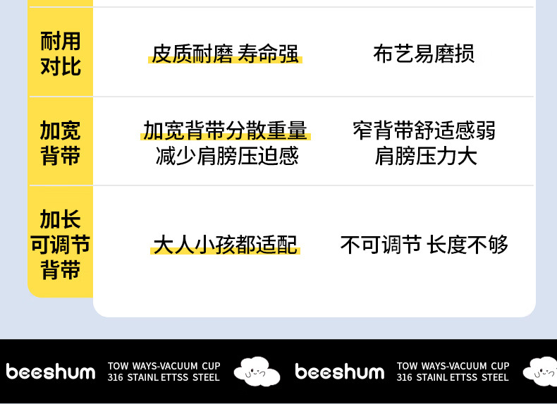 Beeshum儿童水杯饼干保温杯小学生吸管杯316L不锈钢夏季直饮大容量外出壶 【套装】樱花粉+杯套+背带 570ml