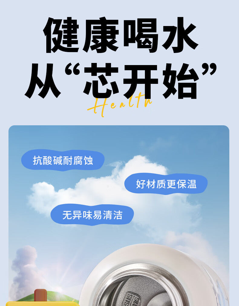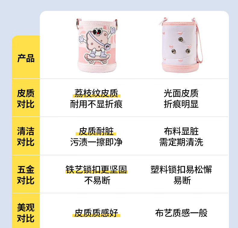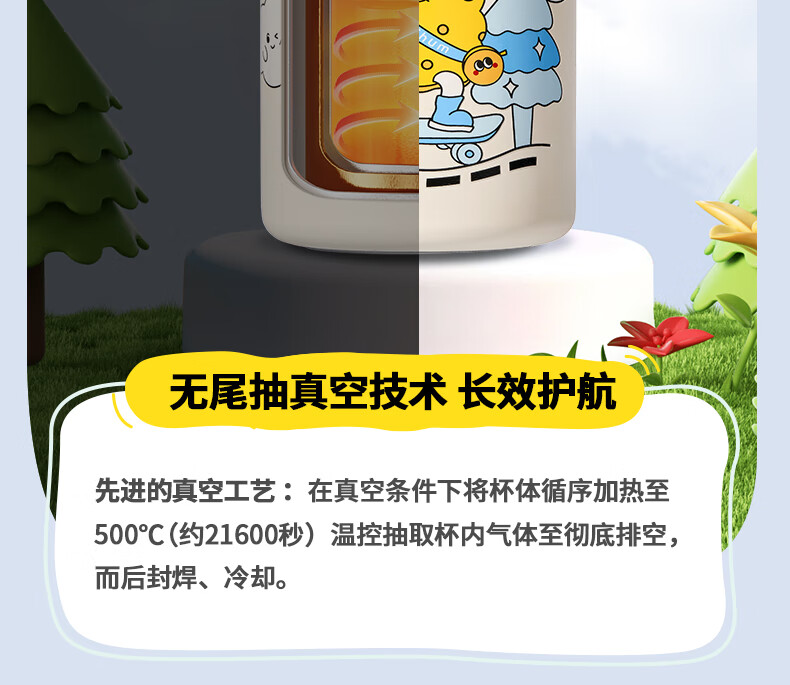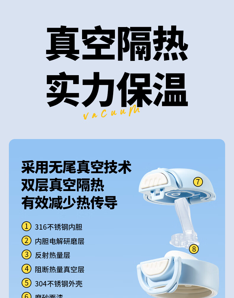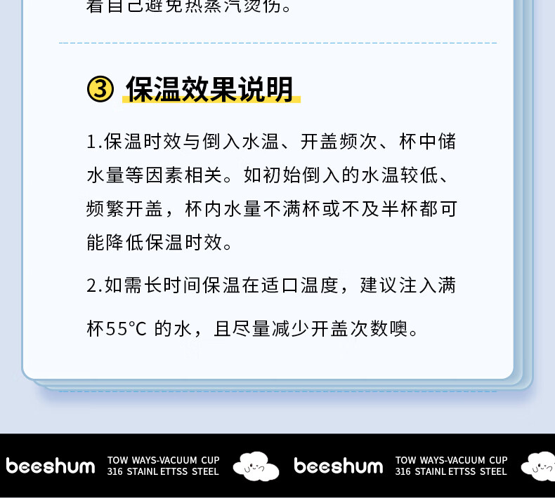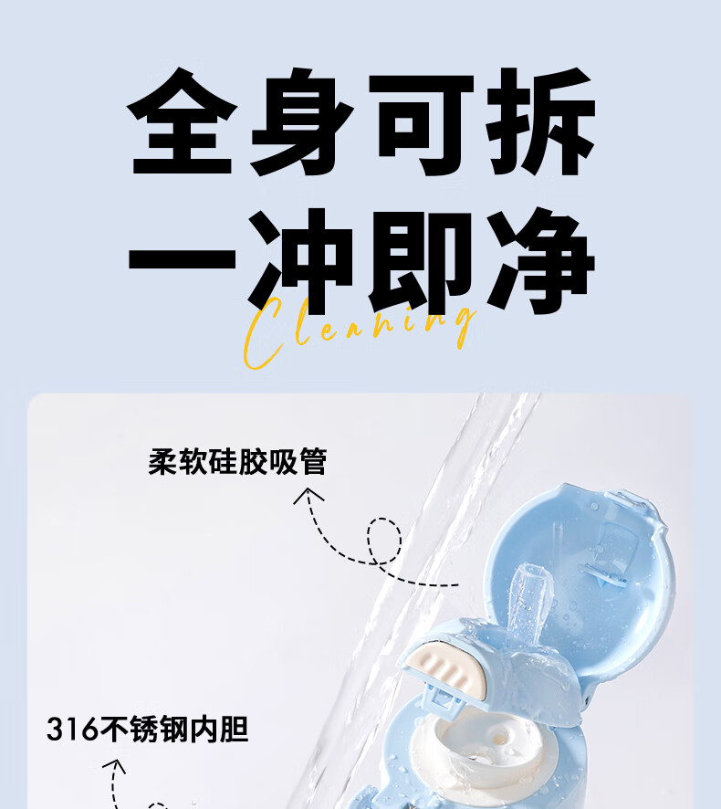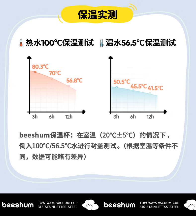 Beeshum儿童水杯饼干保温杯小学生吸管杯316L不锈钢夏季直饮大容量外出壶 【套装】樱花粉+杯套+背带 570ml