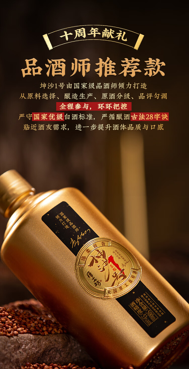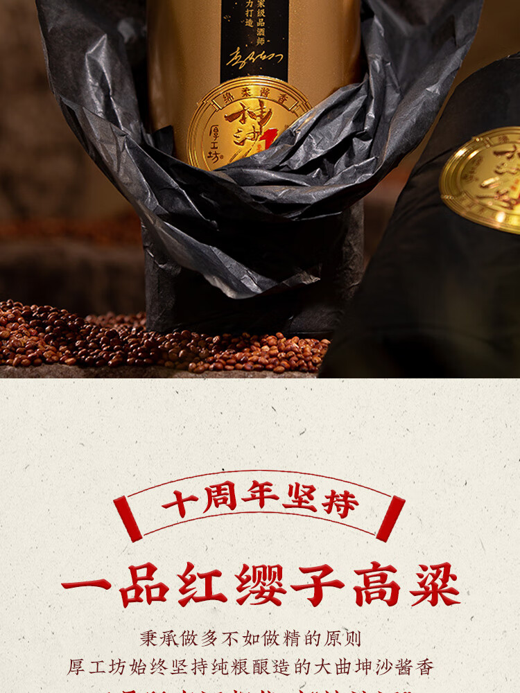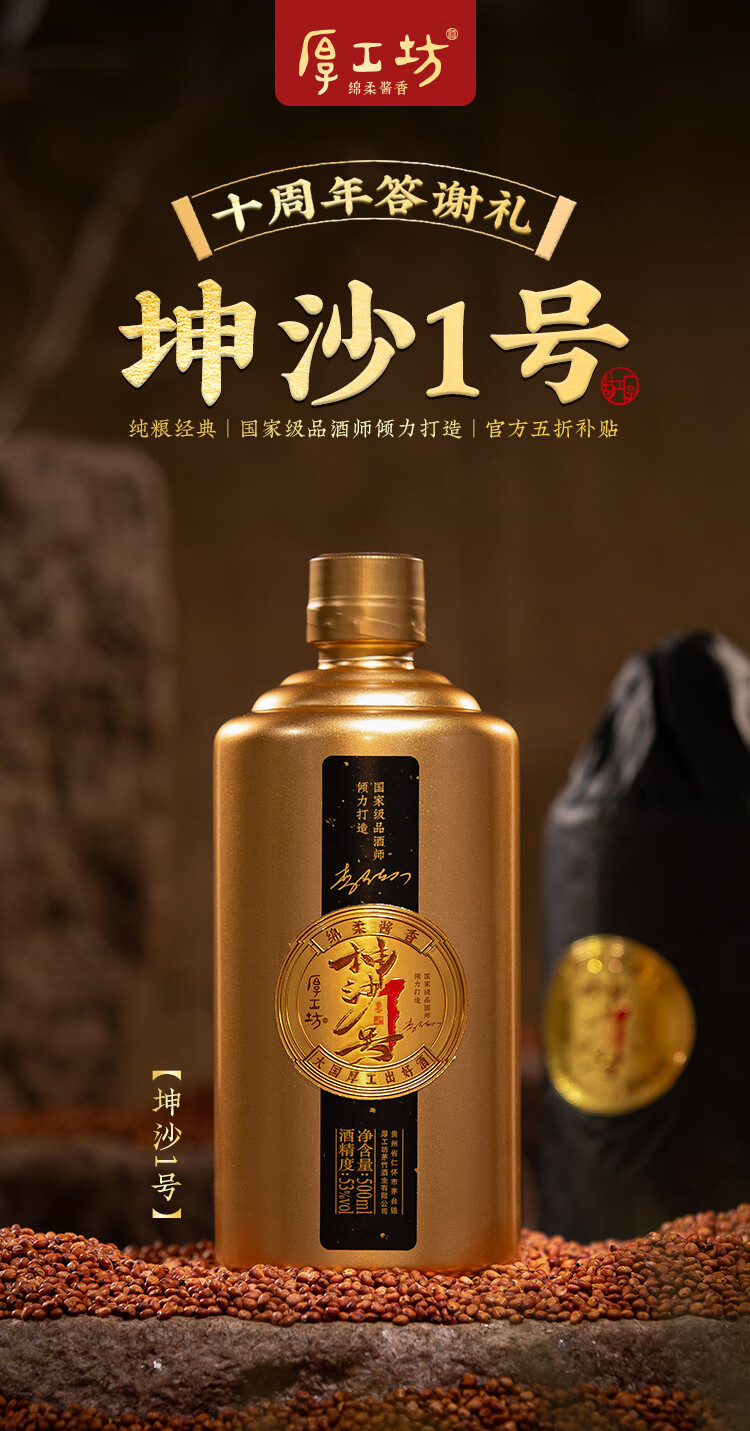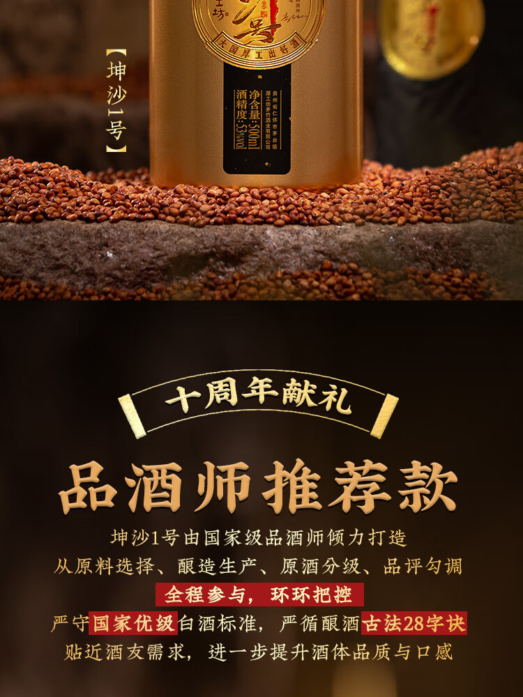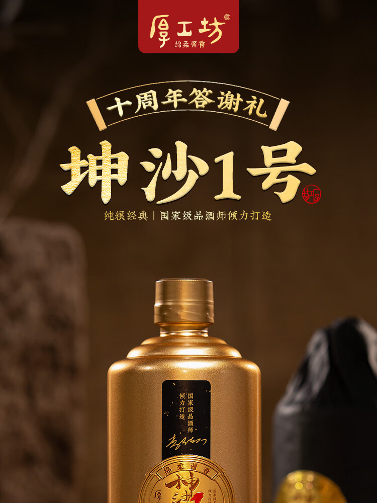 厚工坊坤沙1号 酱香型53度白酒贵州纯正大曲坤沙粮食酒 53度 500mL 2瓶 (坤沙1号两瓶)