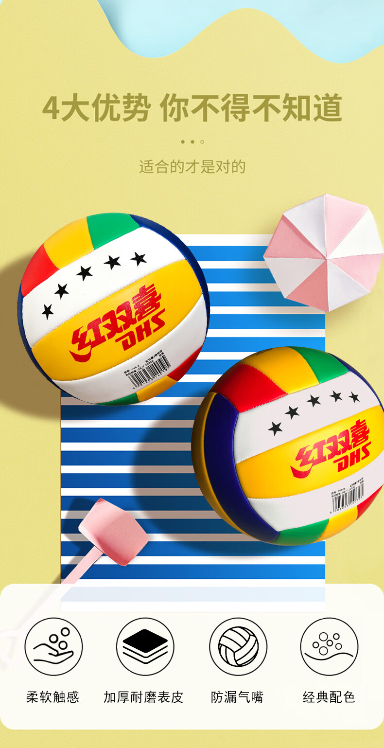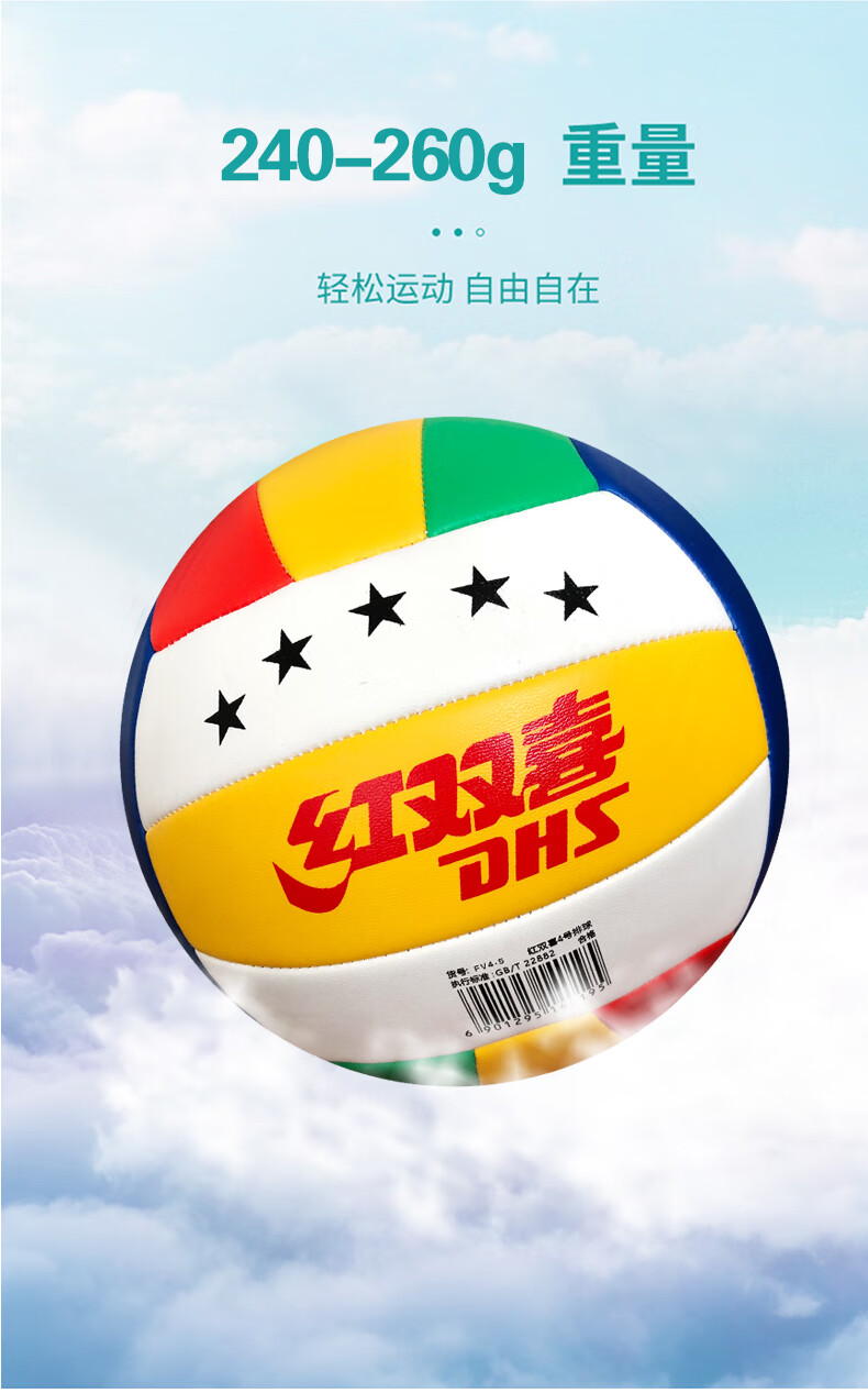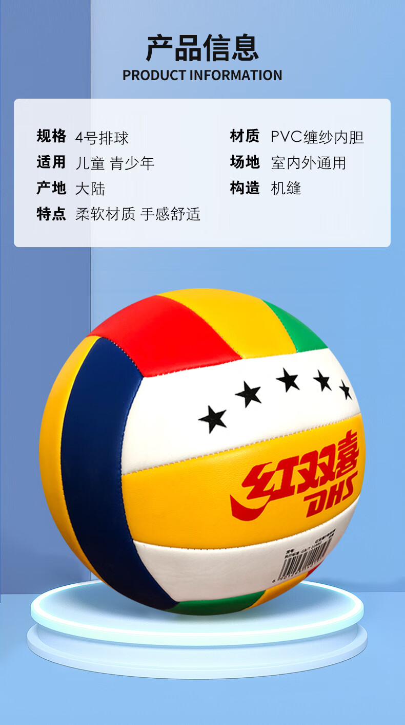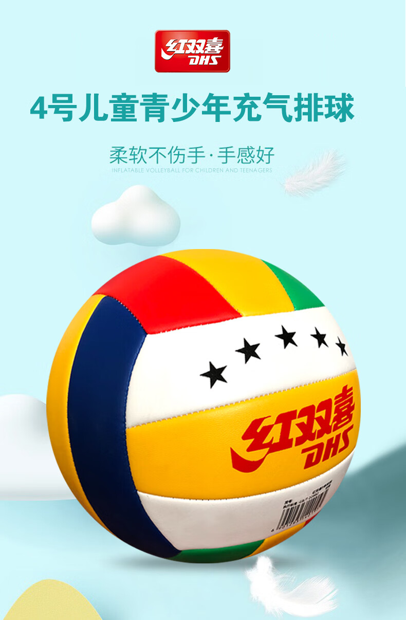 红双喜(DHS)红双喜4号排球幼儿园儿童排球青少年小学生专业充气软式初学排球 4号 升级版蓝色排球+针气筒包