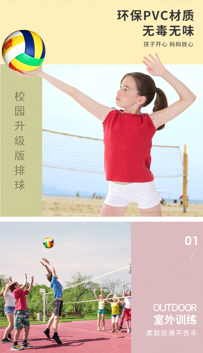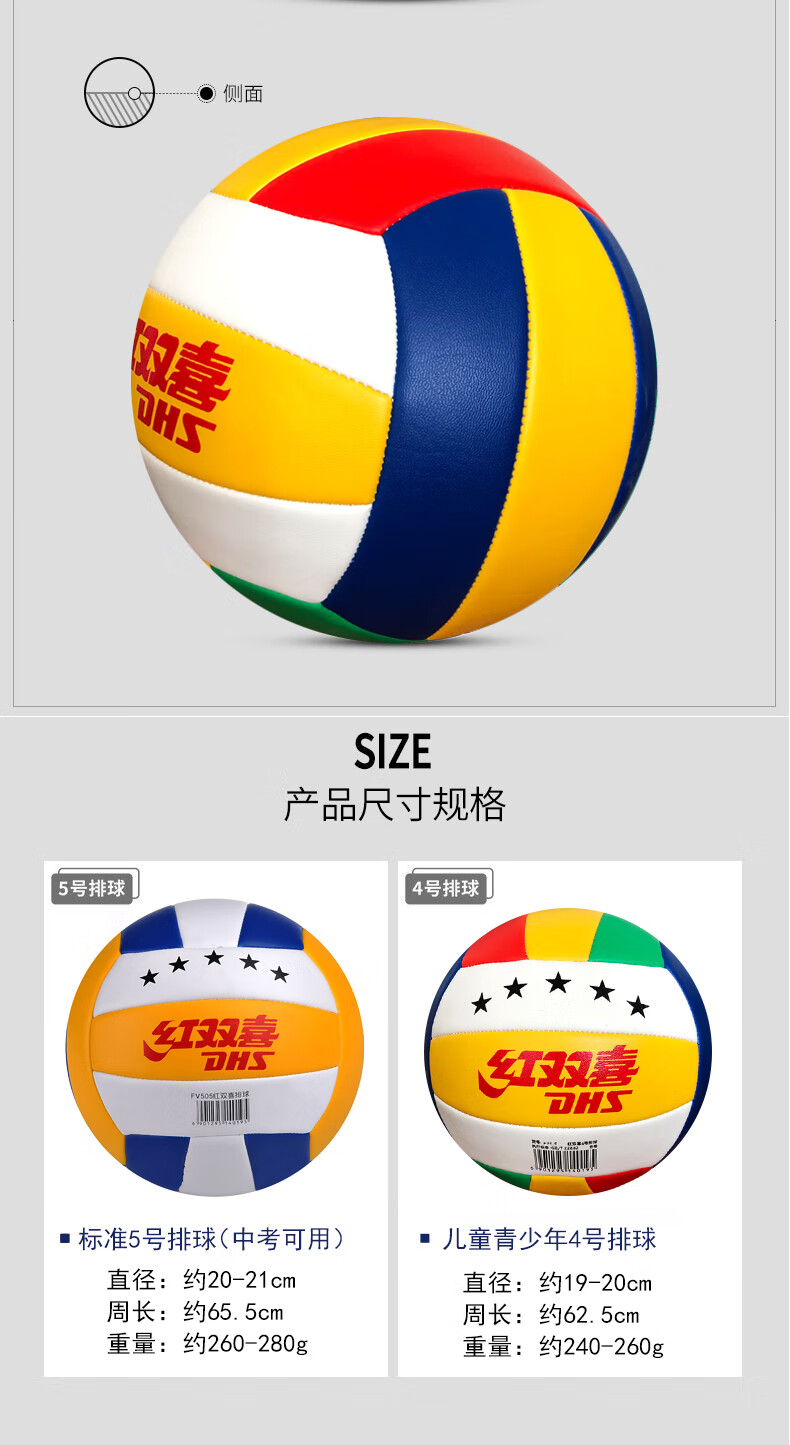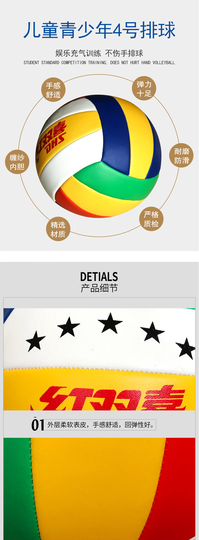 红双喜(DHS)红双喜4号排球幼儿园儿童排球青少年小学生专业充气软式初学排球 4号 升级版蓝色排球+针气筒包