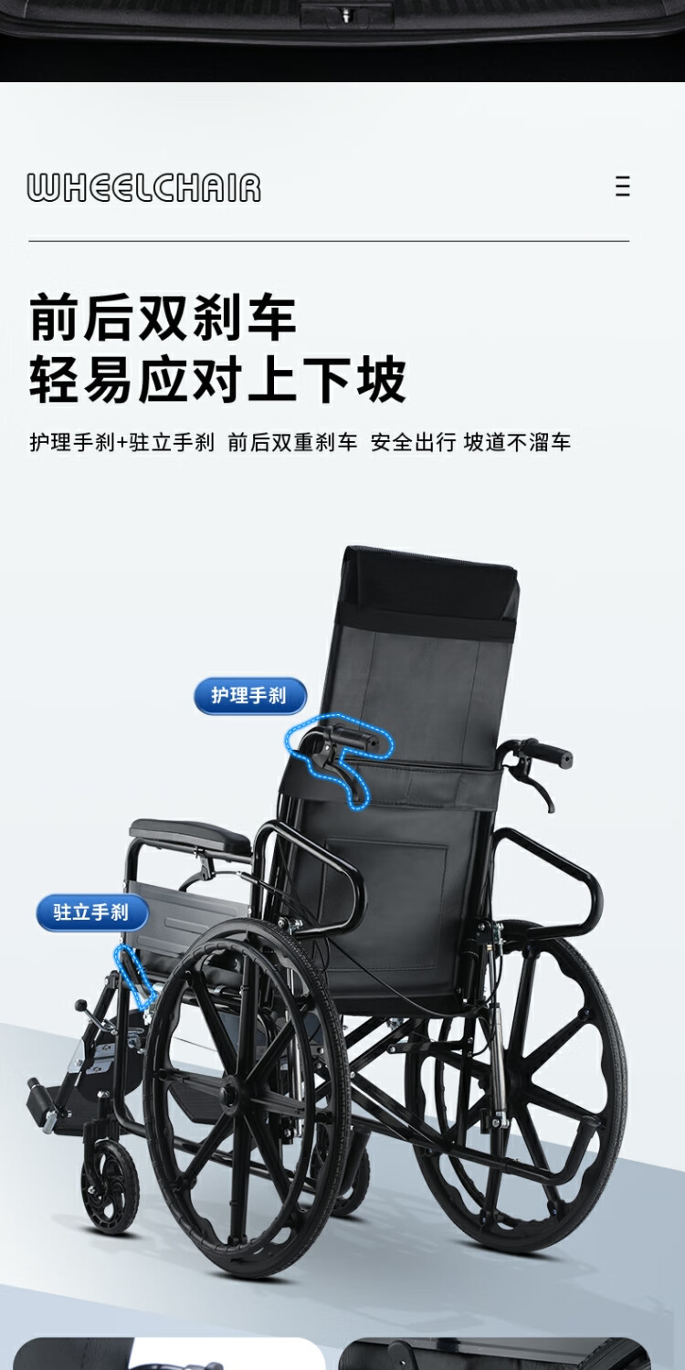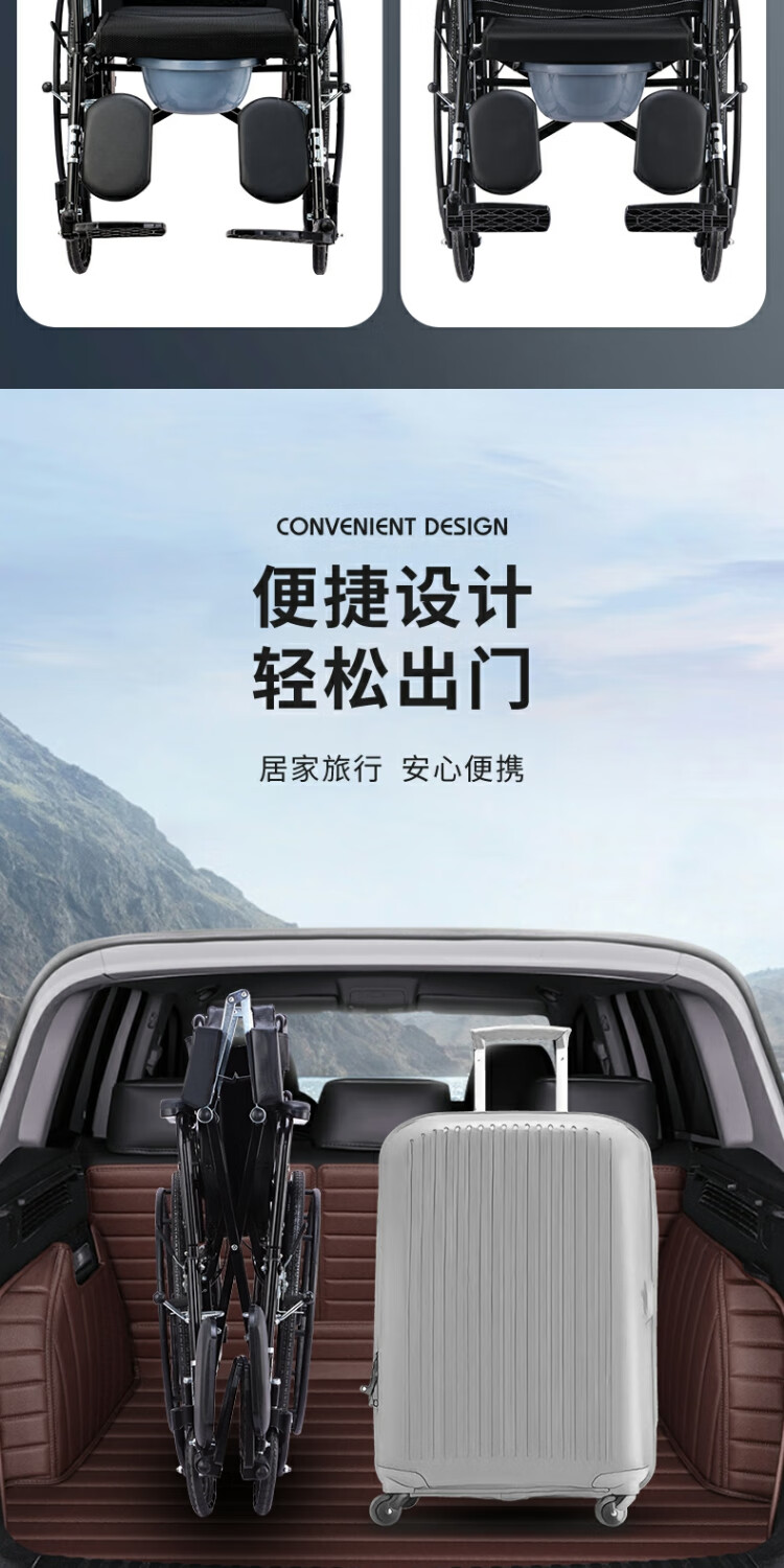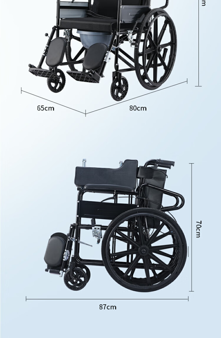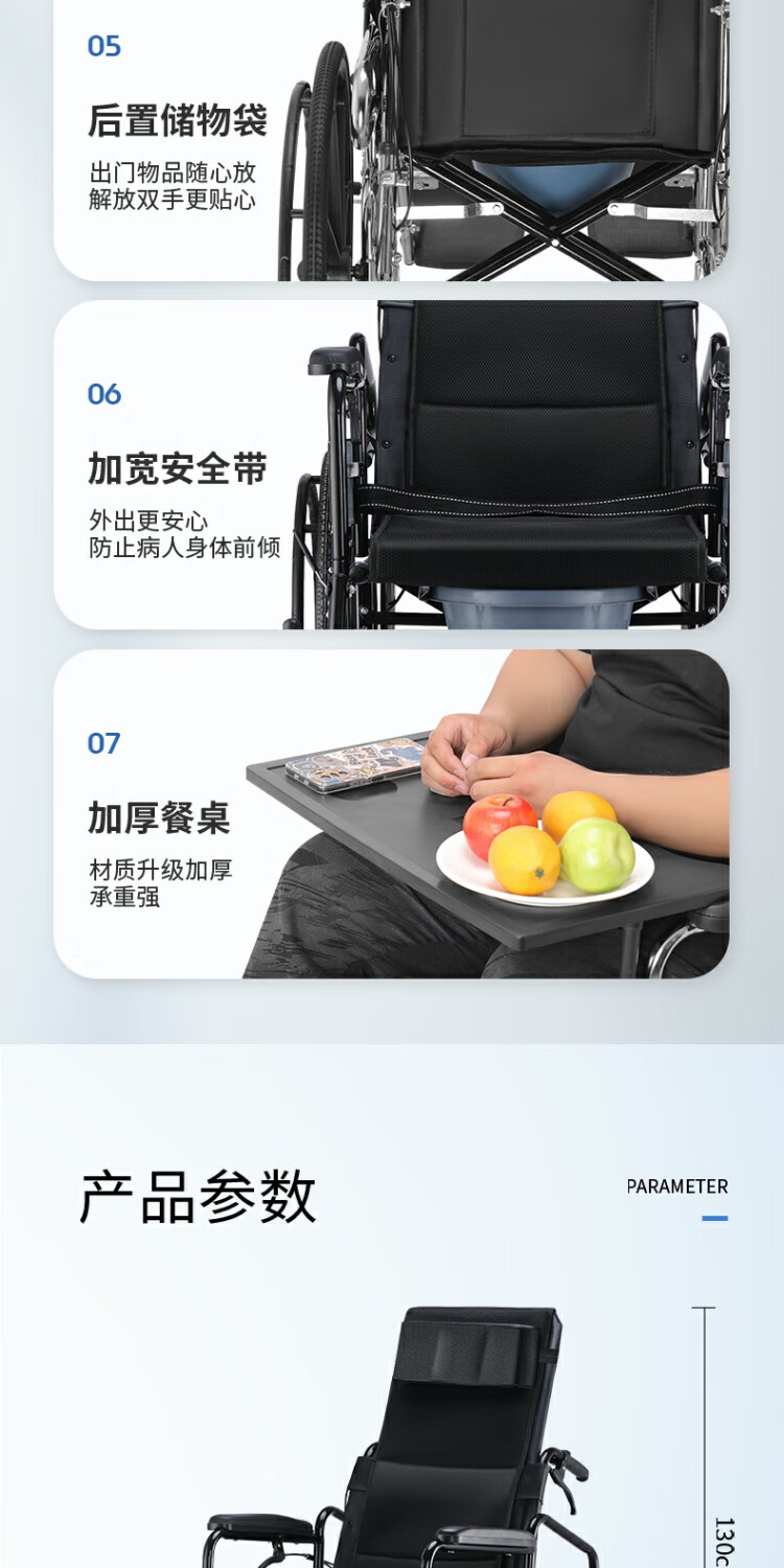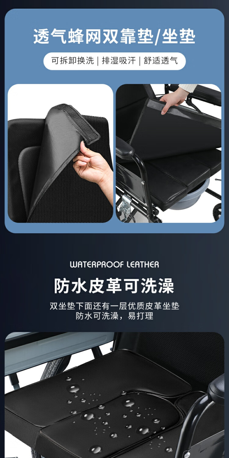 康立普(CANLIPE)轮椅瘫痪老人专用轻便全躺多功能专用出行可躺可洗澡带坐便手推车 【豪华款】扶手可掀防水皮革+可拆蜂网双坐垫一体轮