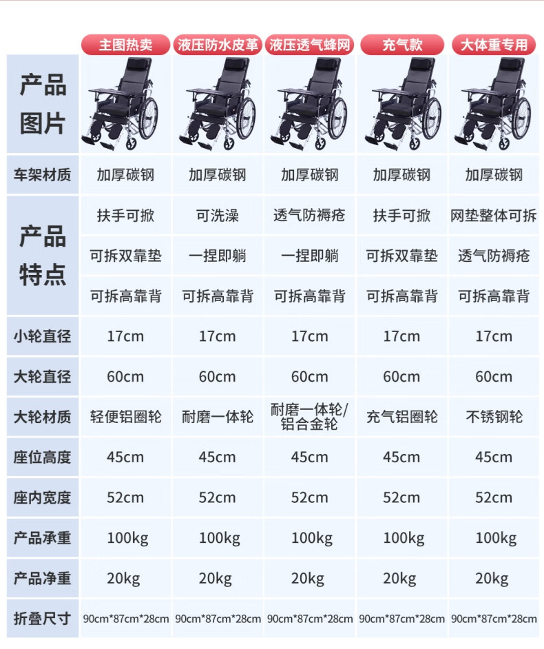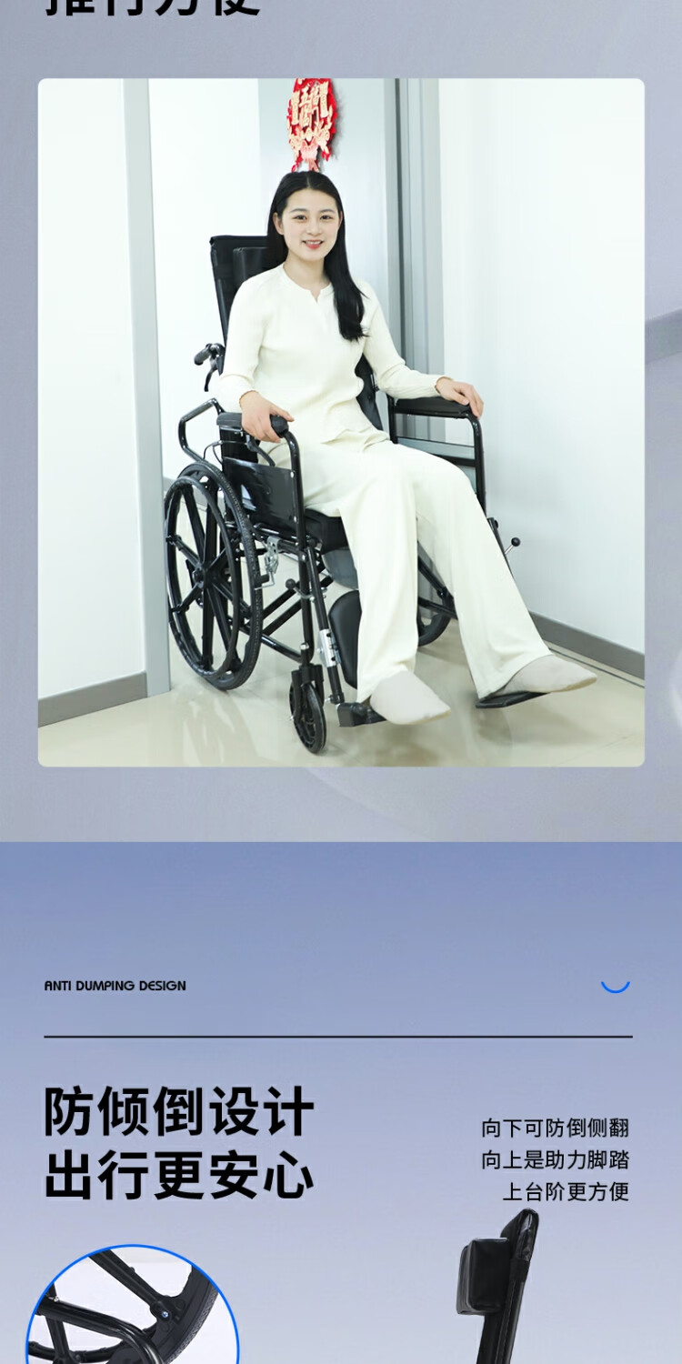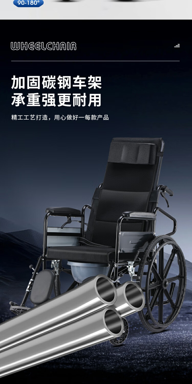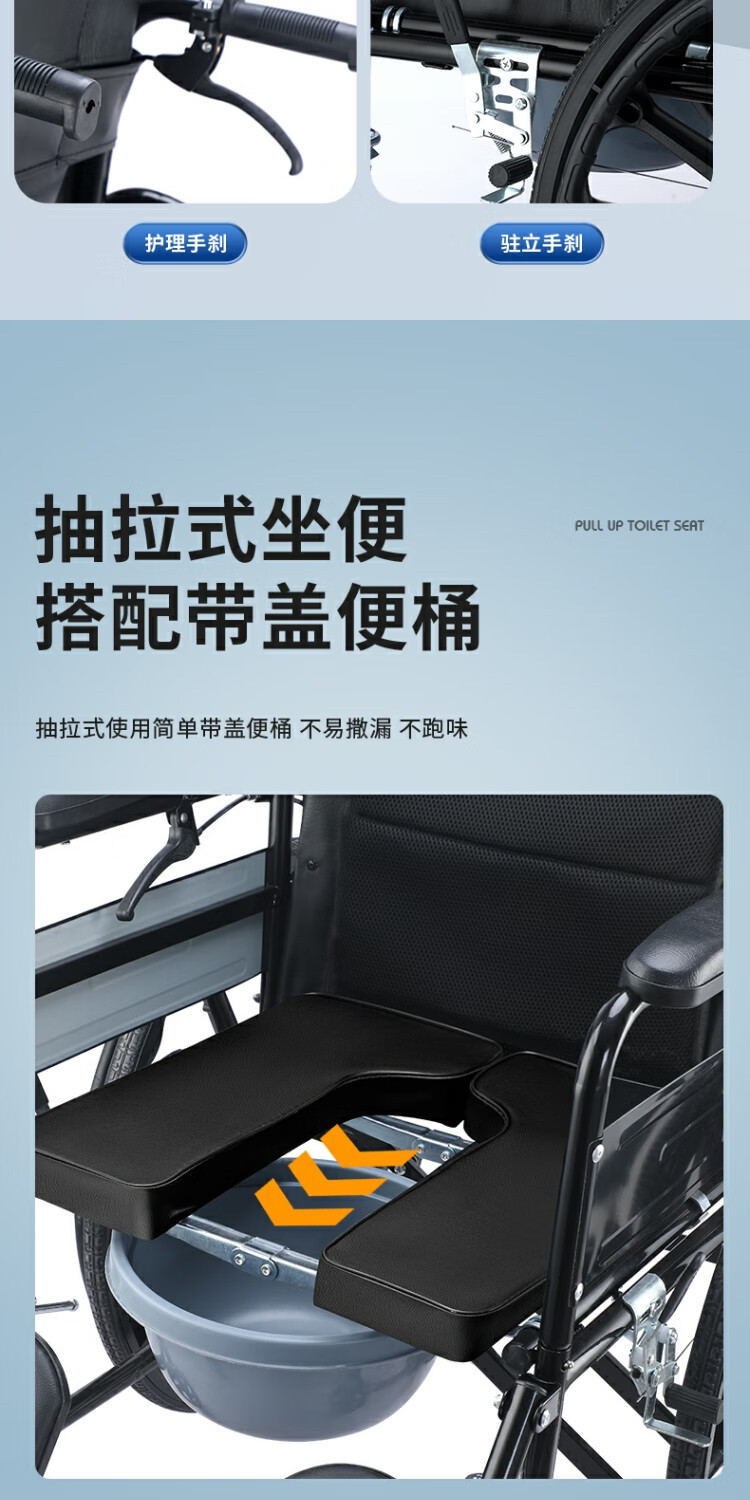 康立普(CANLIPE)轮椅瘫痪老人专用轻便全躺多功能专用出行可躺可洗澡带坐便手推车 【豪华款】扶手可掀防水皮革+可拆蜂网双坐垫一体轮