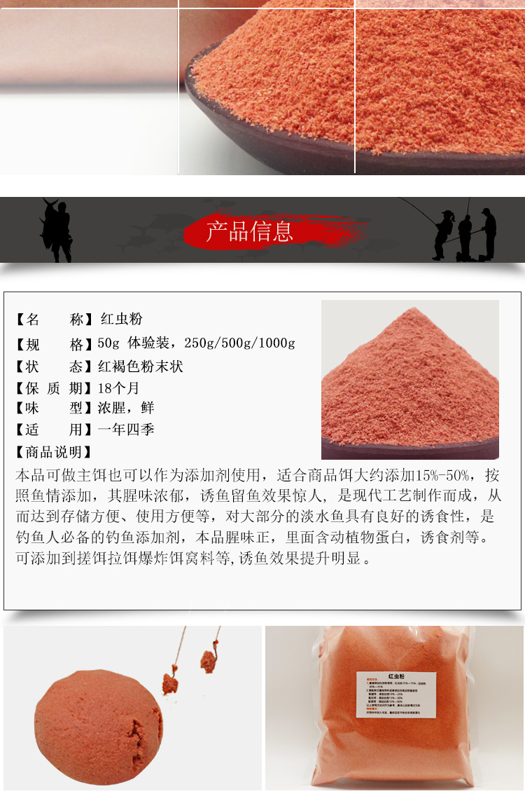 盈龙 黑坑野钓红虫粉鲫鲤饵料草青鱼饵料腥味钓鱼用品 红虫粉500克