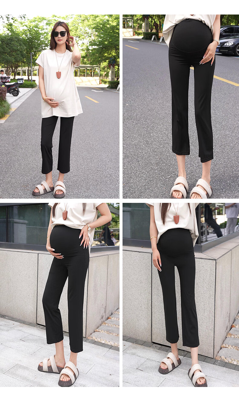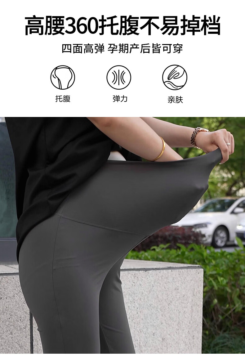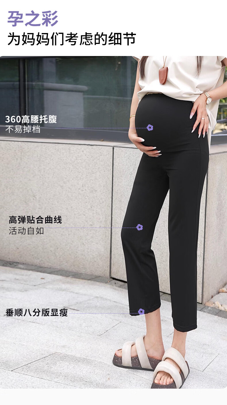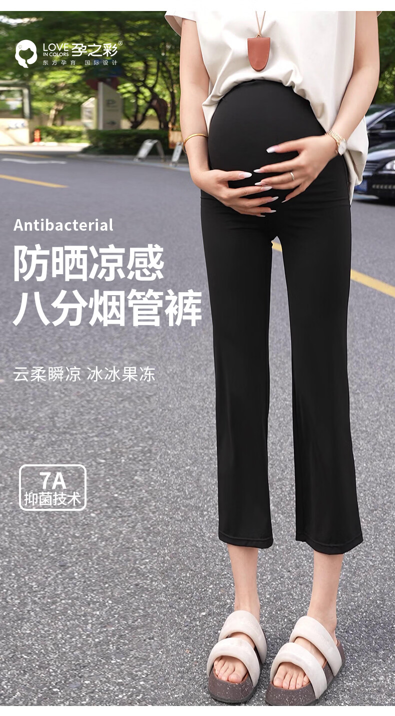 孕之彩孕妇夏季新款八分烟管裤孕妇裤薄款高腰显瘦防晒凉感直筒裤 黑色 L