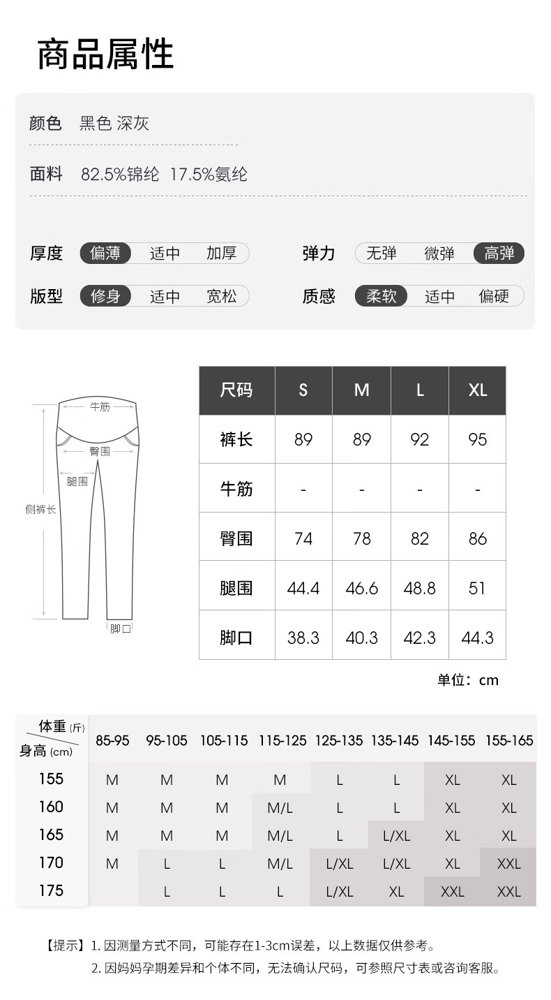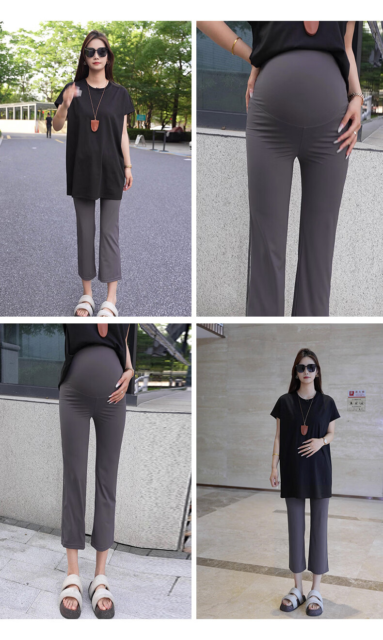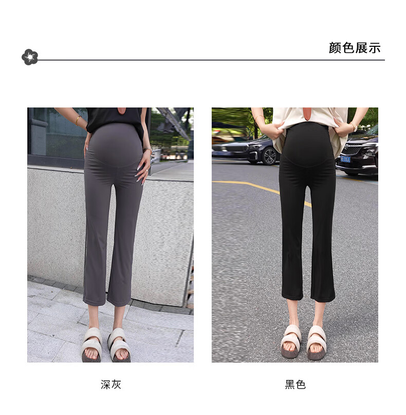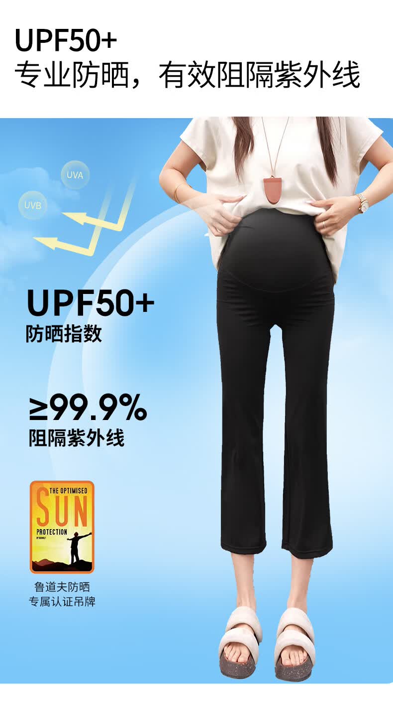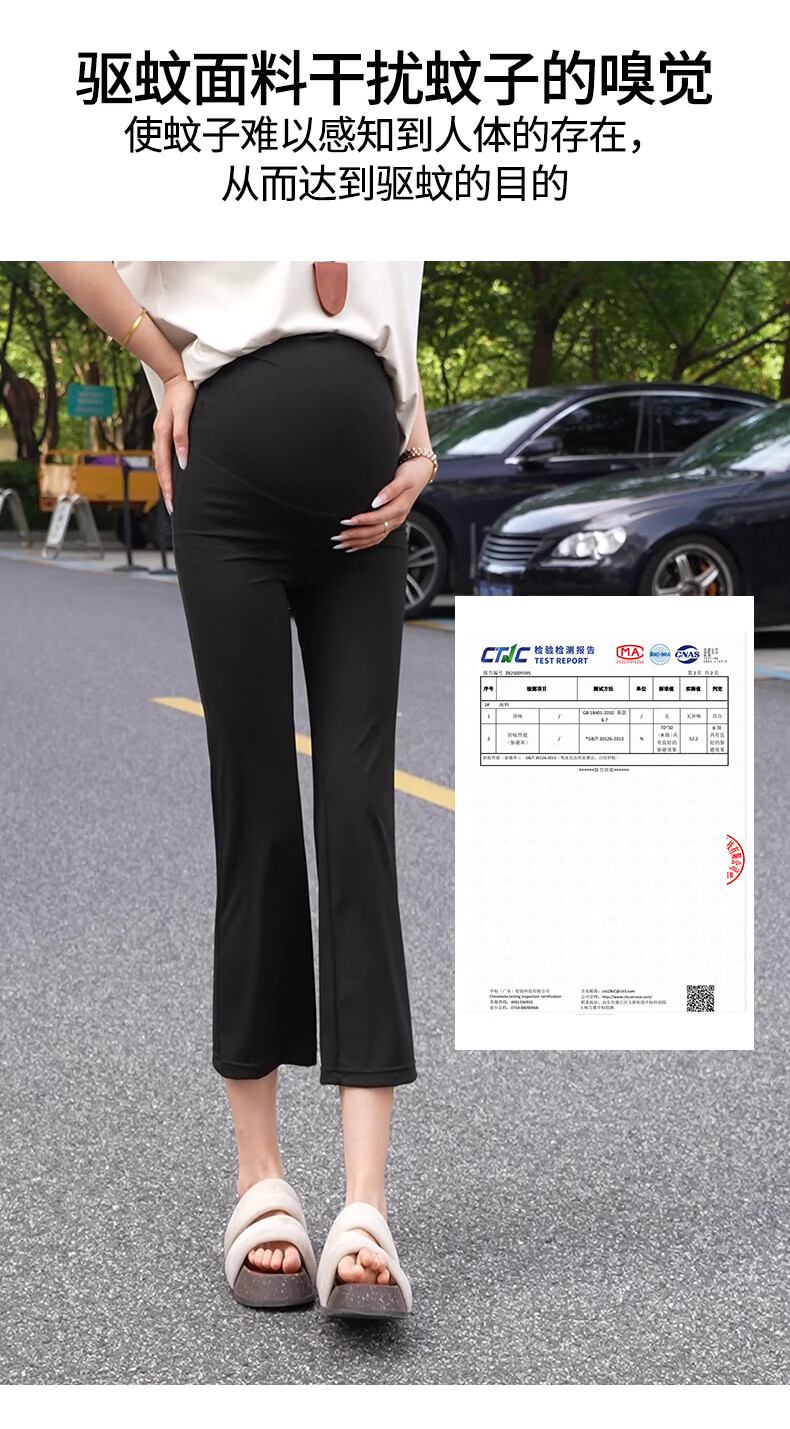 孕之彩孕妇夏季新款八分烟管裤孕妇裤薄款高腰显瘦防晒凉感直筒裤 黑色 L