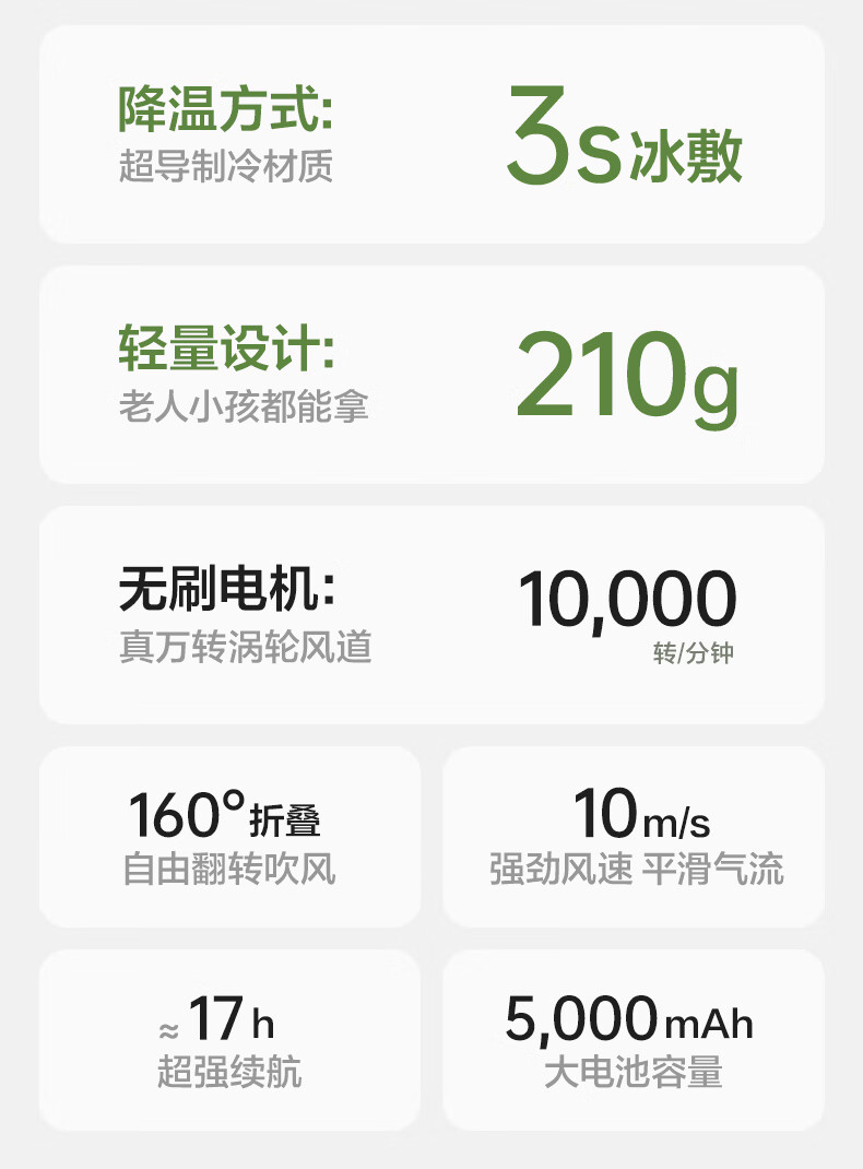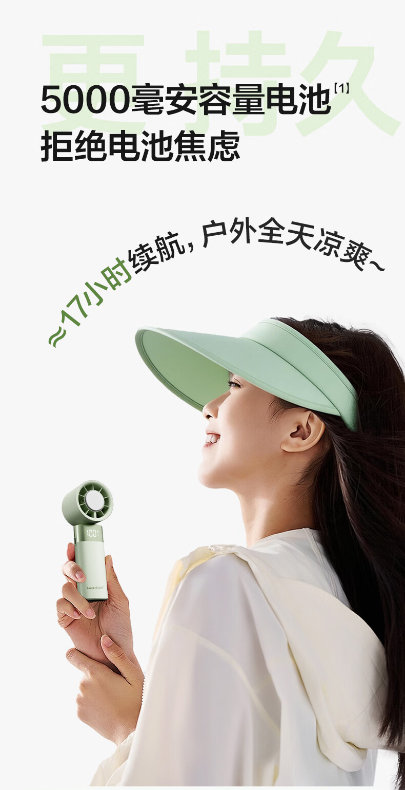乐扣乐扣【超导制冷】手持高速小风扇冰敷降温小巧可折叠随身便携超长续航桌面电风扇大风力 4000mAh云雾白