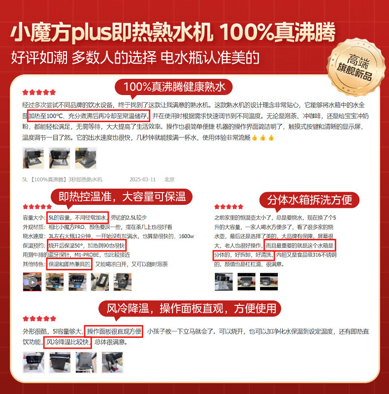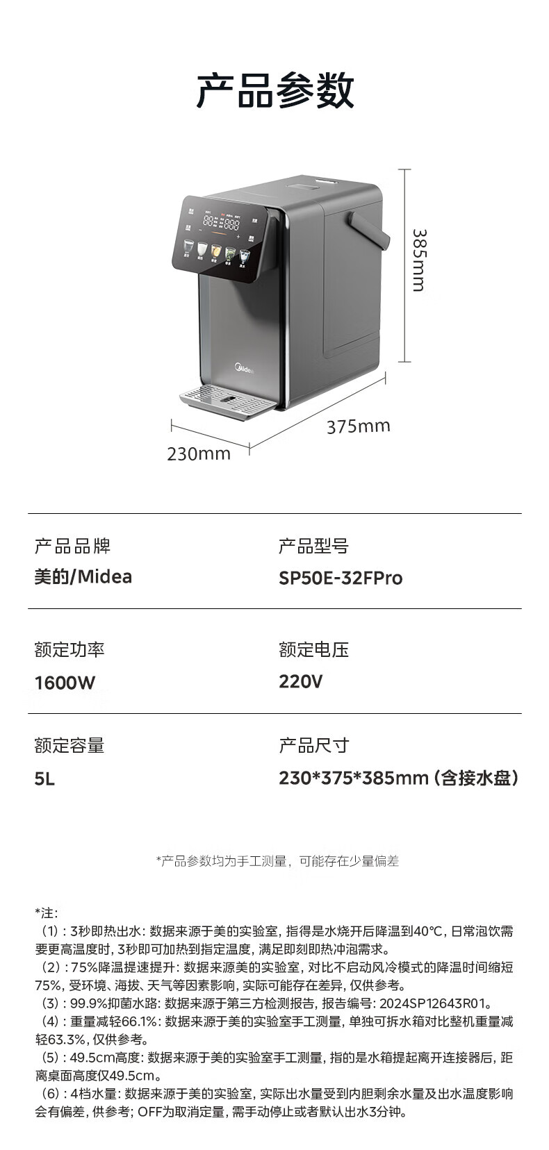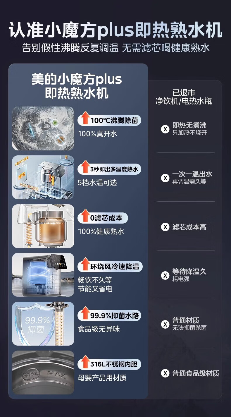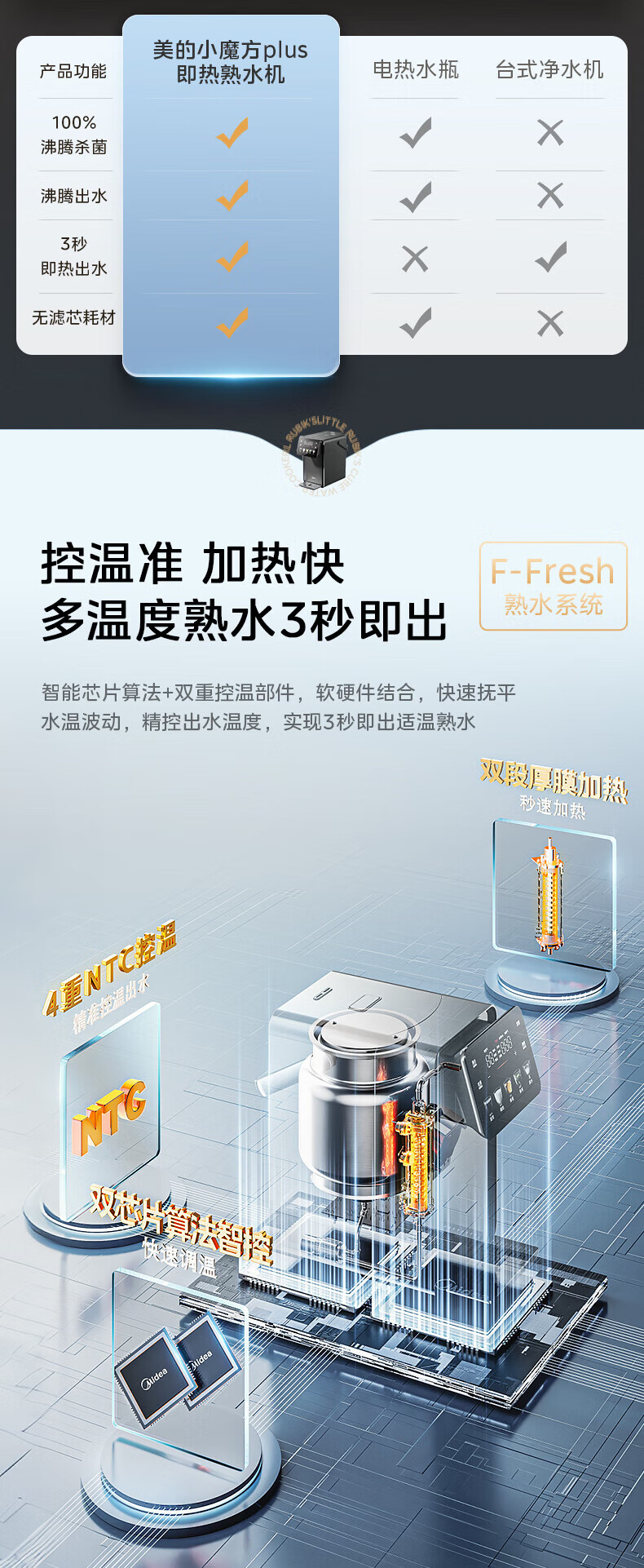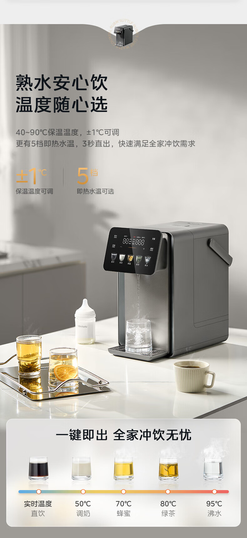 美的(Midea)小魔方plus即热熟水机 饮水机电热水瓶电水瓶 烧水壶电热水壶 保温恒温一体真沸腾除氯32FPRO 5L 【100%真沸腾】3秒即热熟水机