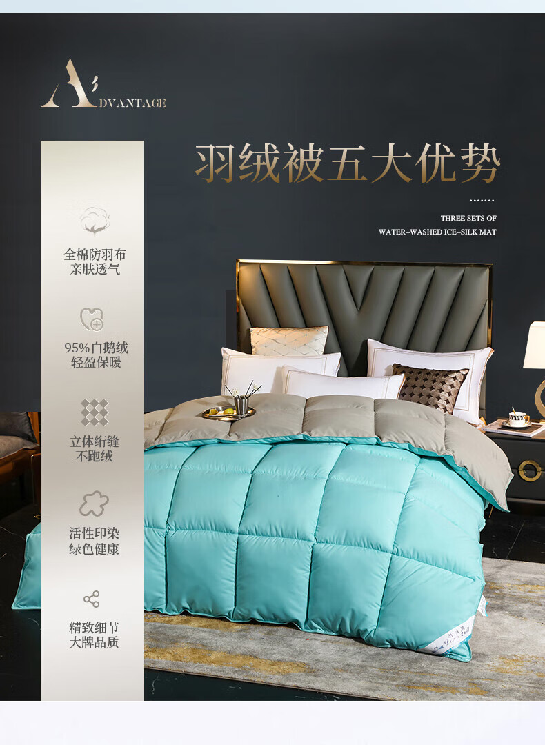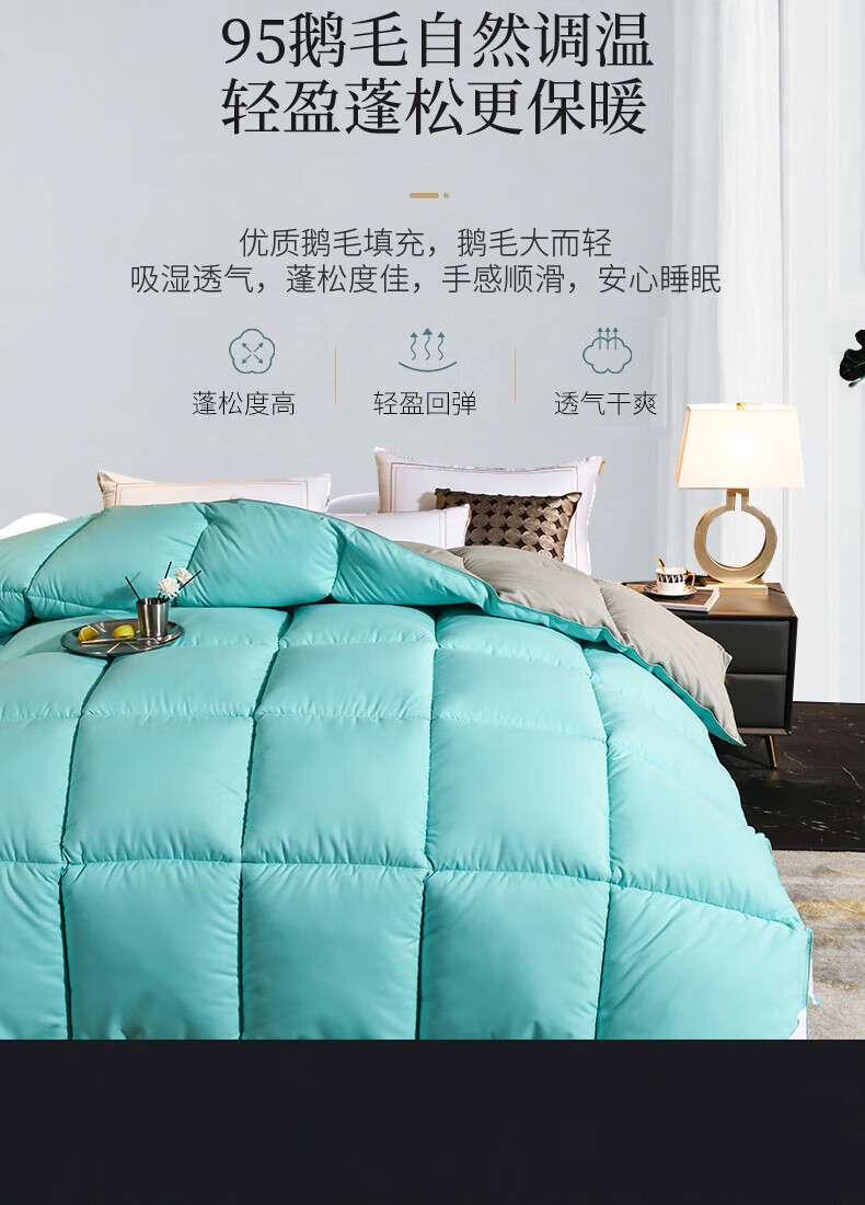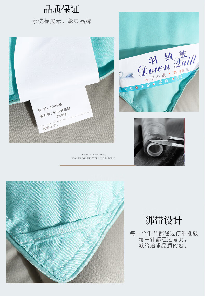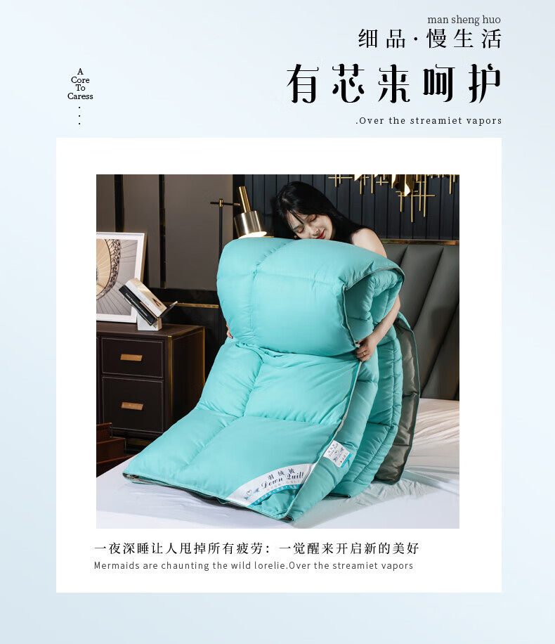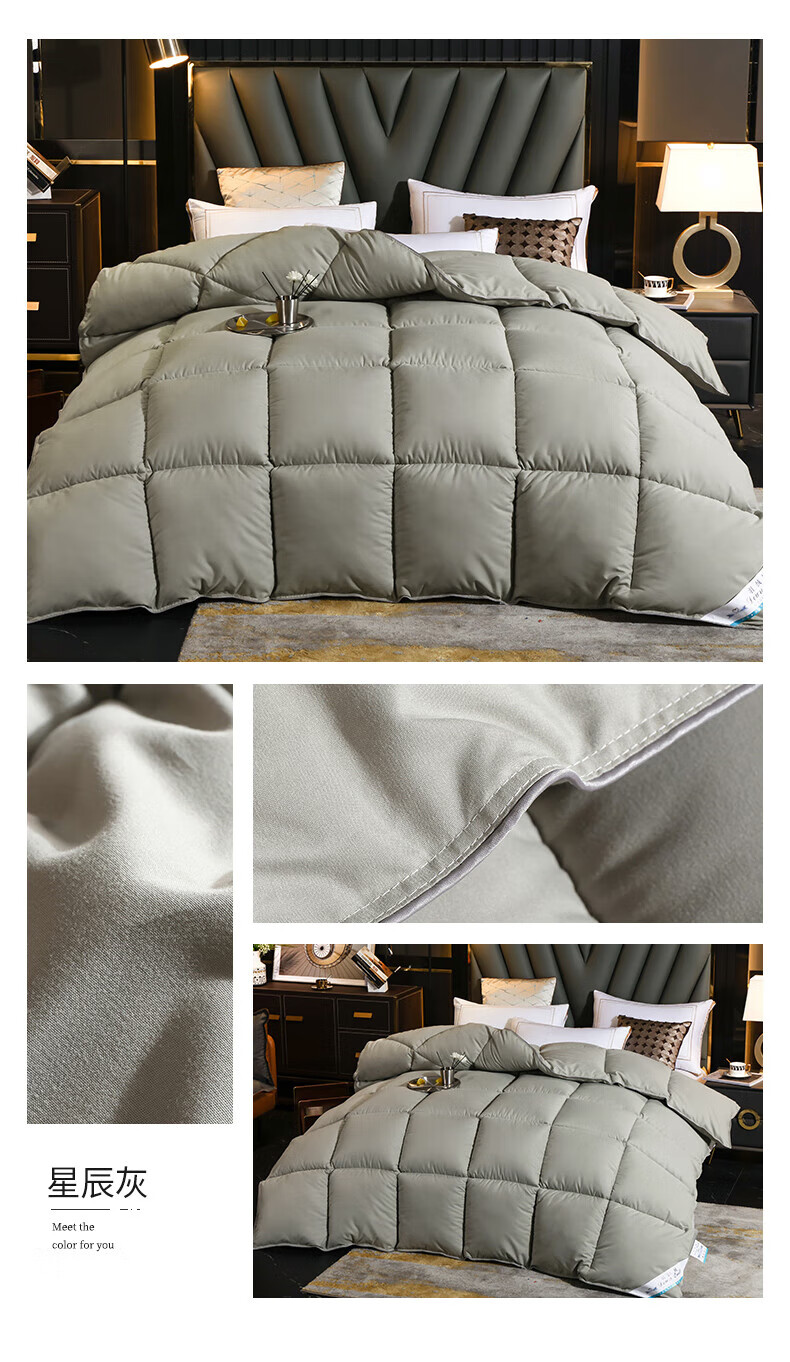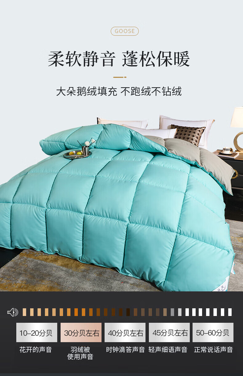 恒源祥羽丝绒被冬被加厚双人被子白鹅丝绒被单人被芯学生宿舍春秋被 艾绿灰 150x200cm 【3斤空调被】