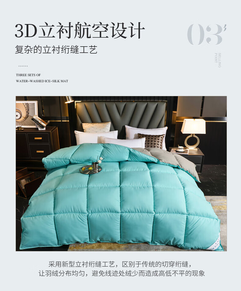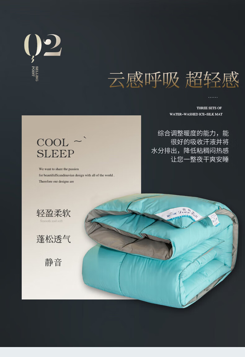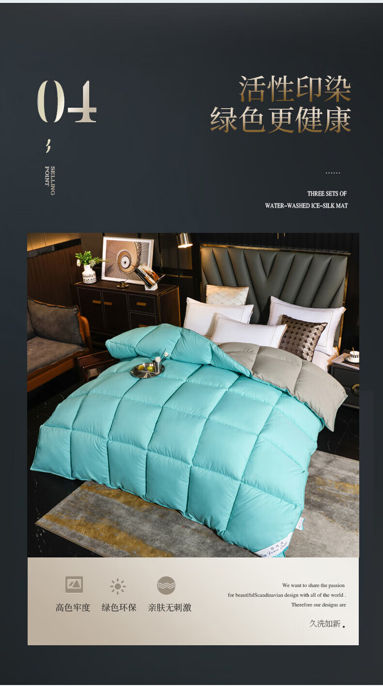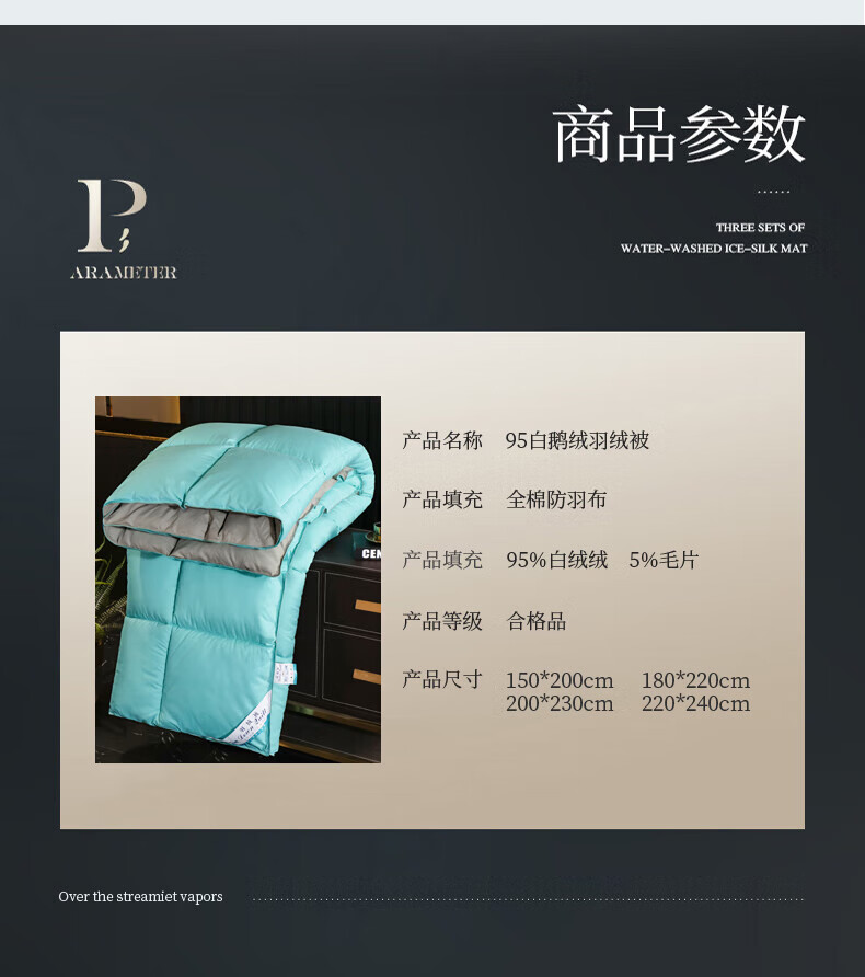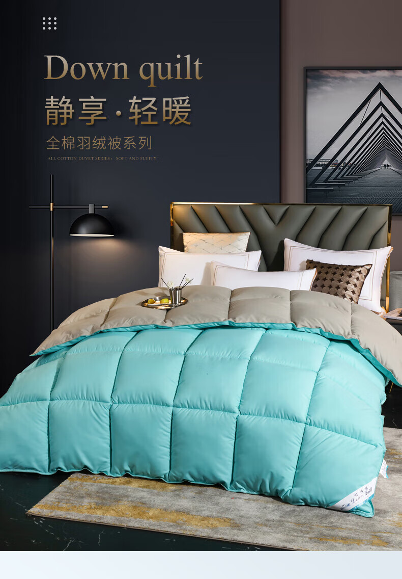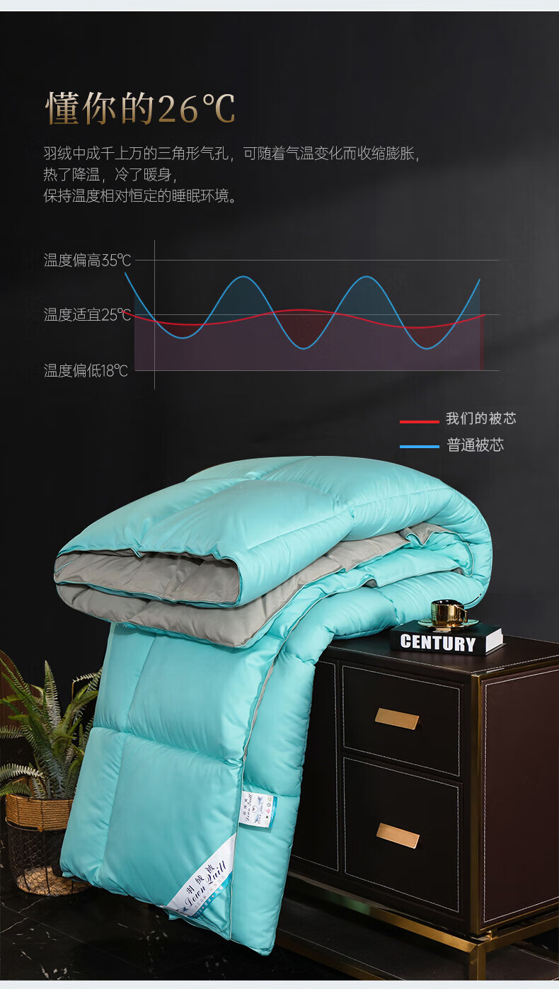 恒源祥羽丝绒被冬被加厚双人被子白鹅丝绒被单人被芯学生宿舍春秋被 艾绿灰 150x200cm 【3斤空调被】