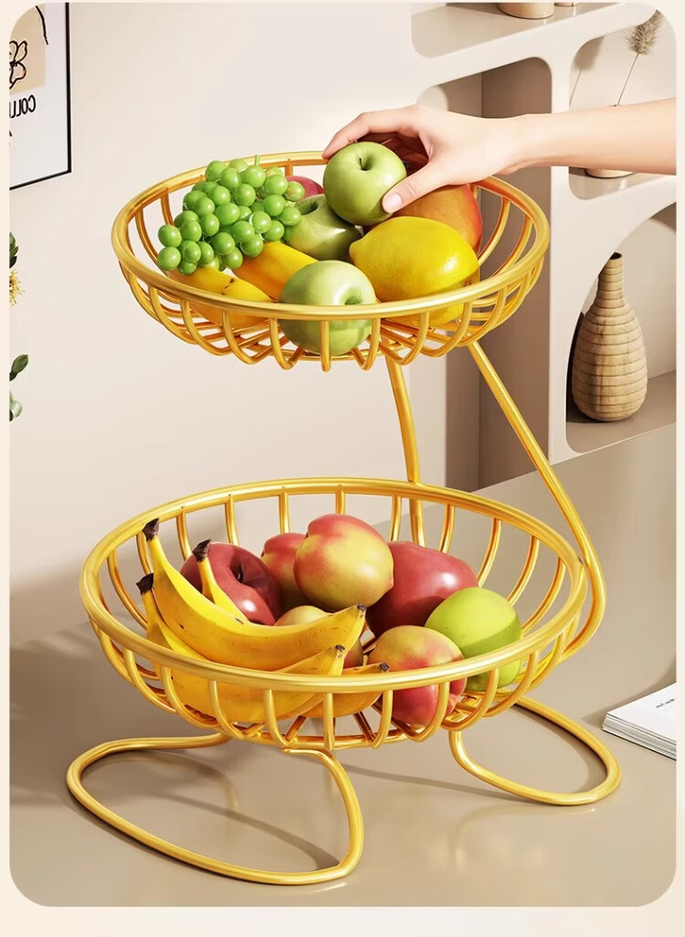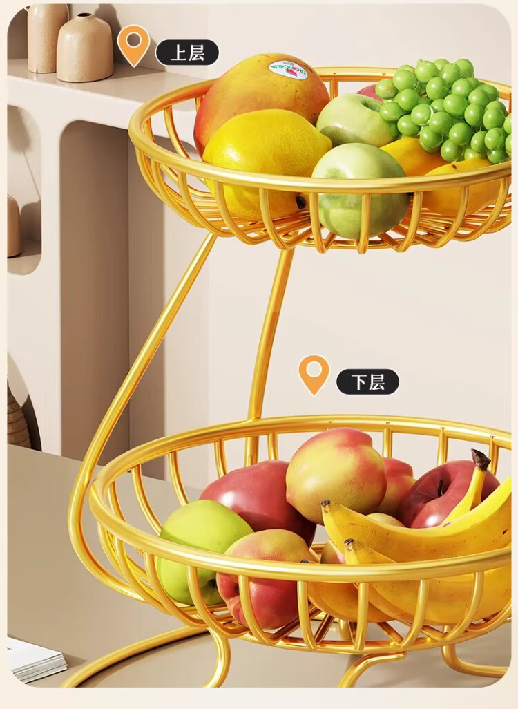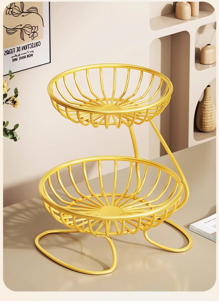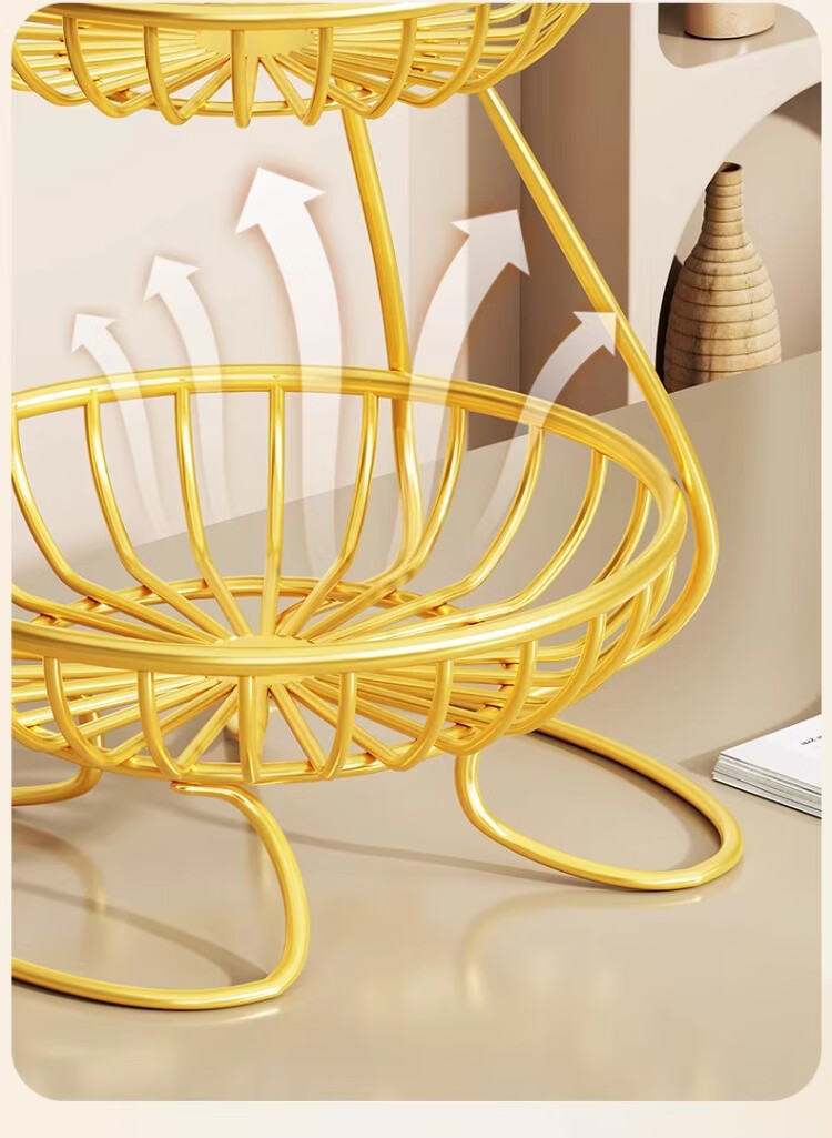 尔思家果盘水果盘家用客厅茶几干果盘糖果盘轻奢水果篮高档零食摆放盘 金色大号