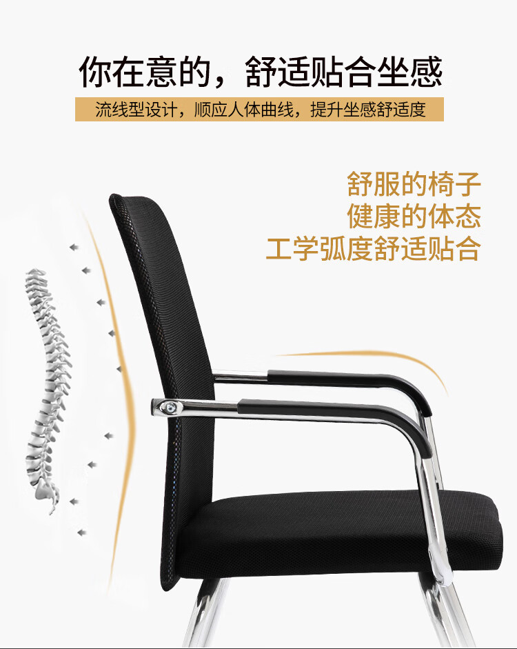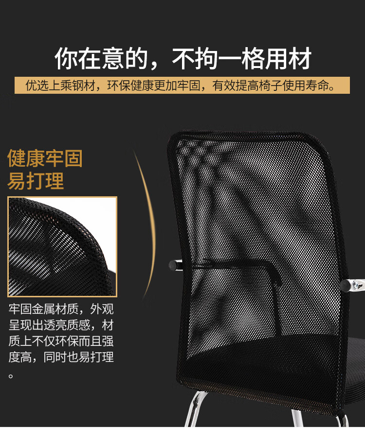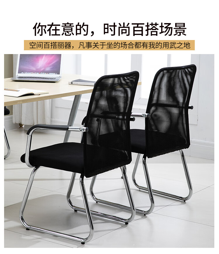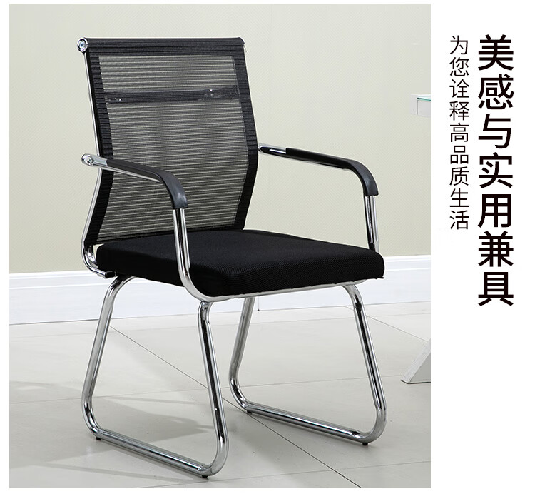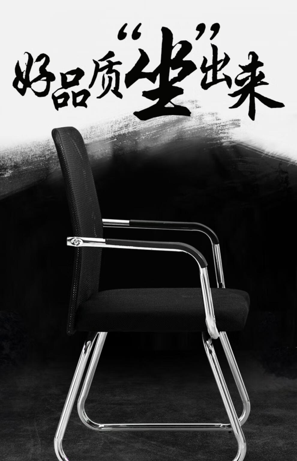 迈途森办公椅舒适久坐会议室椅学生宿舍弓形网麻将椅子电脑椅家用靠背凳 黑色网布电镀弓架椅【10年质保】 钢制 固定扶手