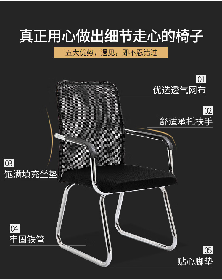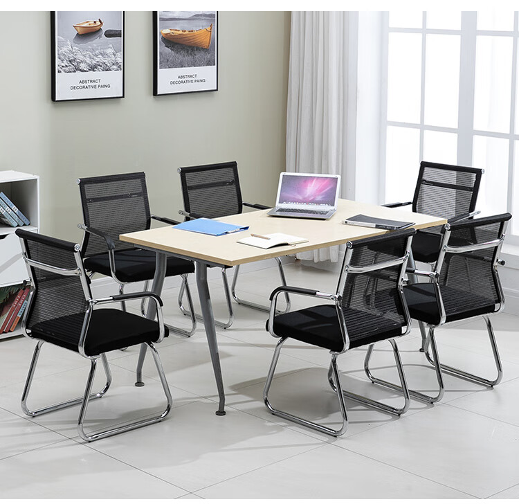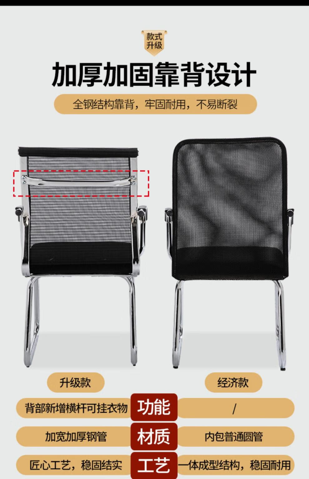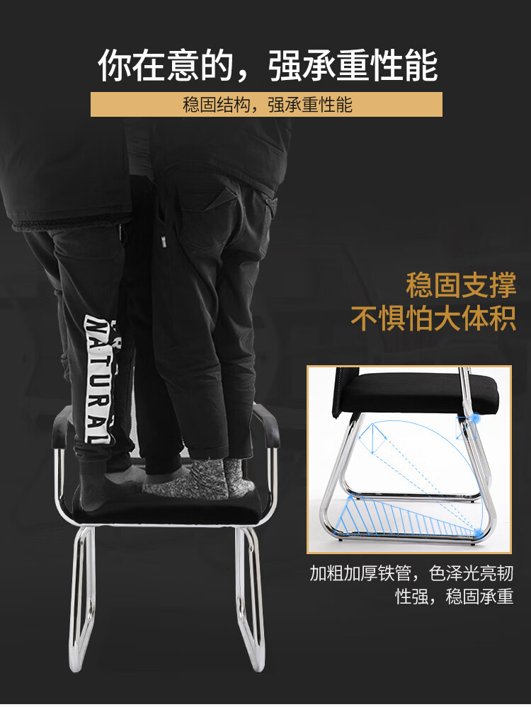 迈途森办公椅舒适久坐会议室椅学生宿舍弓形网麻将椅子电脑椅家用靠背凳 黑色网布电镀弓架椅【10年质保】 钢制 固定扶手