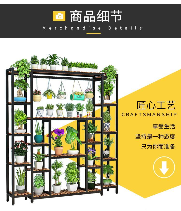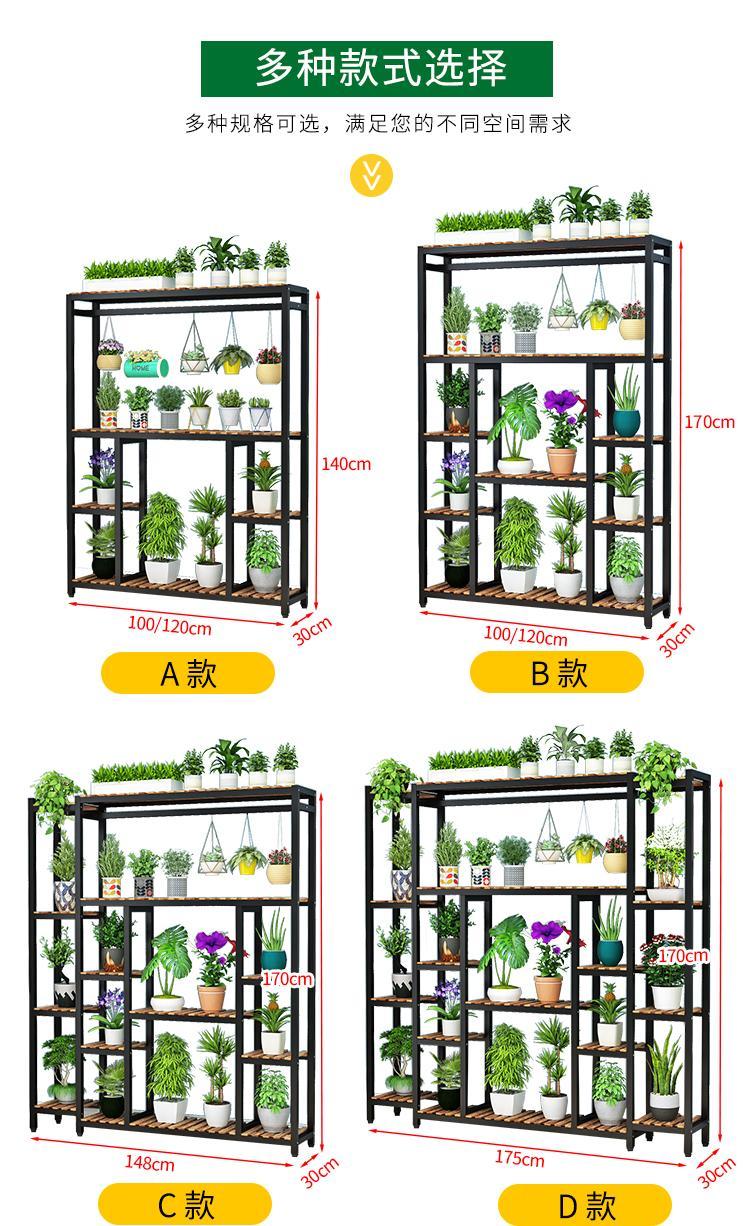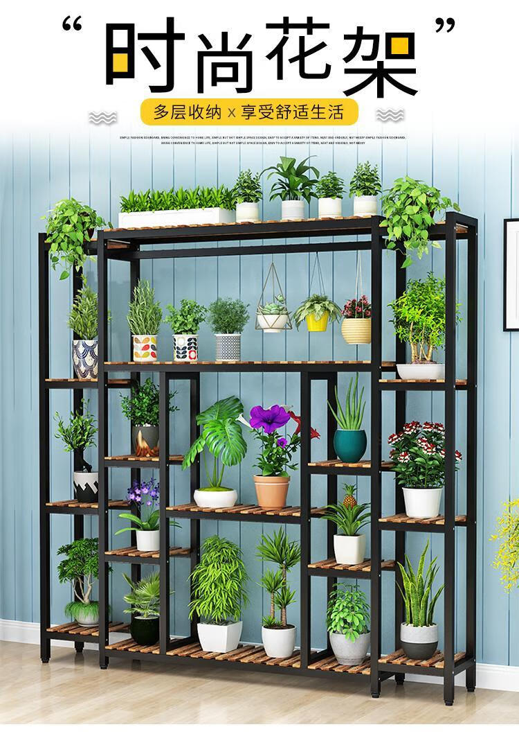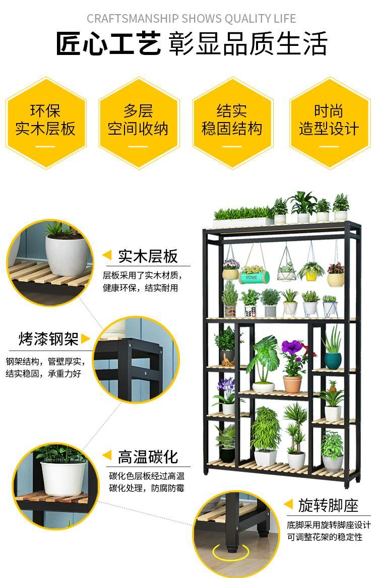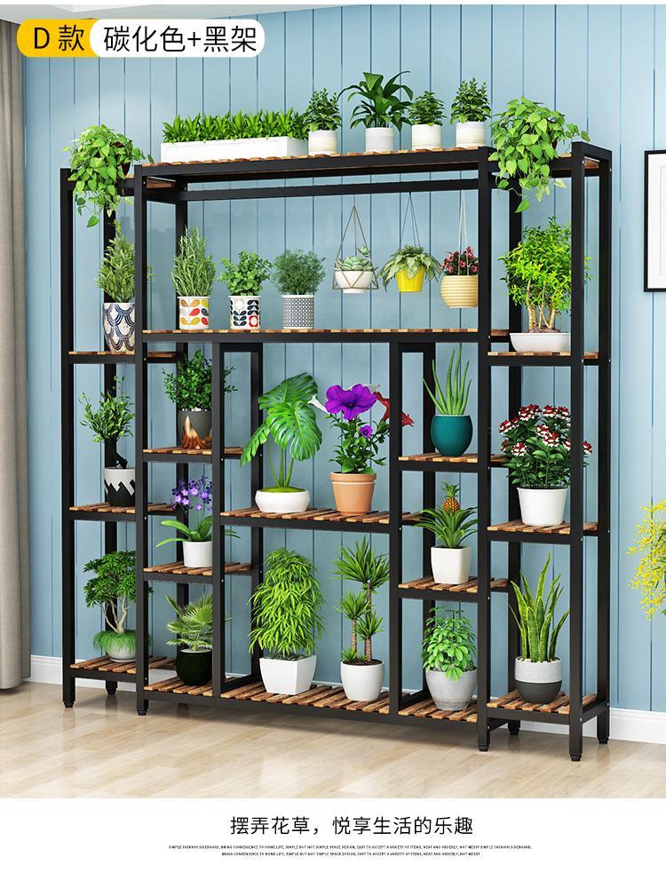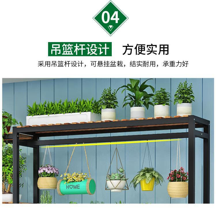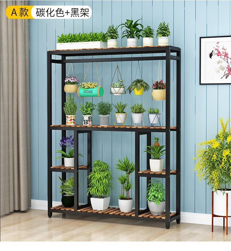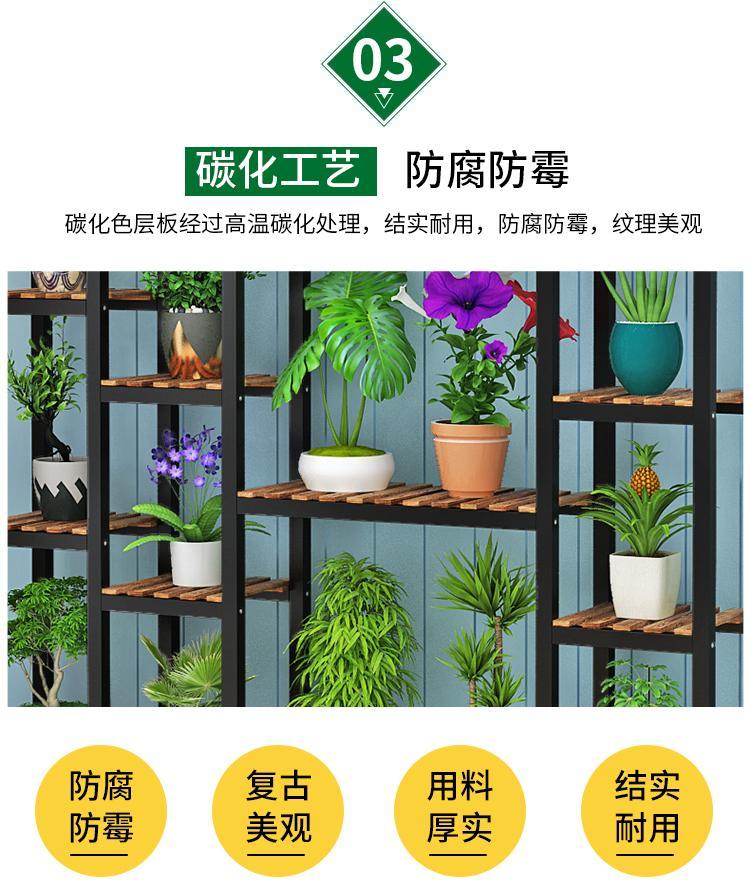 倘然之家铁艺花园多肉新款花架室内家用阳台客厅防腐植物花盆架定制花架子 黑架+碳化板长100深30高140