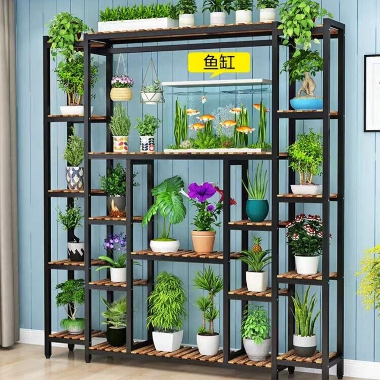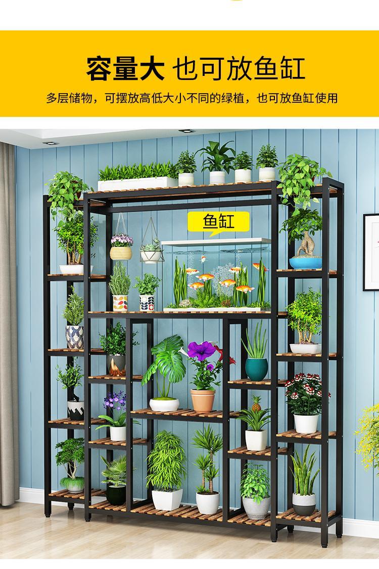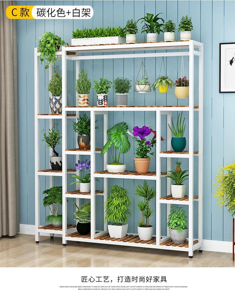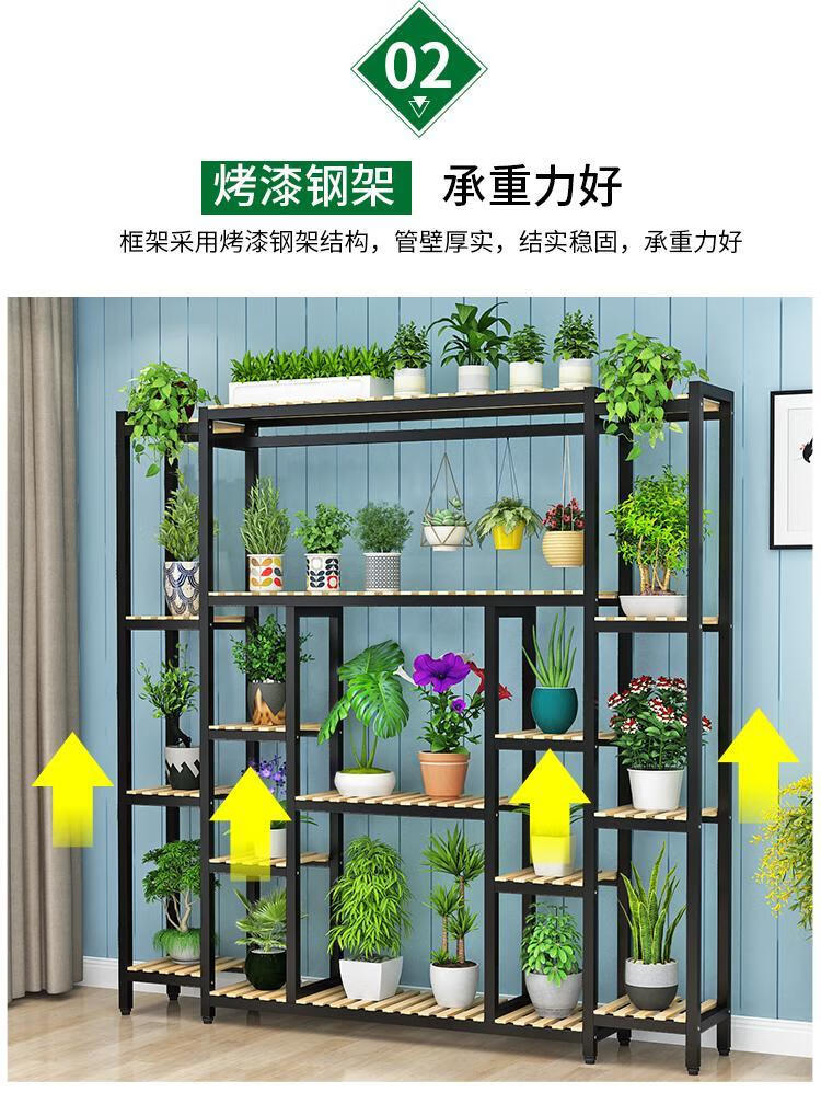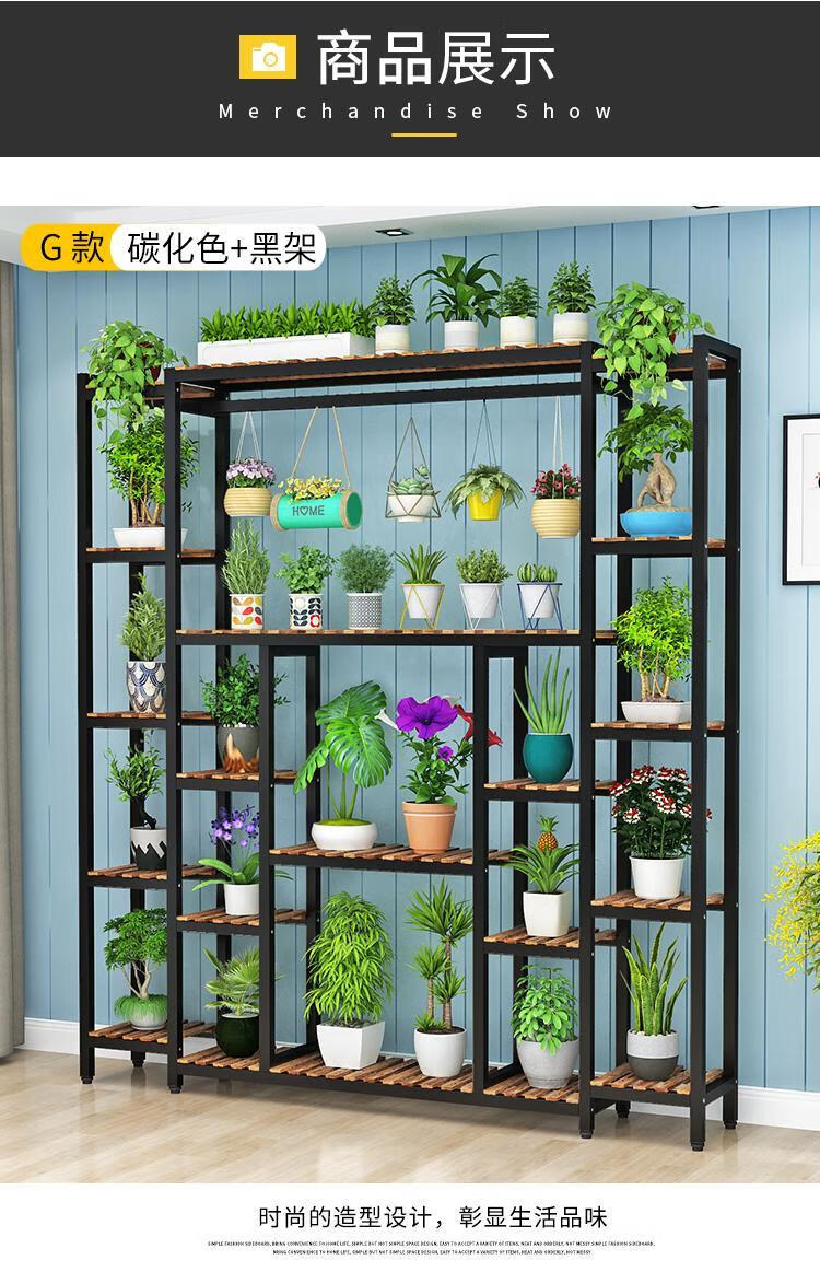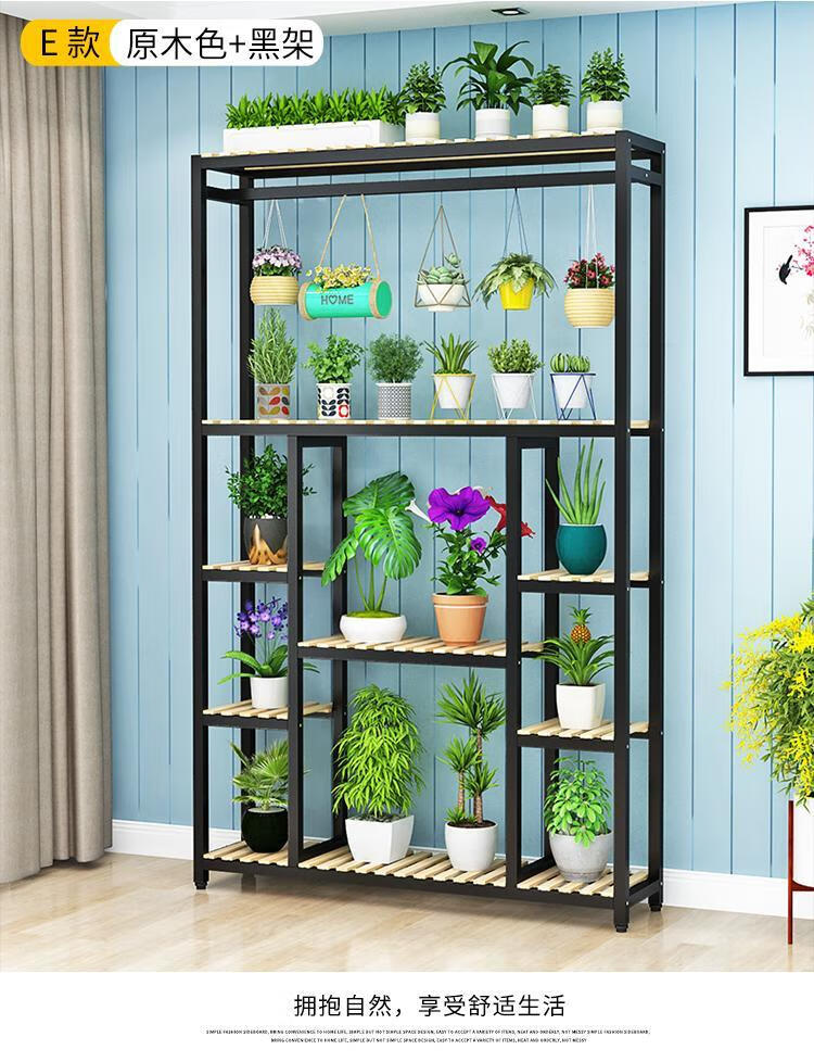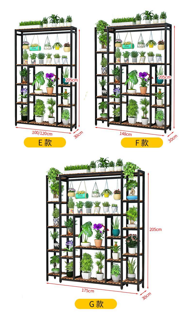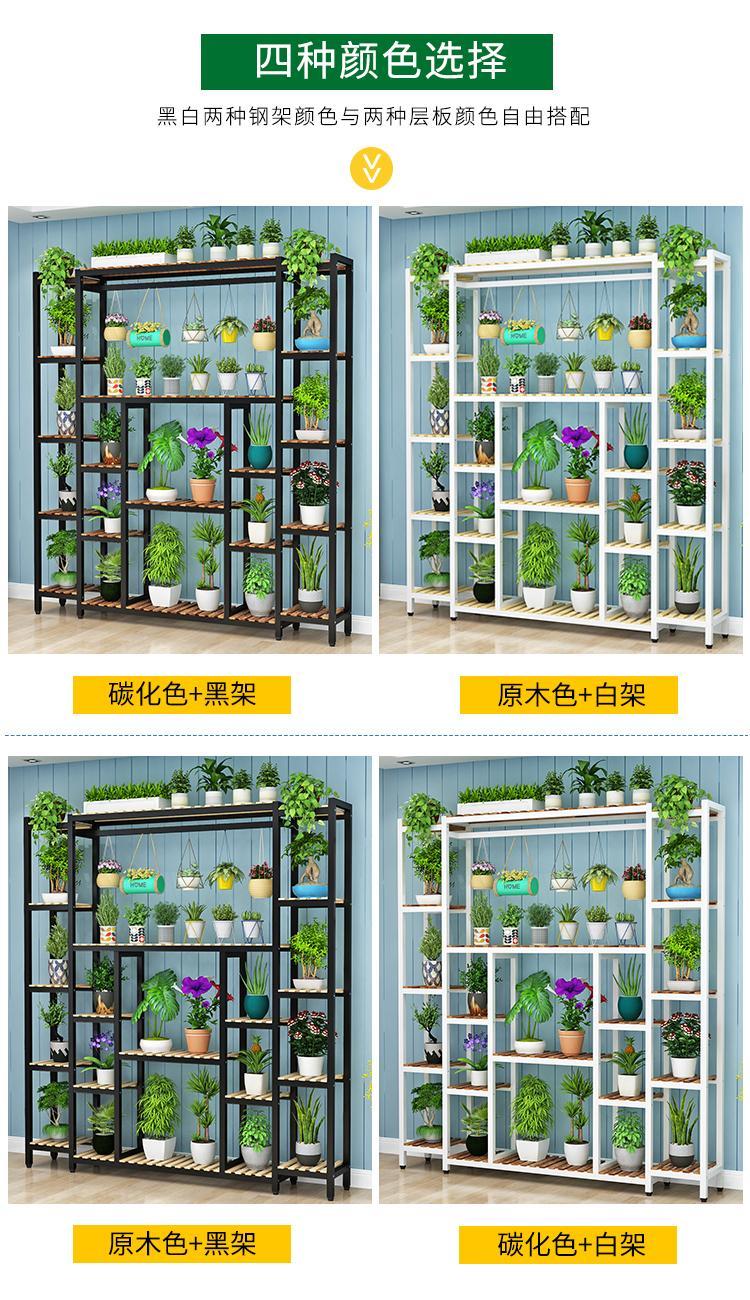 倘然之家铁艺花园多肉新款花架室内家用阳台客厅防腐植物花盆架定制花架子 黑架+碳化板长100深30高140