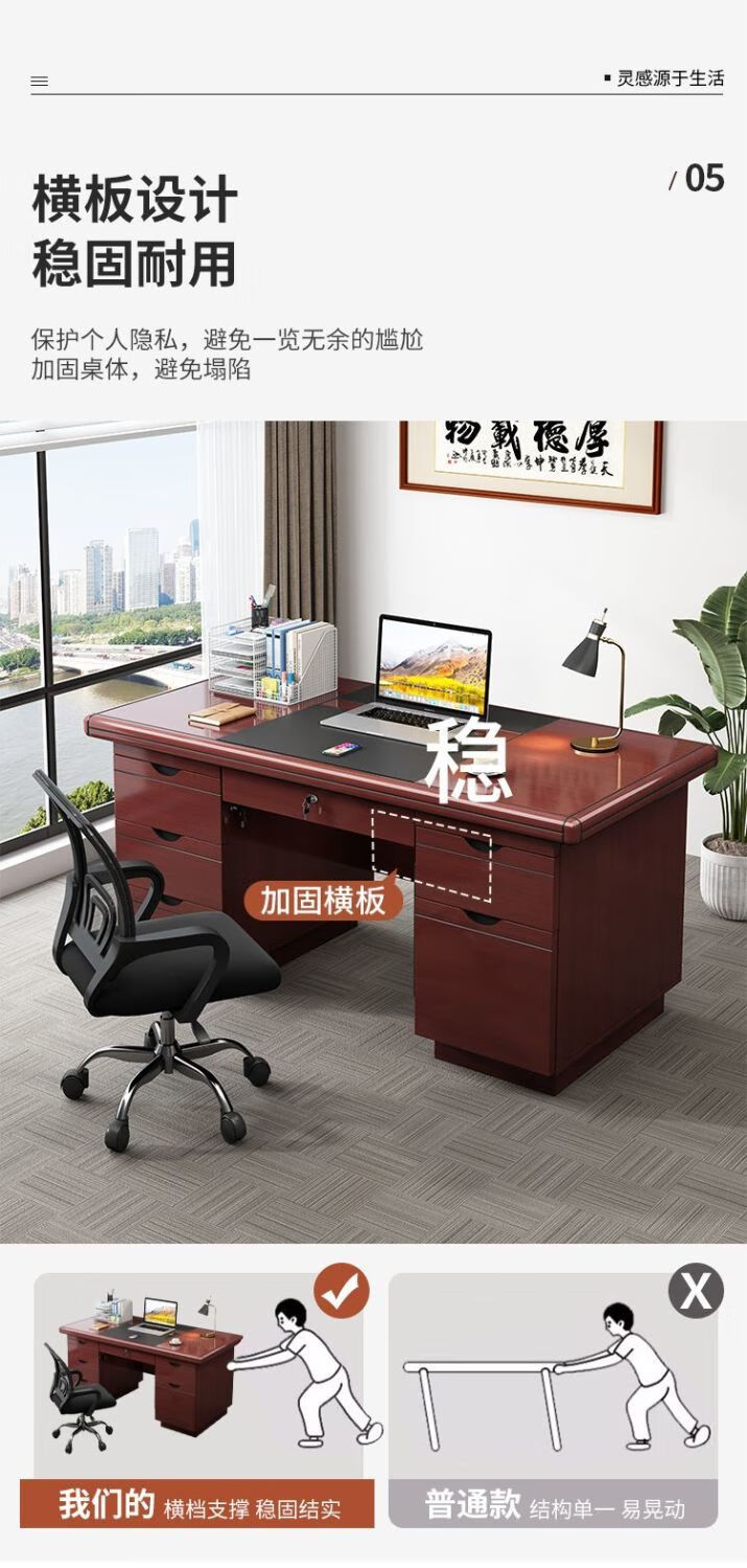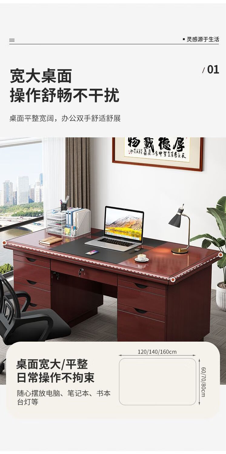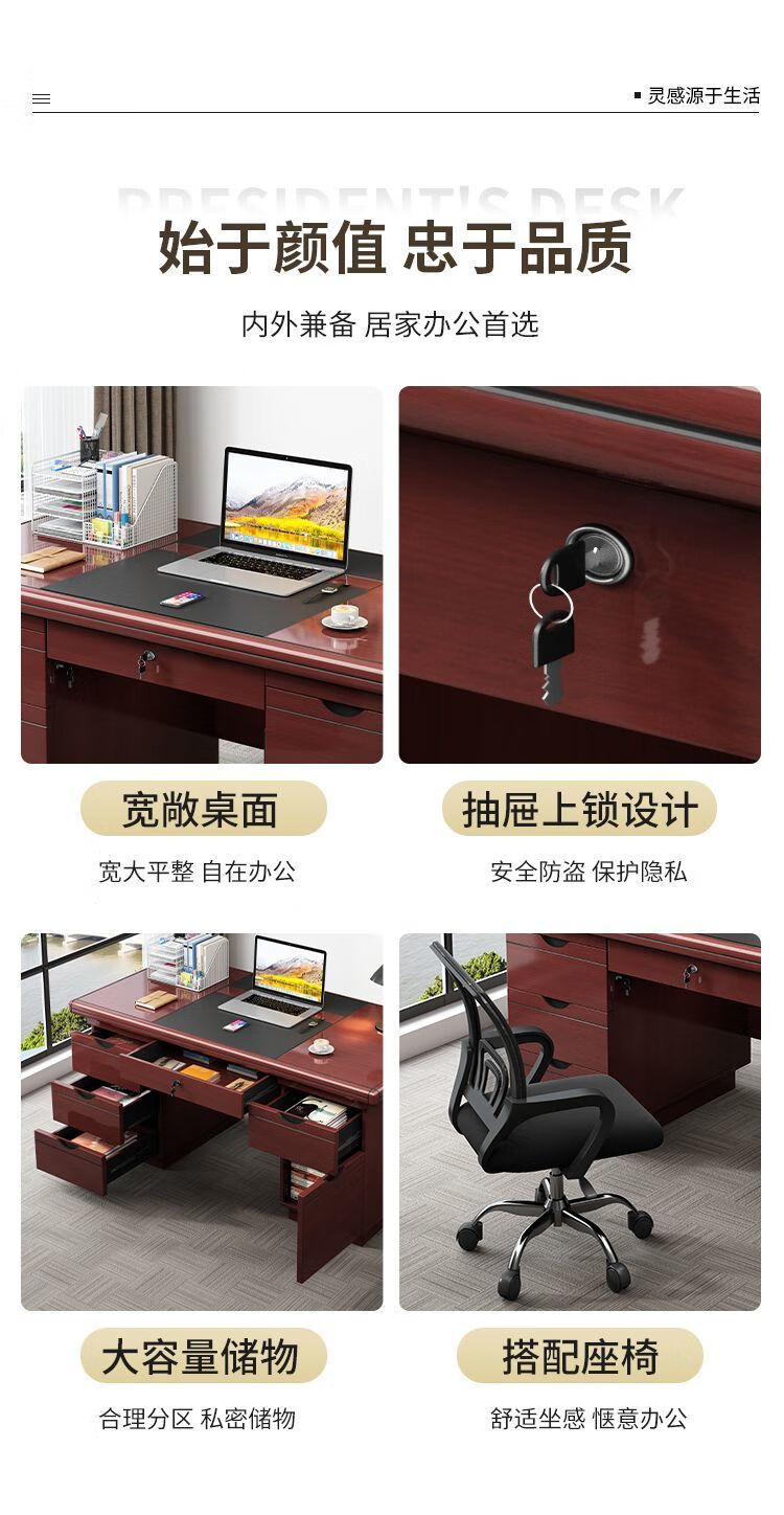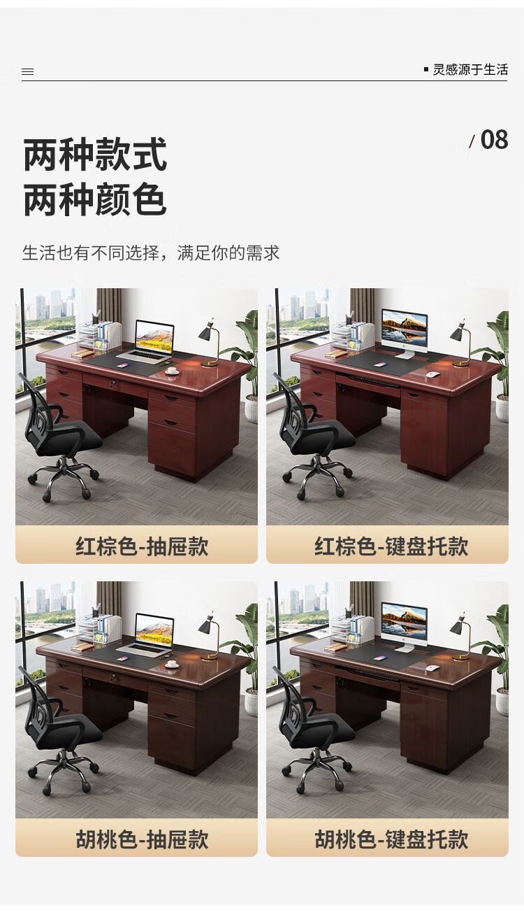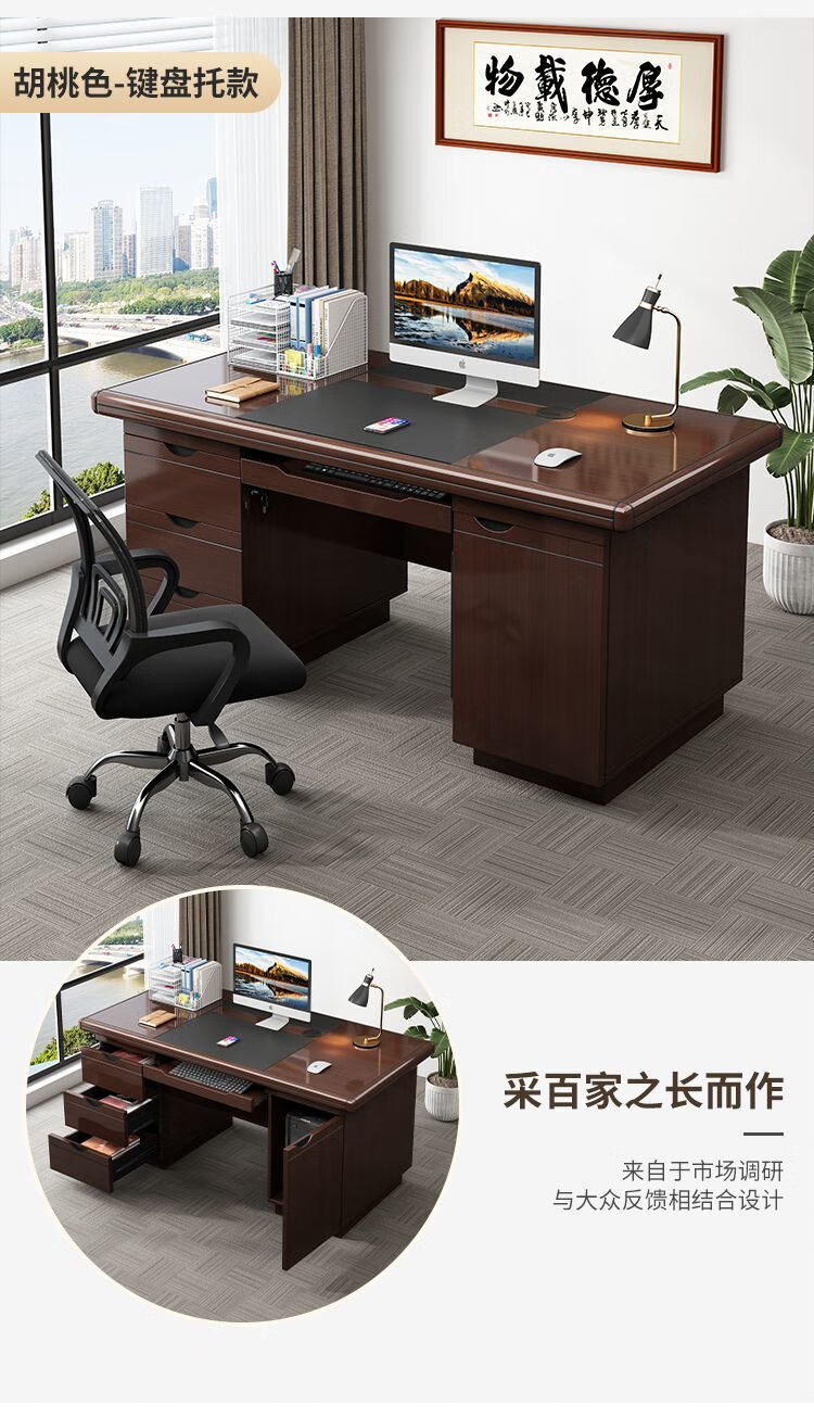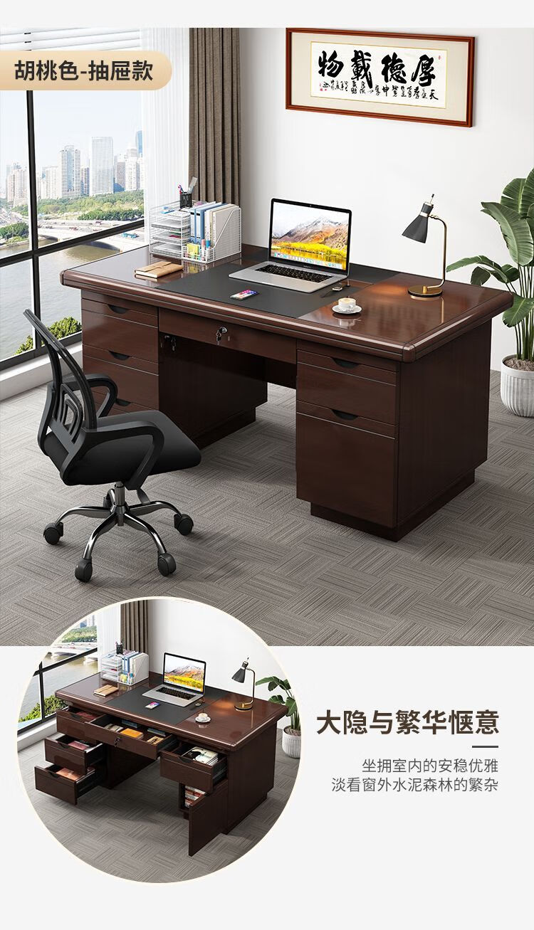 弘星隆新中式电脑桌简约现代办公桌职员桌带抽屉家用桌子商用台式办公桌 1.2米电脑桌胡桃色 送货入户