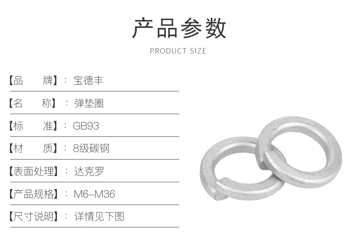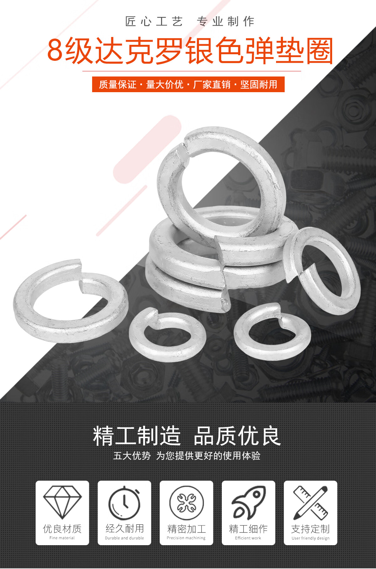宝德丰8.8级达克罗弹簧垫平垫片六角螺帽平垫圈弹垫M3M5M6M8M10M12-M36 M6(500只)