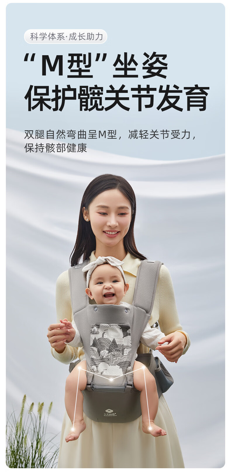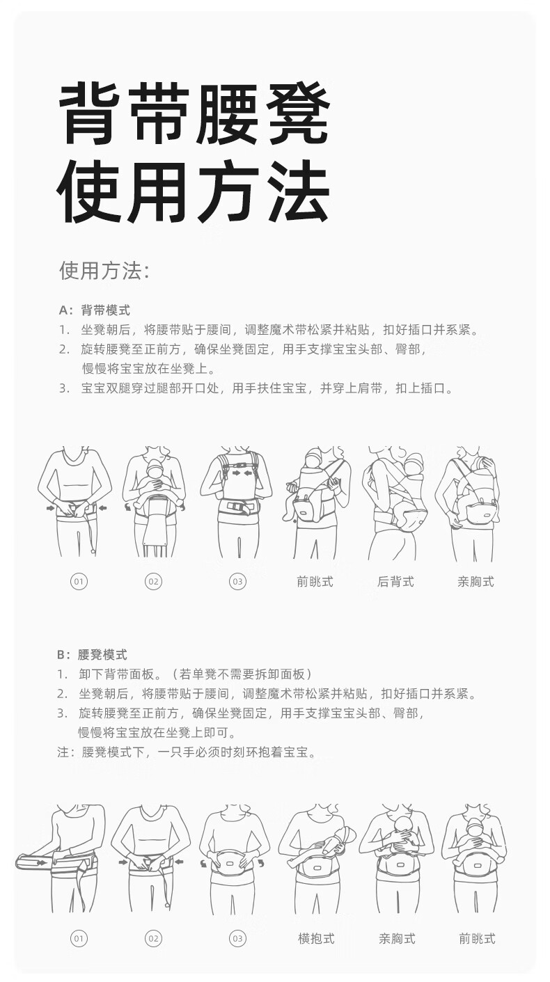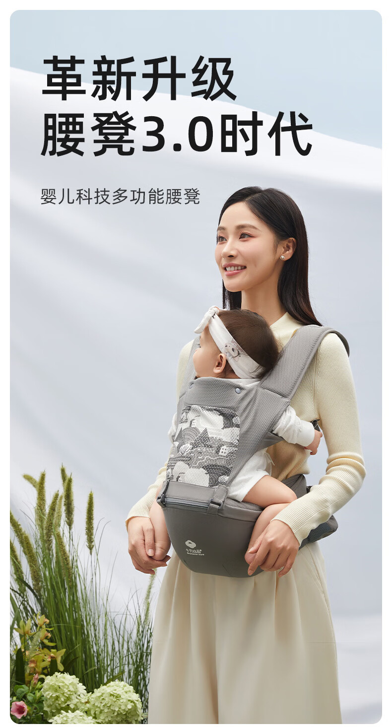 十月结晶腰凳婴儿背带轻便前抱式宝宝外出抱托坐凳抱娃神器 桃夭粉