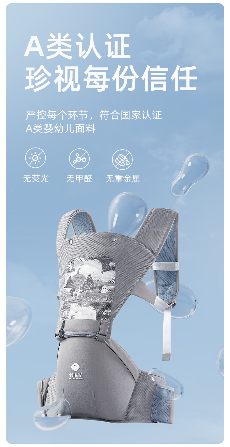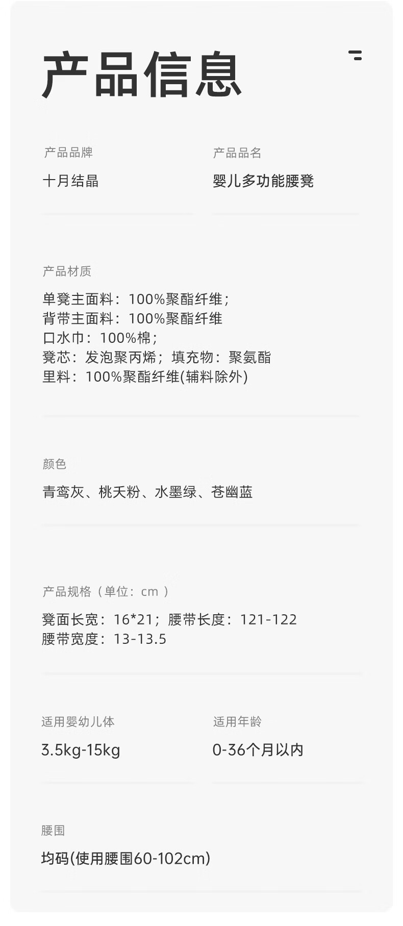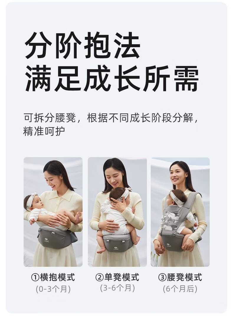 十月结晶腰凳婴儿背带轻便前抱式宝宝外出抱托坐凳抱娃神器 桃夭粉