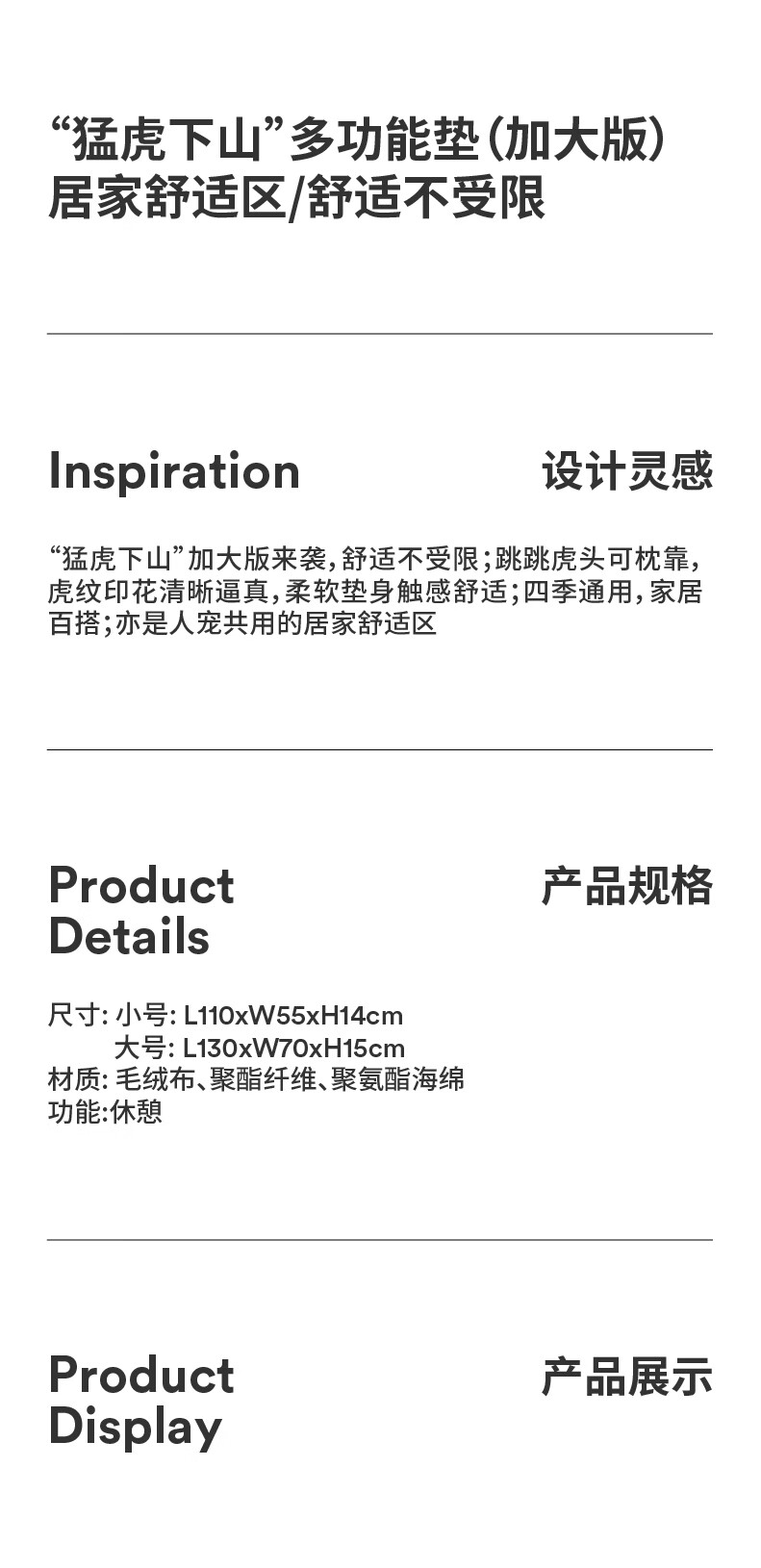 ZEZE老虎垫子狗垫子狗窝狗狗睡垫宠物四季通用大型犬小型犬带枕头