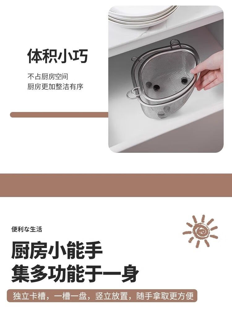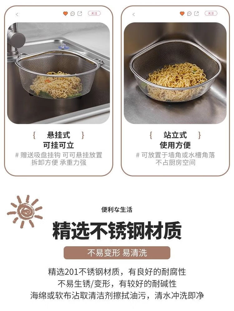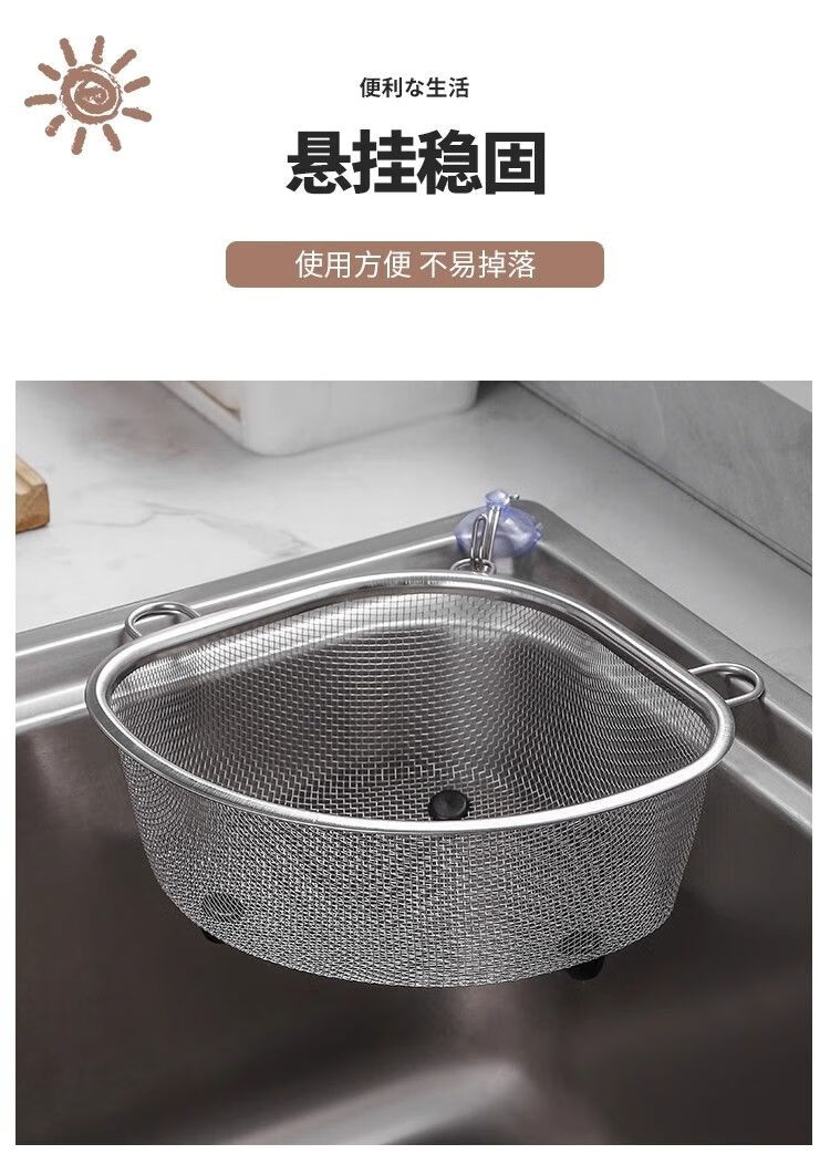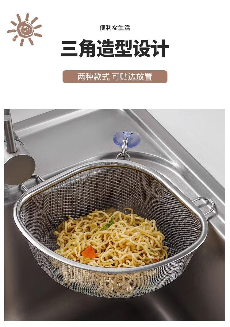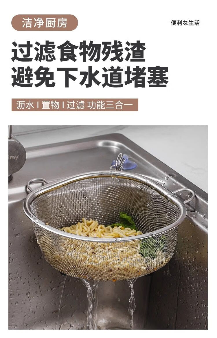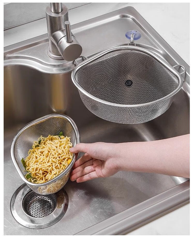 简漾不锈钢水槽垃圾沥水篮三角过滤网厨房洗菜盆架水池剩菜剩饭漏水筐 三角沥水篮浅款挂耳-小号1个装