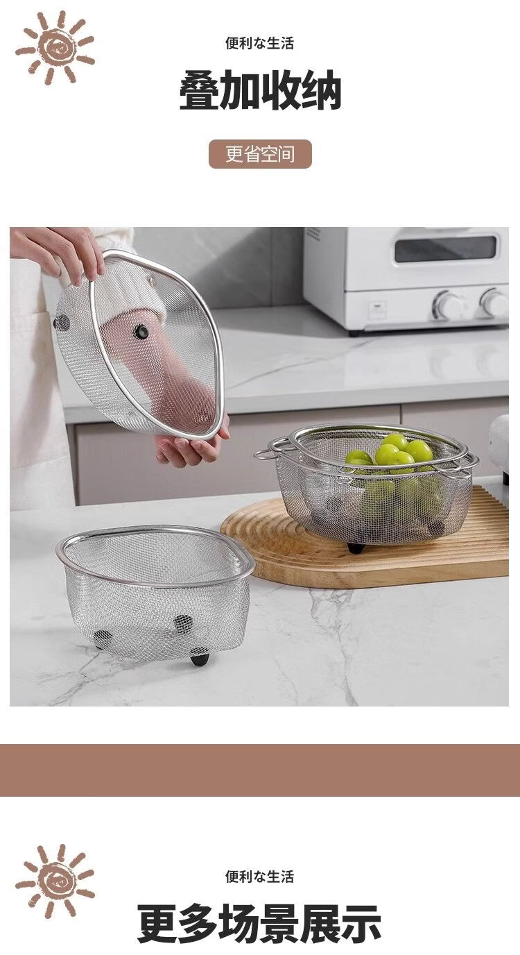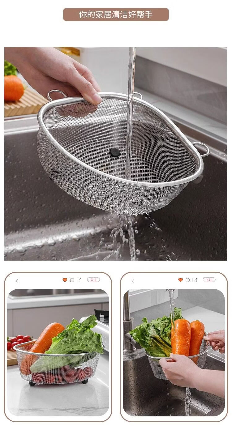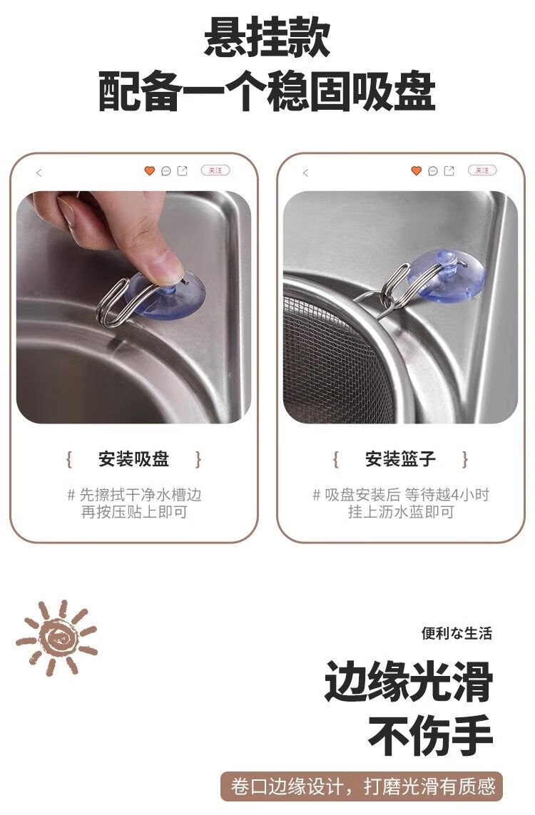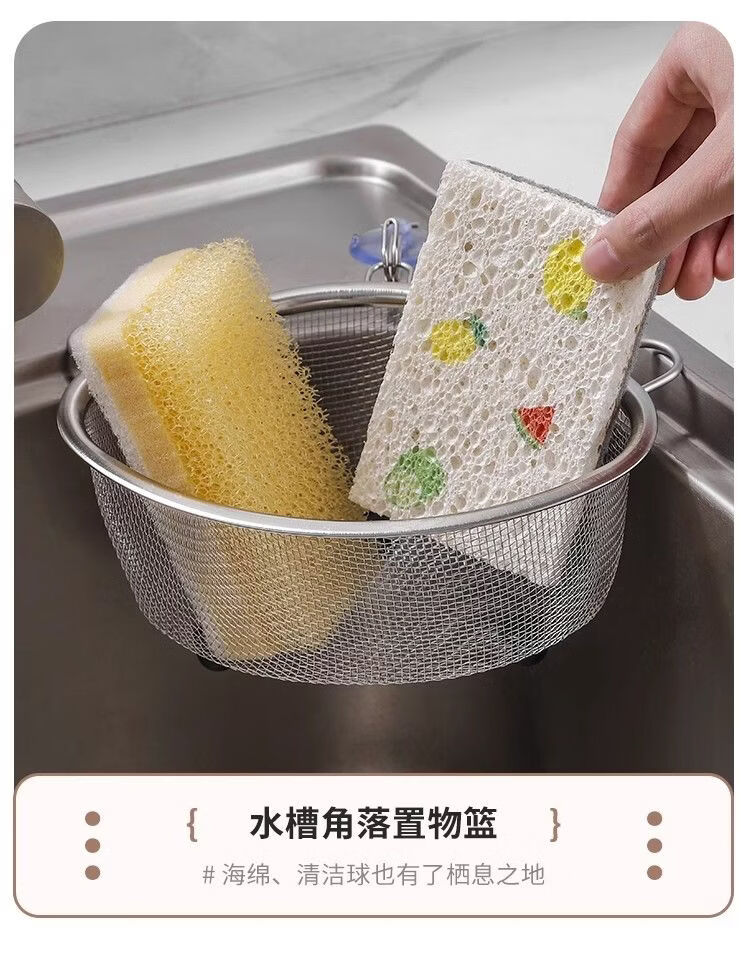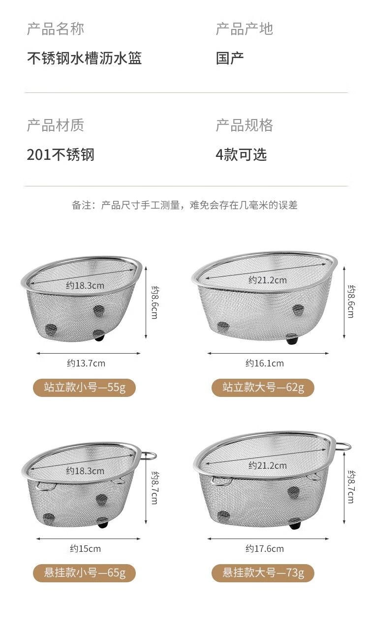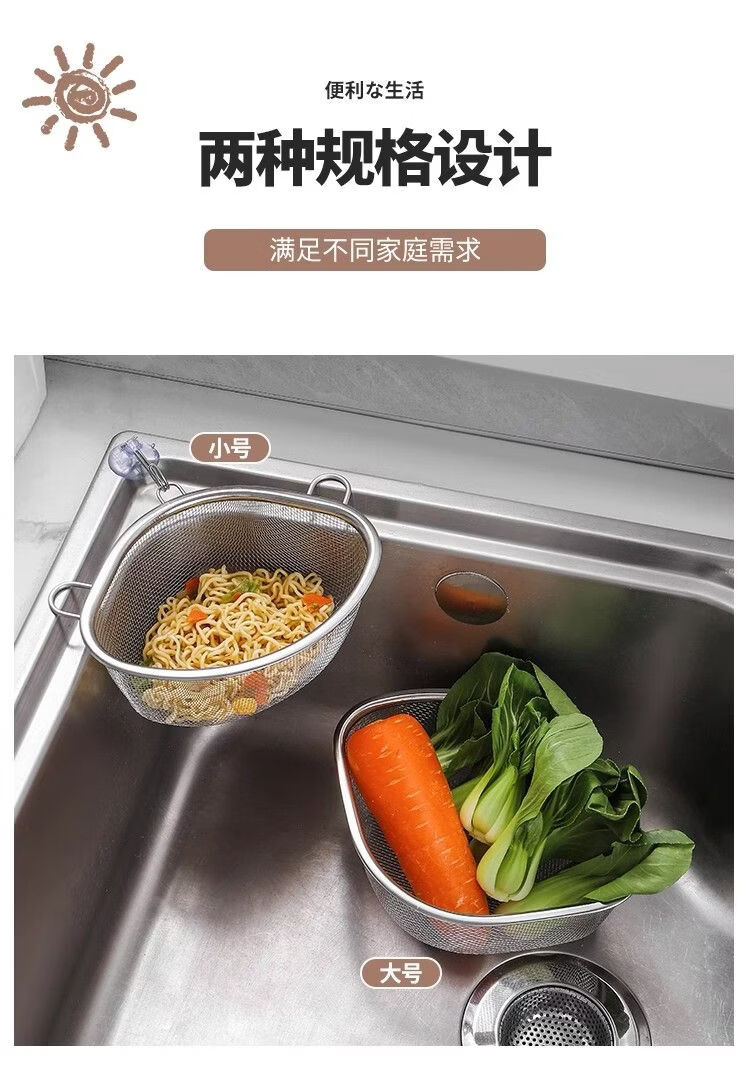 简漾不锈钢水槽垃圾沥水篮三角过滤网厨房洗菜盆架水池剩菜剩饭漏水筐 三角沥水篮浅款挂耳-小号1个装