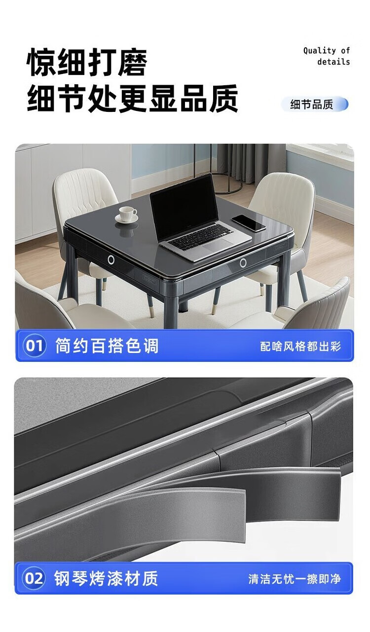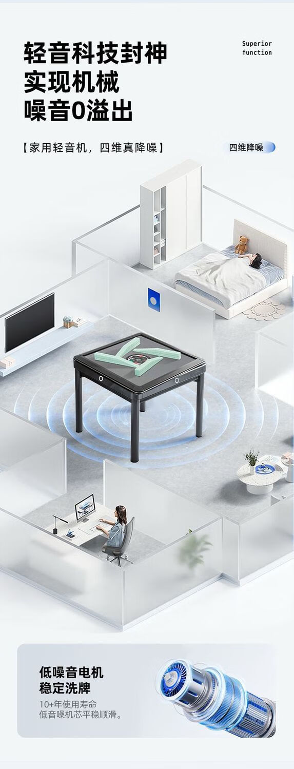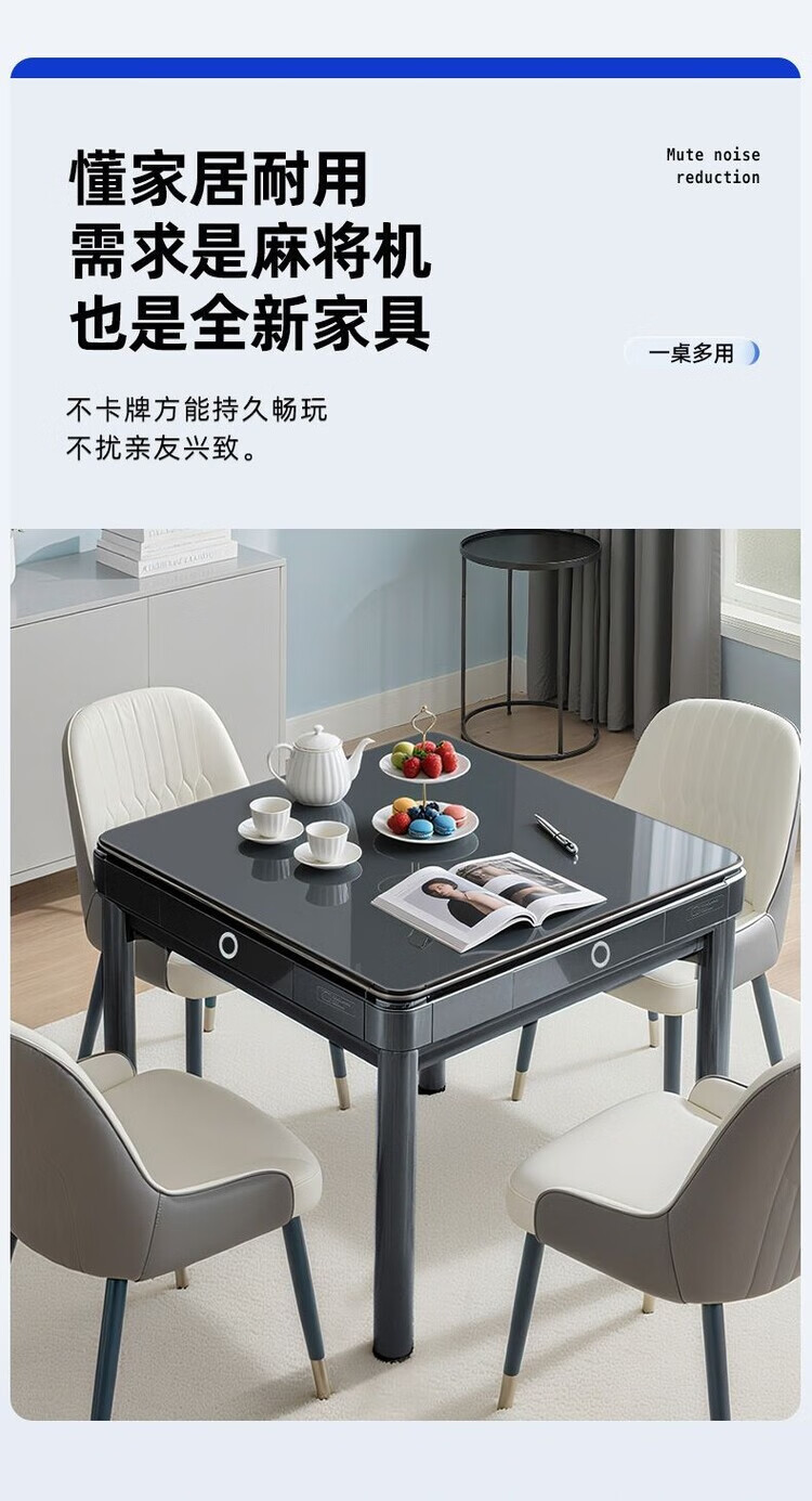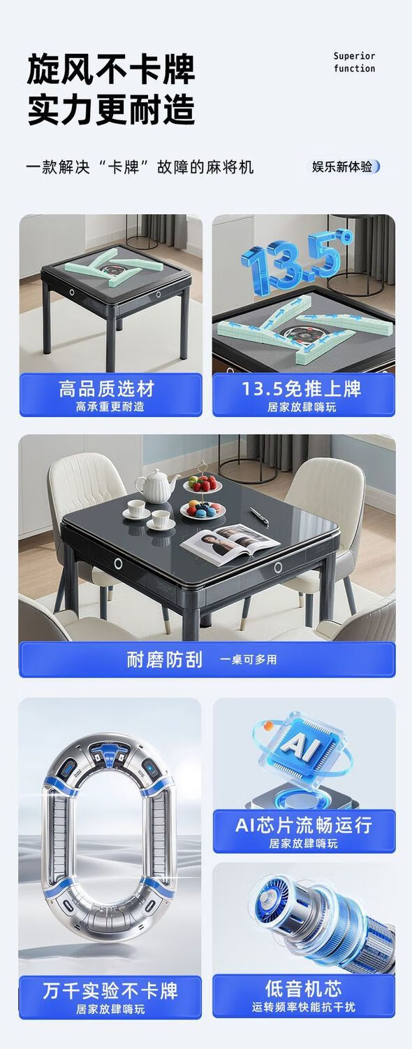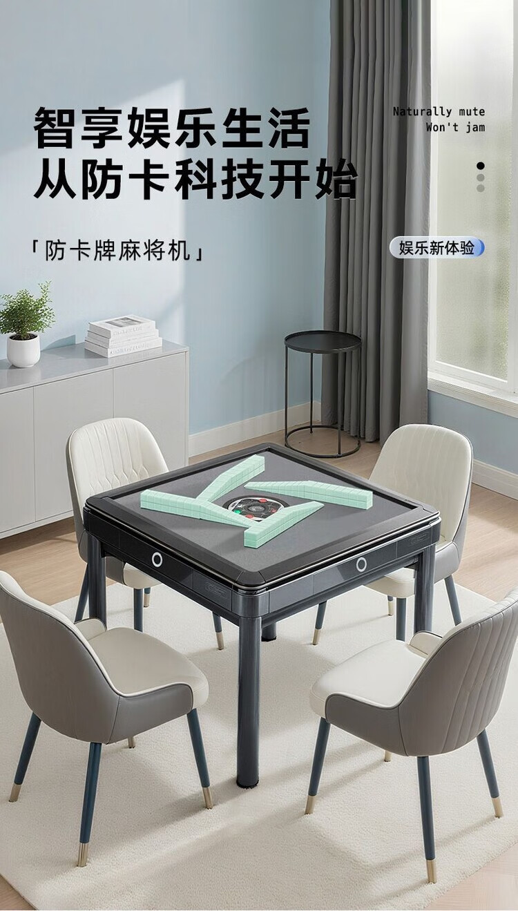 倘然之家新款第六代静音旋翼过山车全自动麻将机麻友家用麻将桌餐桌二合一 旋翼过山车银灰色无盖板+2副麻将 42号-144张最小号蓝绿麻将牌