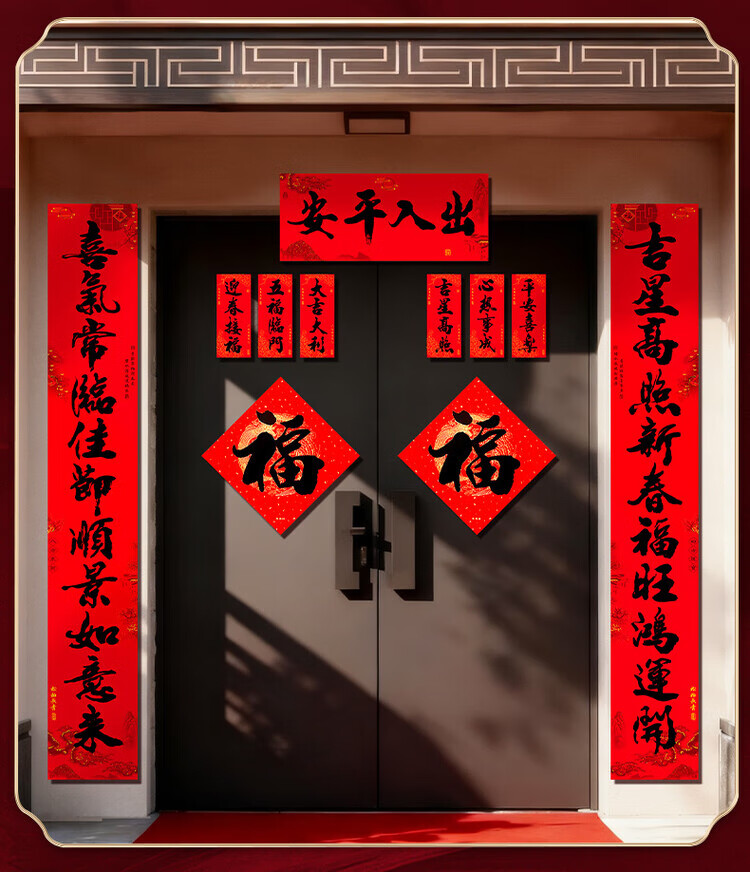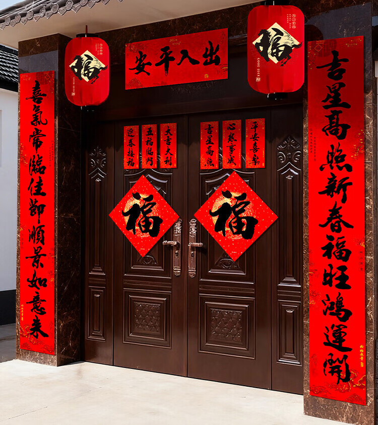 2026卡纸款马年对联大礼包春节用品入户门贴福字大门装饰套装春联 福到我家【25件套】春节大礼包
