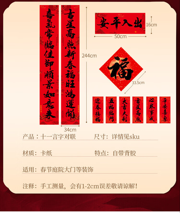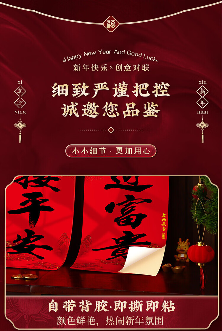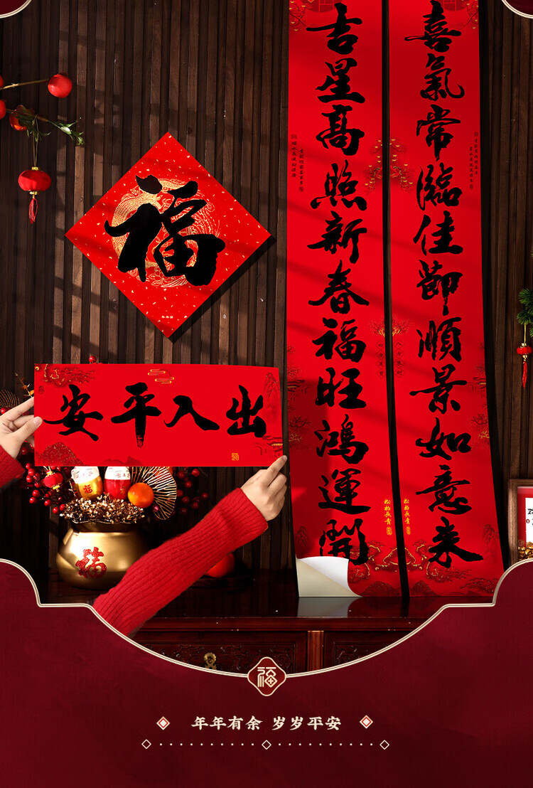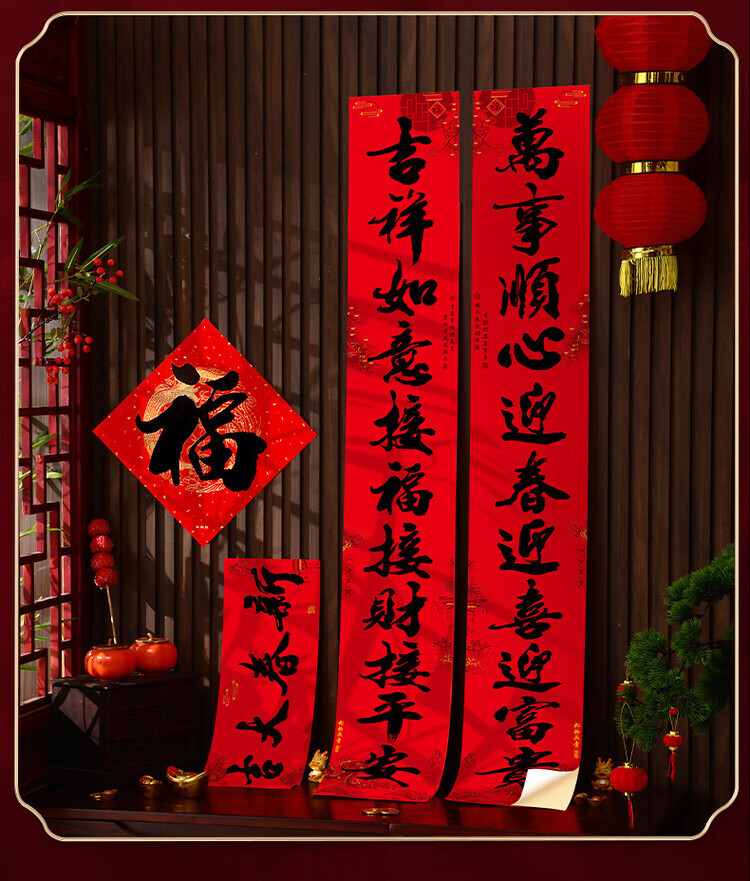 OYKTN2026新款马年新年春节书法黑字对联福字过年装饰布置喜庆春联家用 (一帆-万事)+福字*2(全背胶防晒撕不烂 十一言对联-防水防晒撕不烂