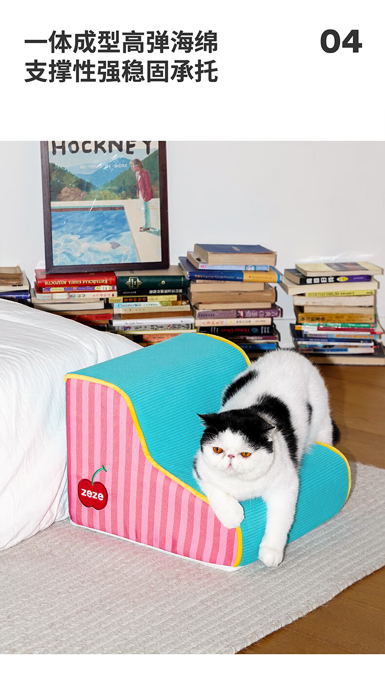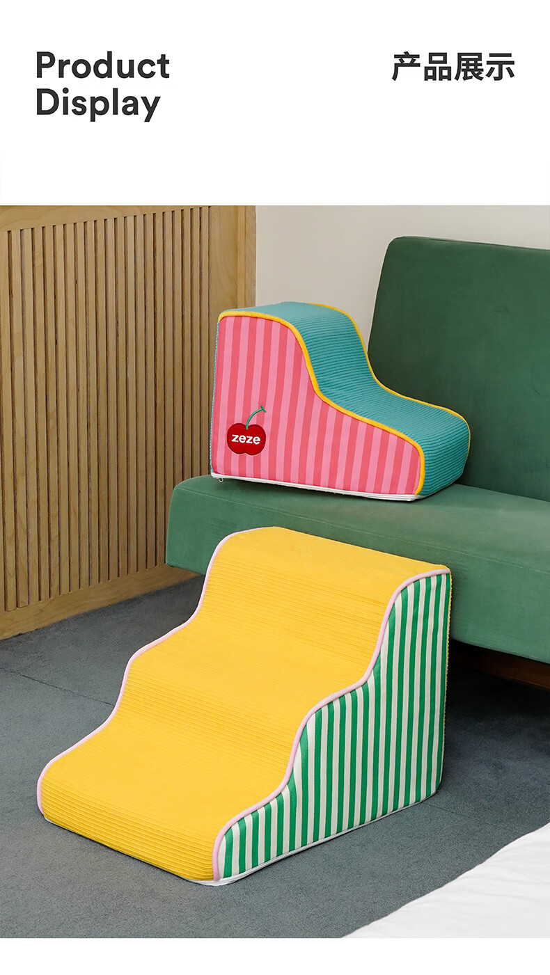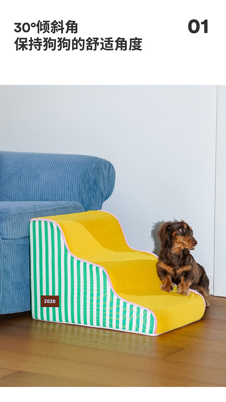 ZEZE宠物楼梯台阶小型狗狗上下床梯子高龄犬床边爬梯可拆洗海绵 两层圣诞小鹿款 | 30cm高