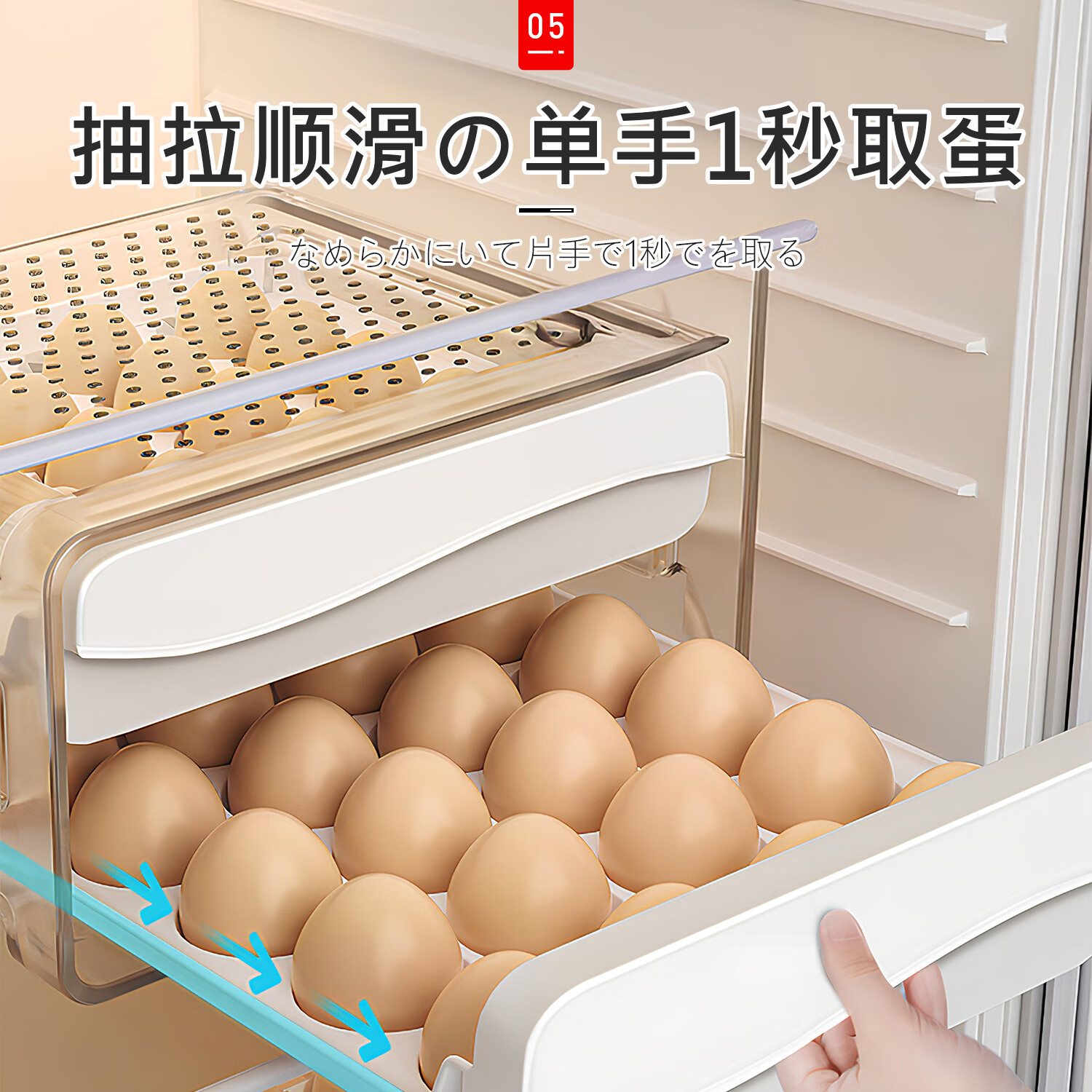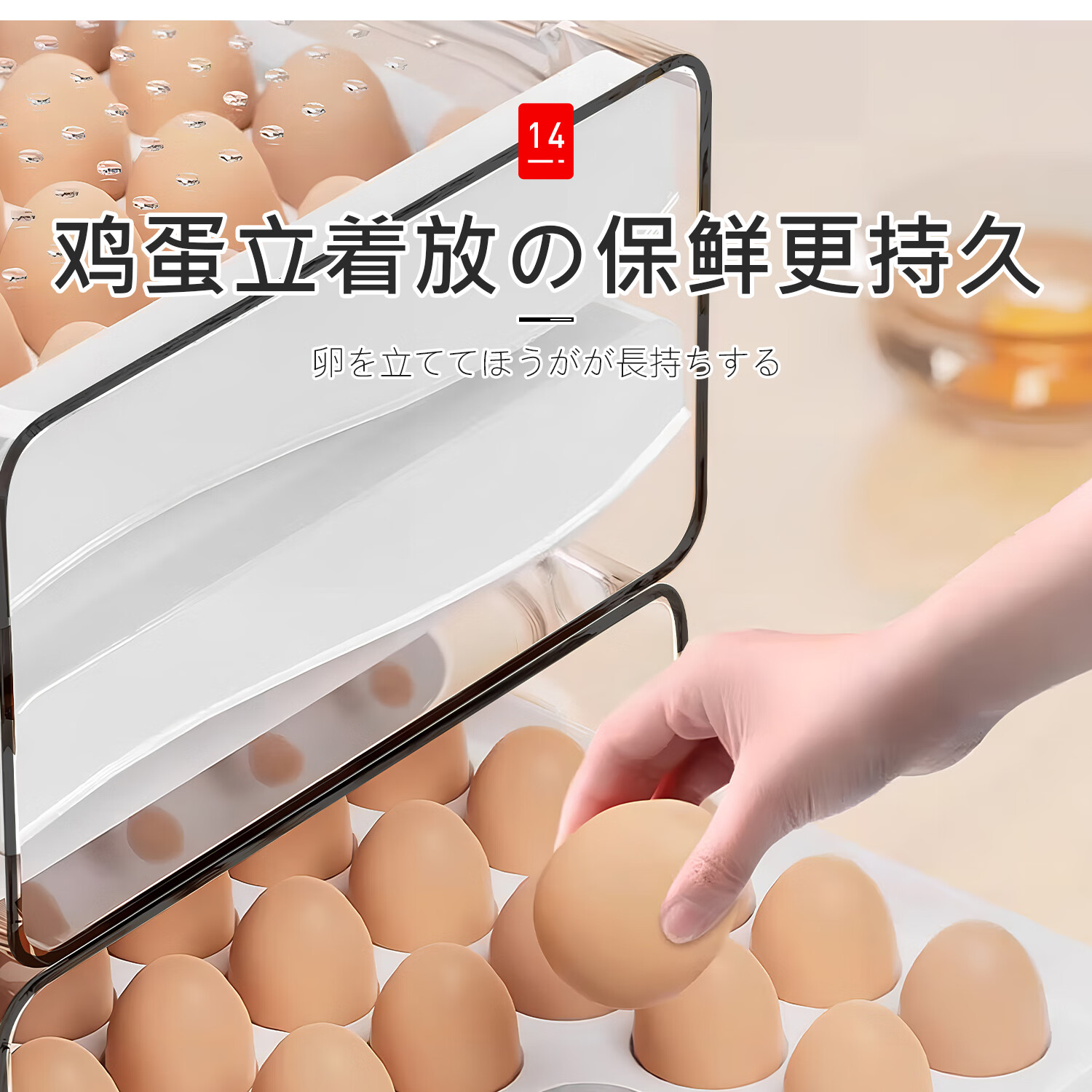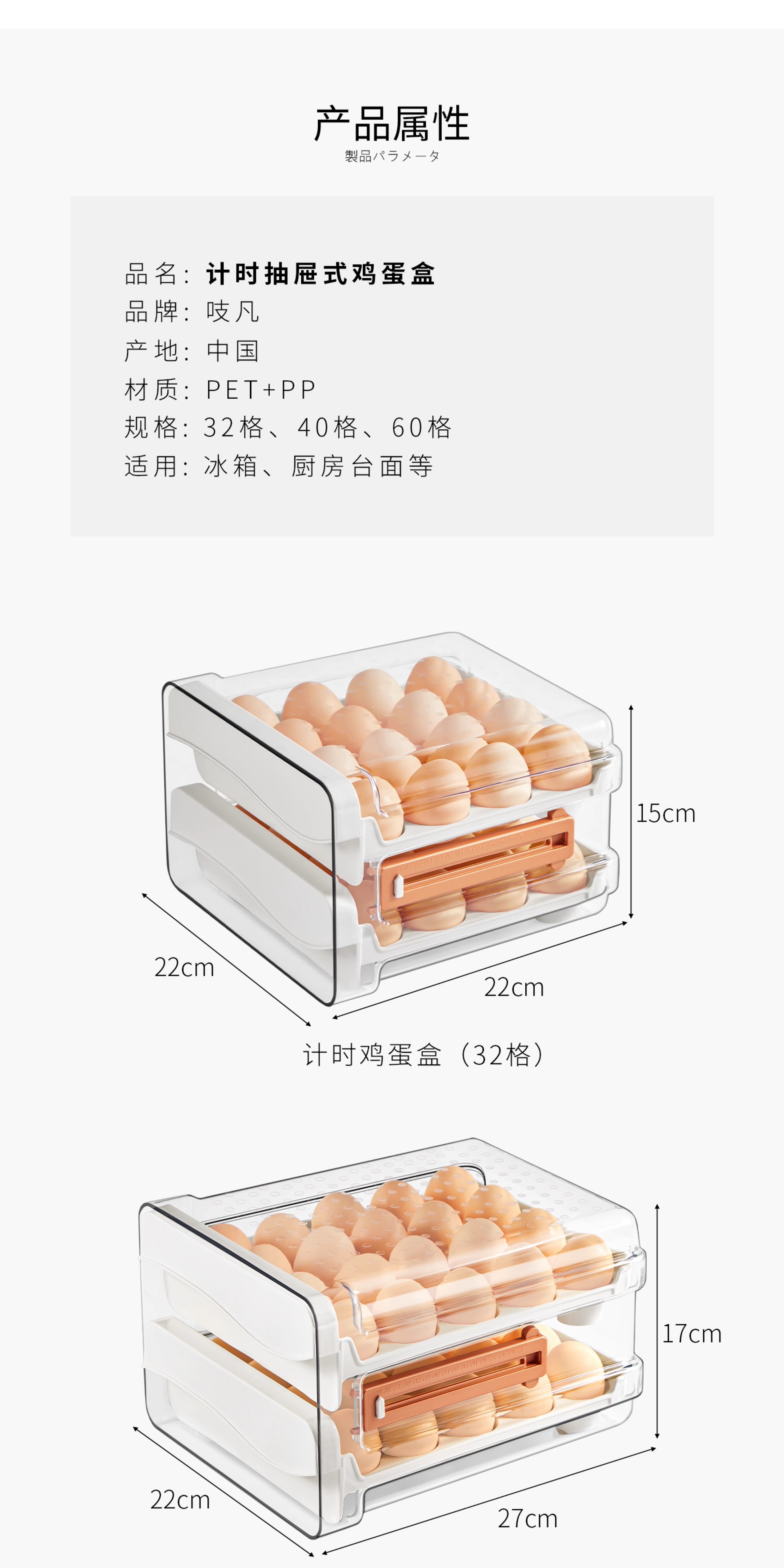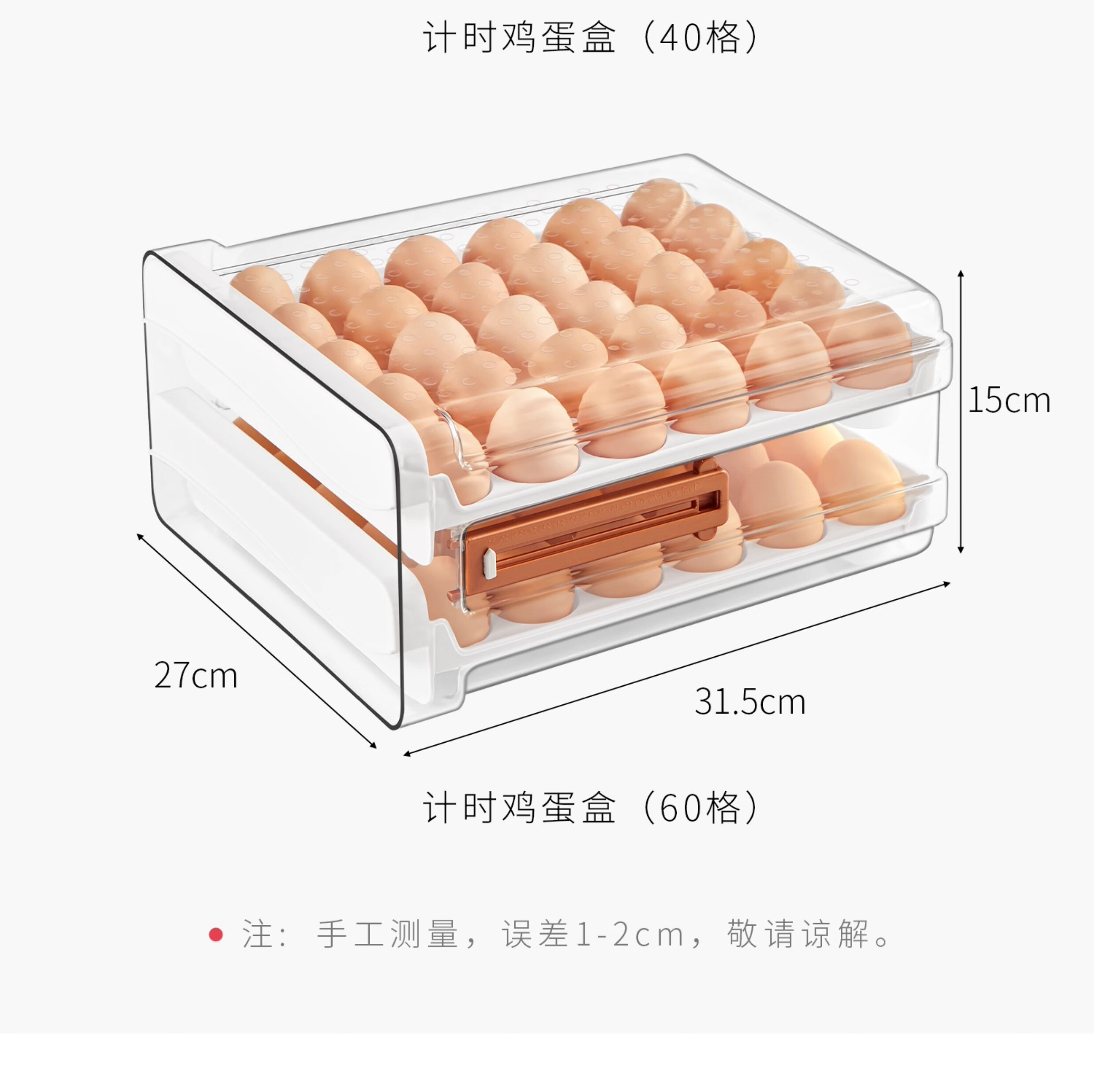 吱凡日本鸡蛋收纳盒冰箱用食品级抽屉式装放鸡蛋架托家用厨房整理神器 【1个装】双层40格-带计时 【0异味】