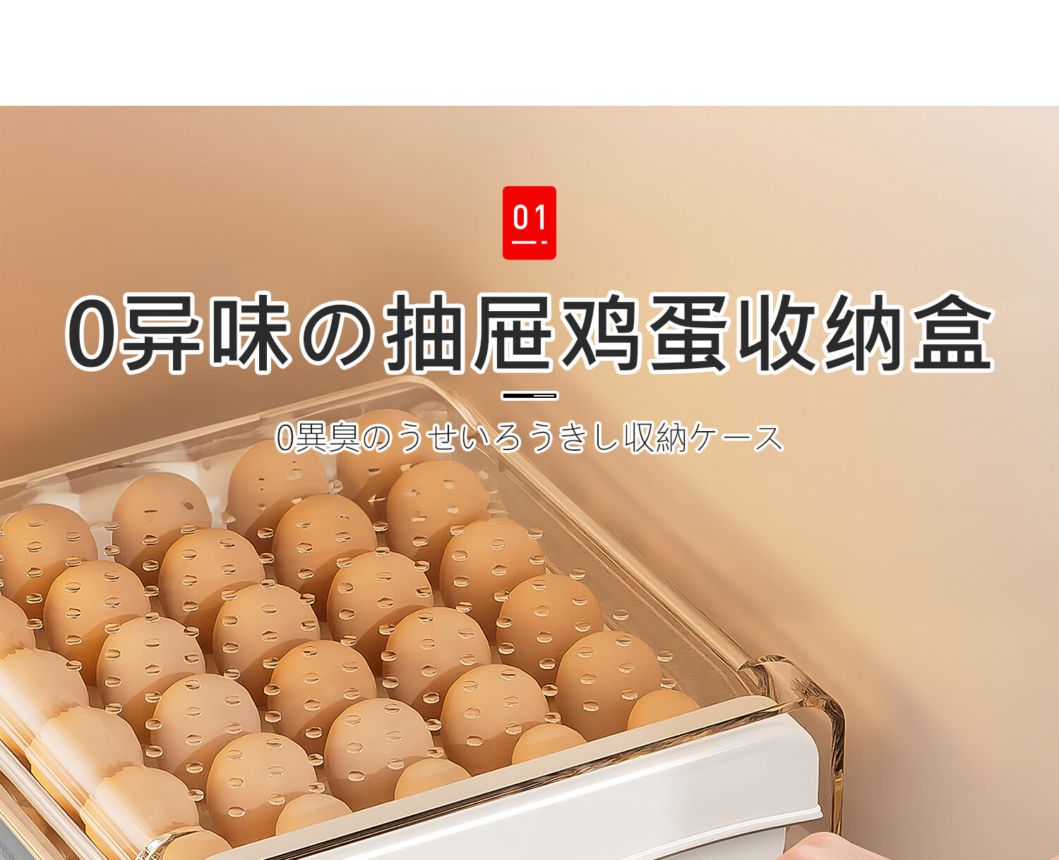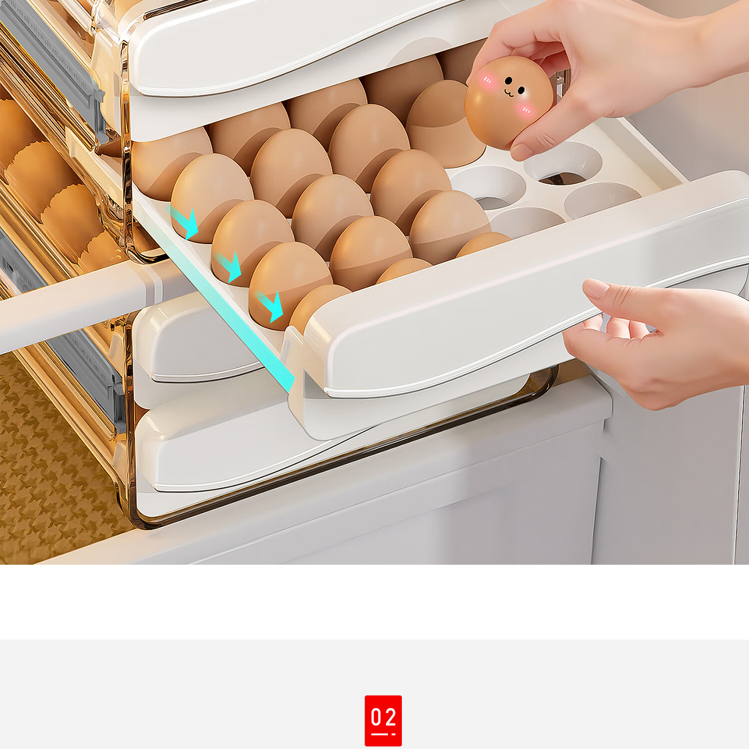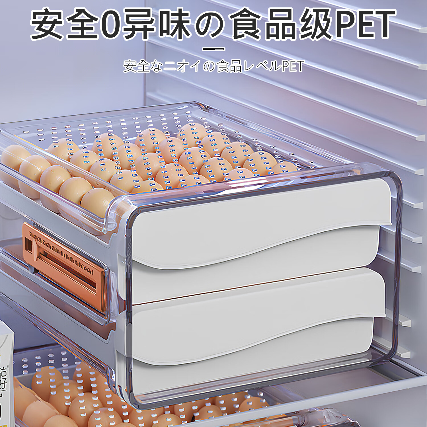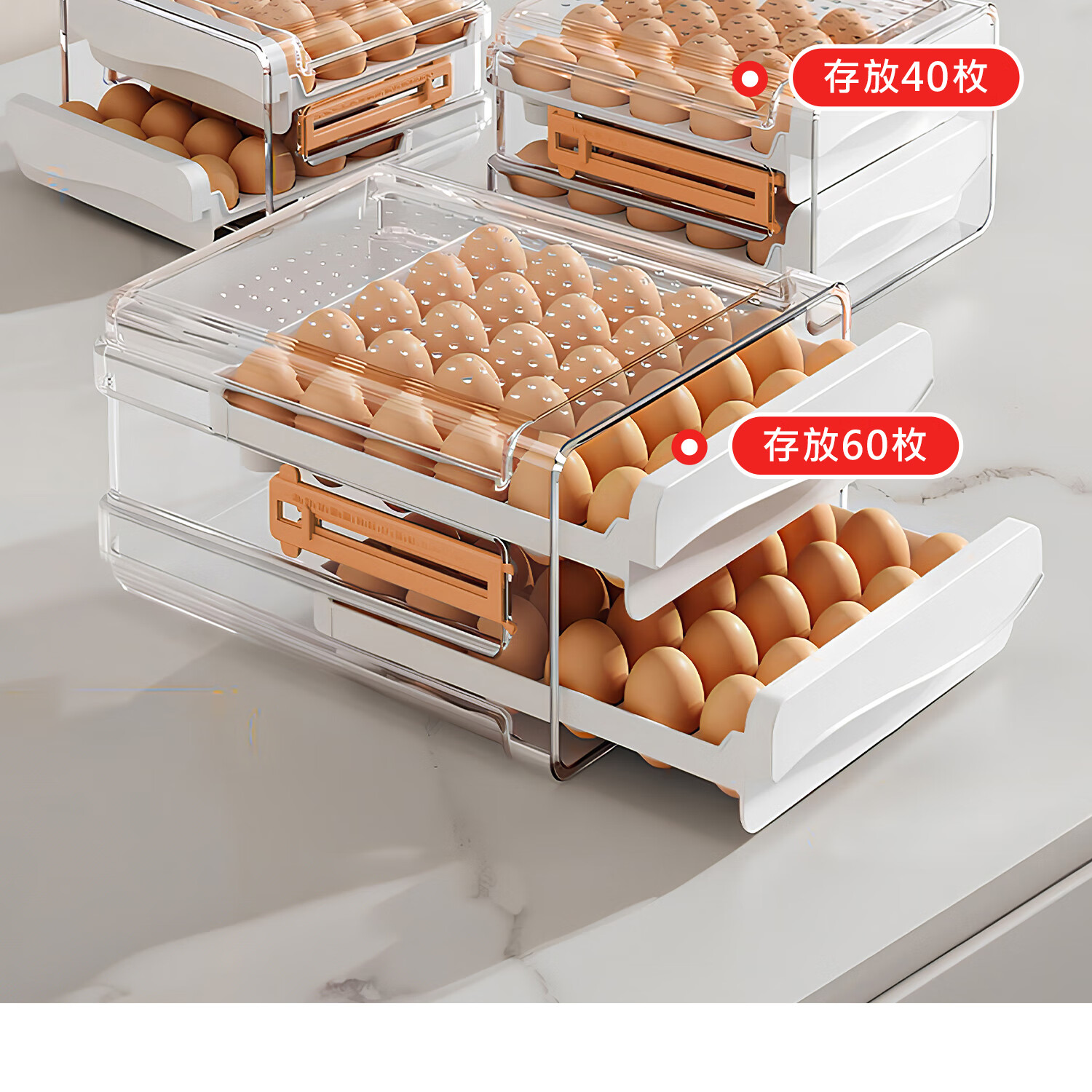 吱凡日本鸡蛋收纳盒冰箱用食品级抽屉式装放鸡蛋架托家用厨房整理神器 【1个装】双层40格-带计时 【0异味】