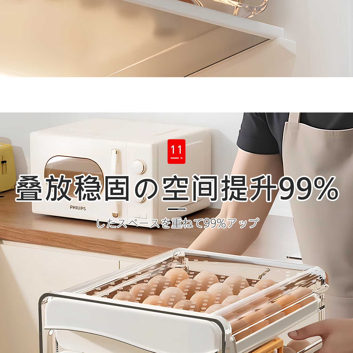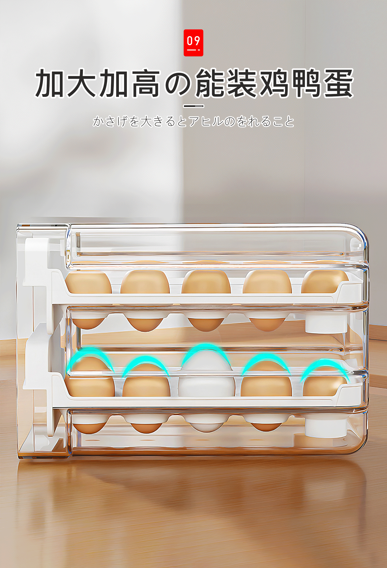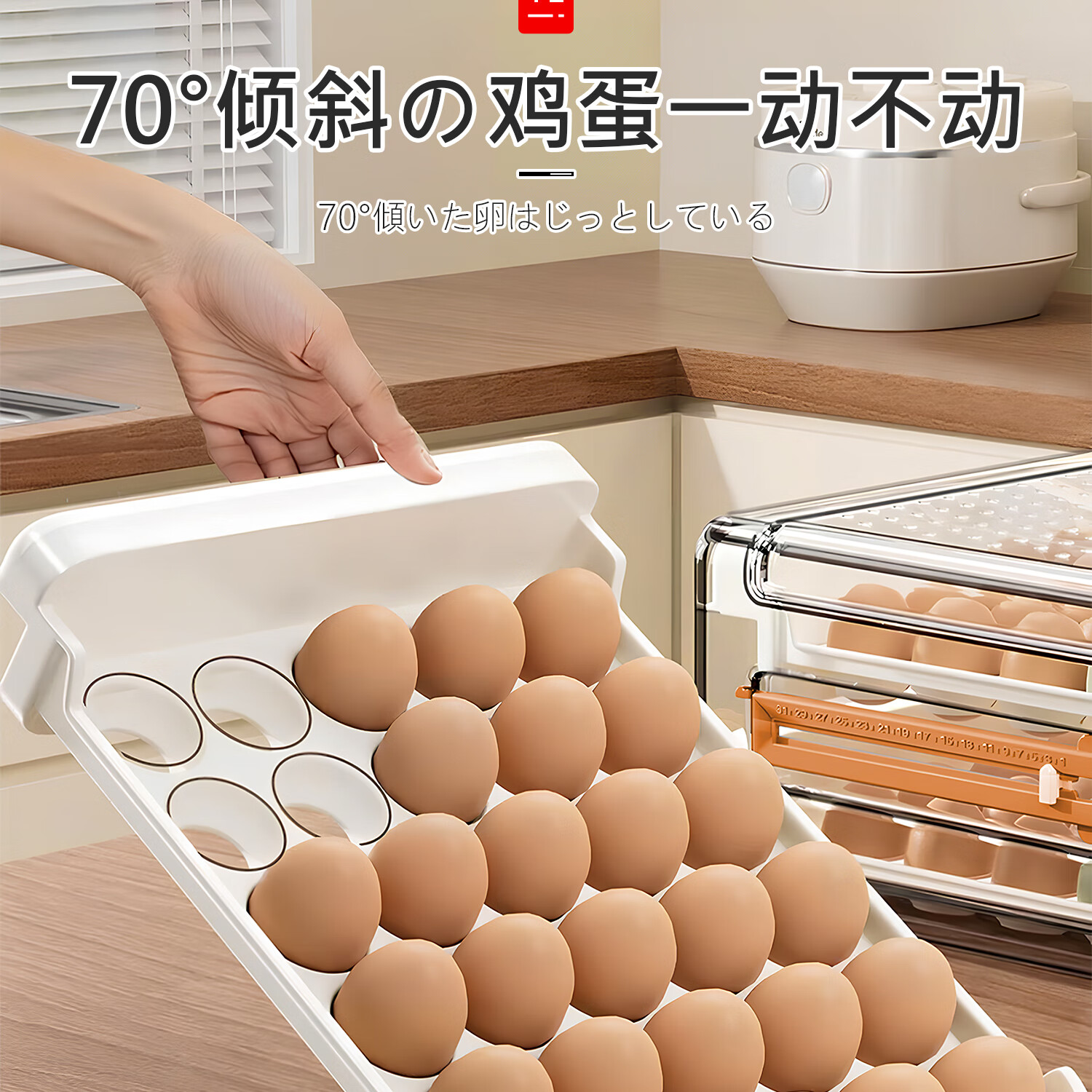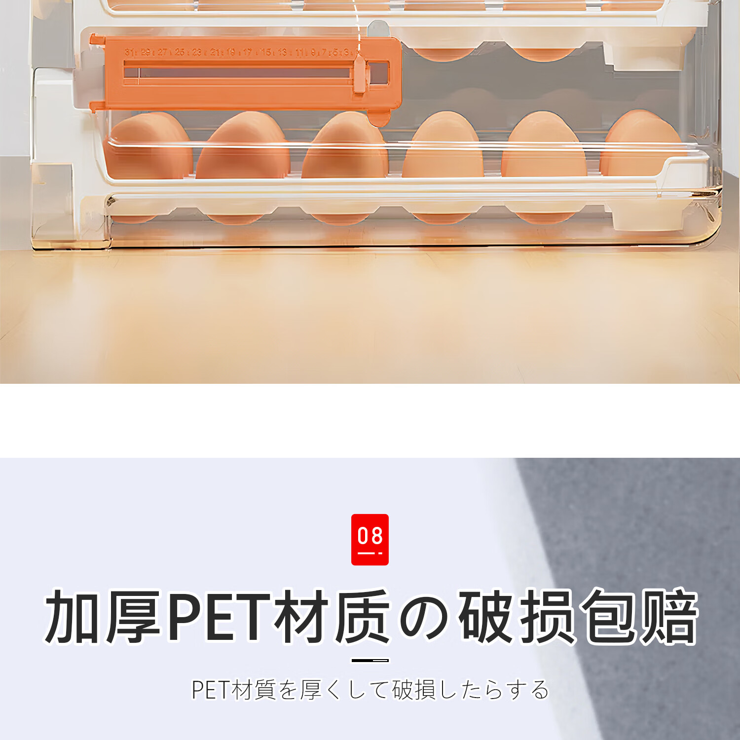 吱凡日本鸡蛋收纳盒冰箱用食品级抽屉式装放鸡蛋架托家用厨房整理神器 【1个装】双层40格-带计时 【0异味】