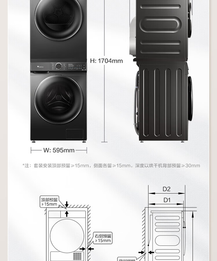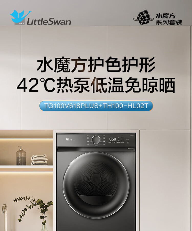 小天鹅(LittleSwan)小乌梅3.0洗烘套装10KG全自动滚筒洗衣机+10KG变频热泵烘干机 纯平全嵌一级能效 TG10VE40+TH10VE40