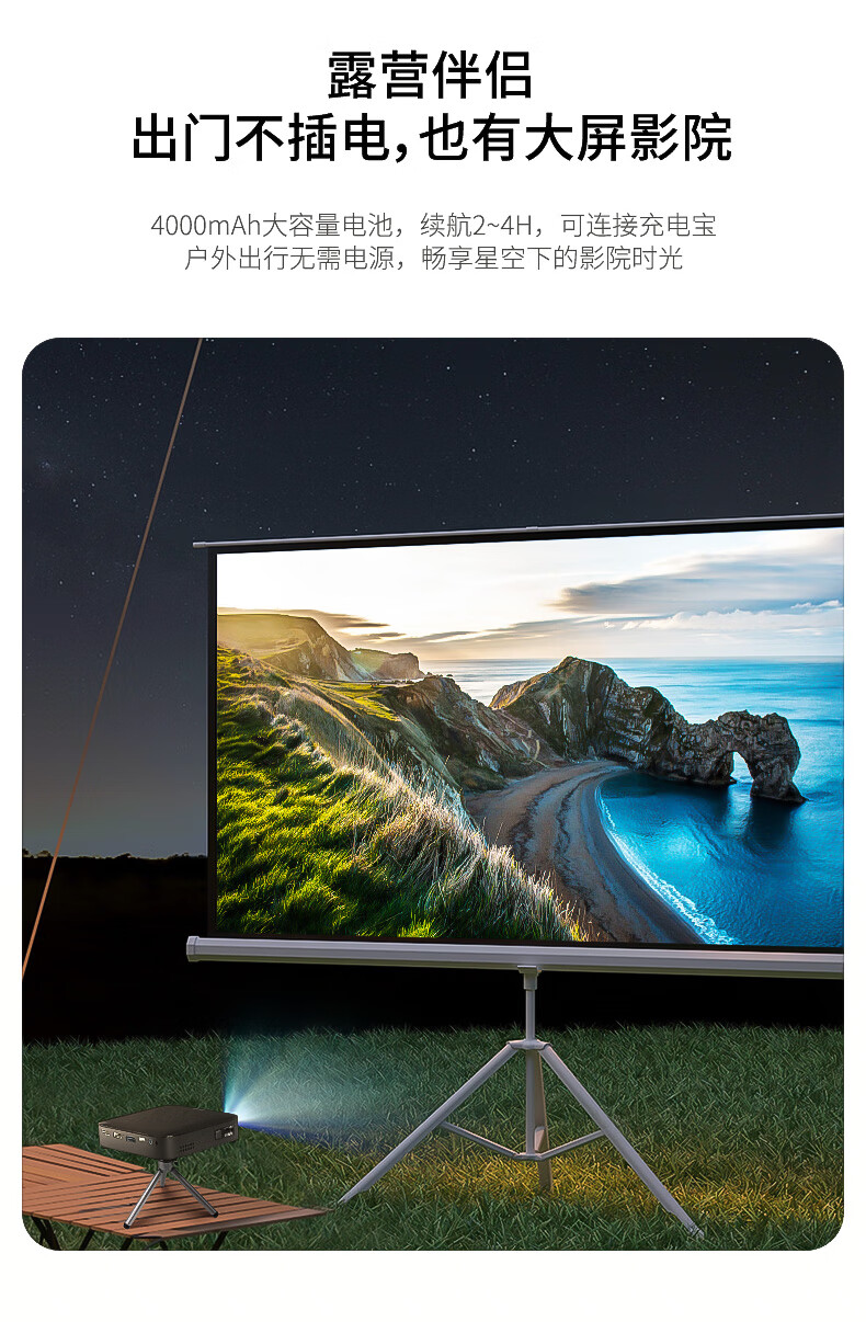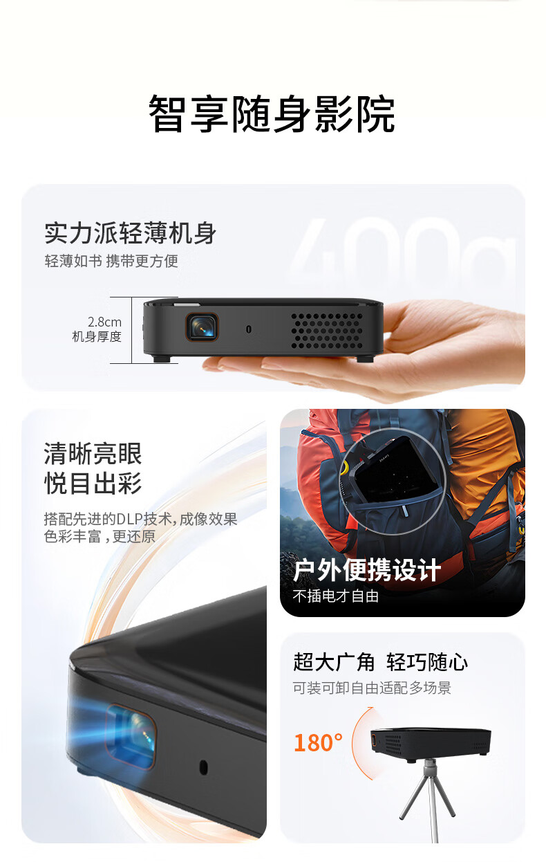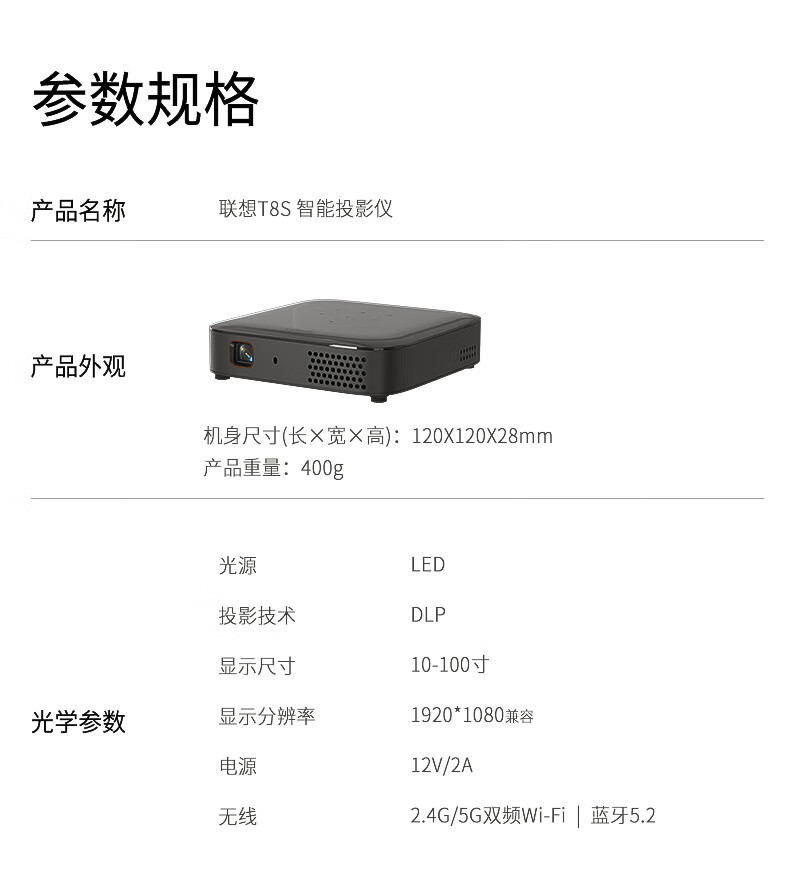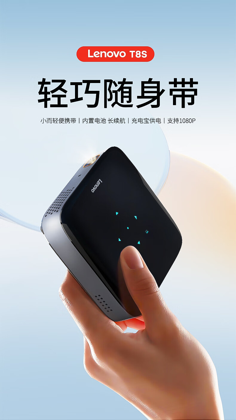 联想(Lenovo)T8S 小微型家用投影仪 高清迷你便携式户外手机投影机 内置电池 手机投屏 2+32g大内存