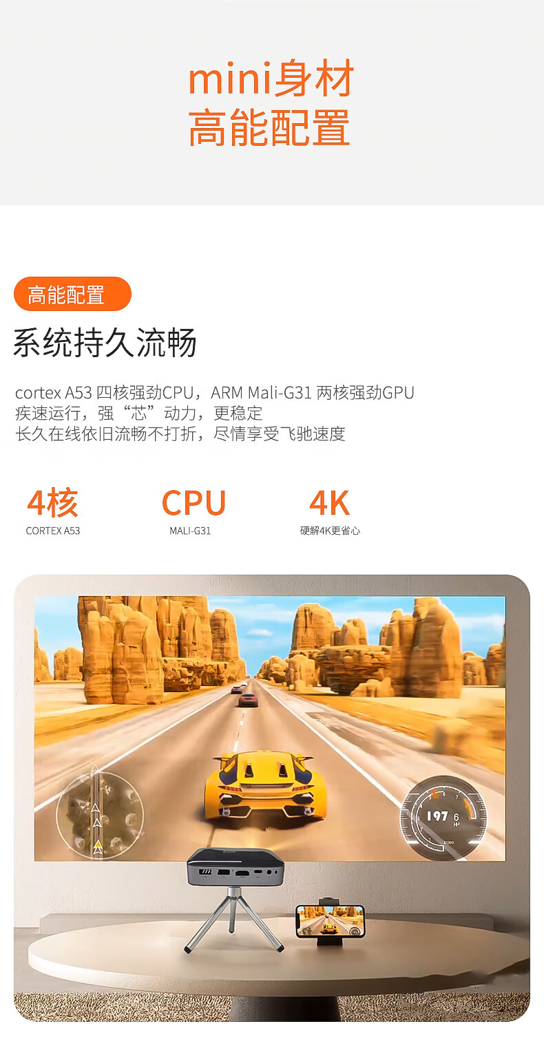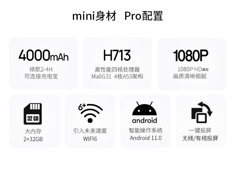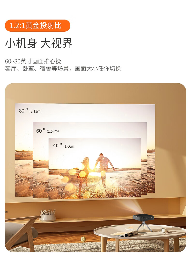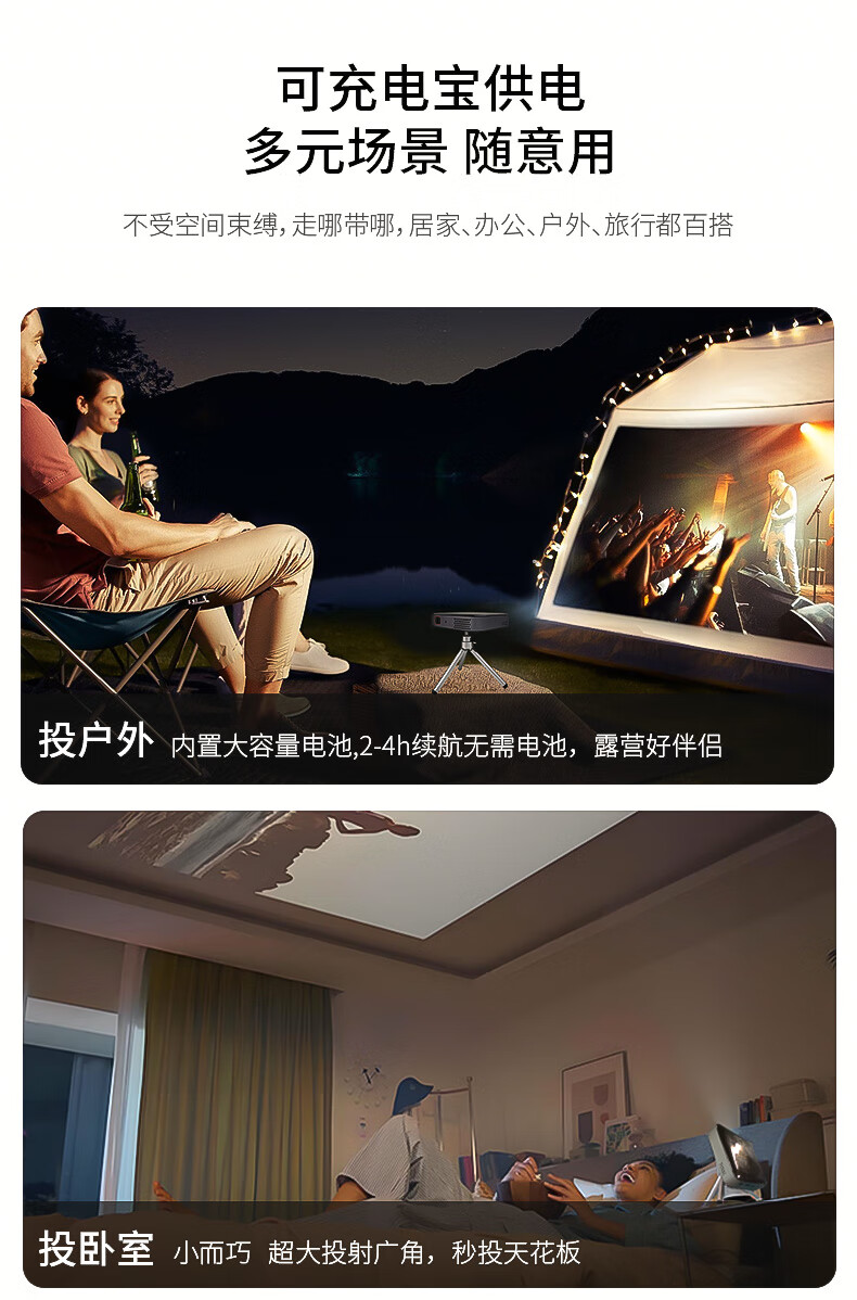 联想(Lenovo)T8S 小微型家用投影仪 高清迷你便携式户外手机投影机 内置电池 手机投屏 2+32g大内存