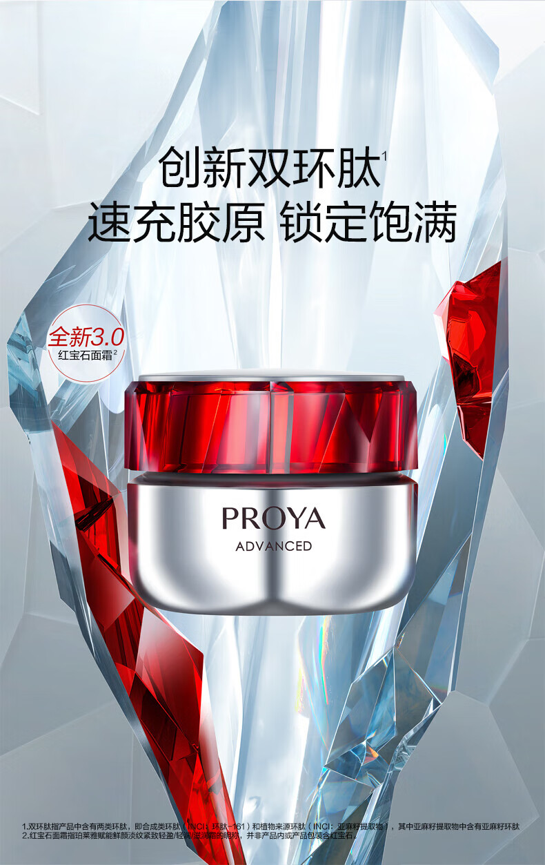 珀莱雅(PROYA)红宝石面霜3.0 抗皱紧致淡化细纹 保湿乳液面霜女士 (轻润霜50g)