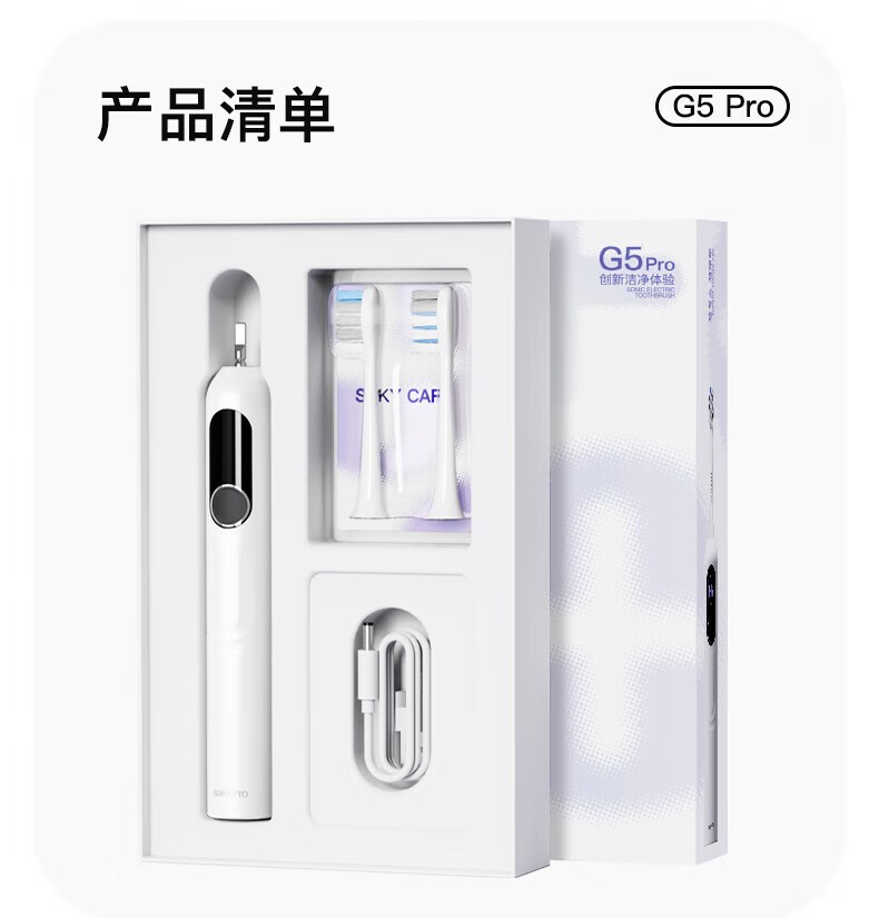 舒客大屏刷1级清洁情侣电动牙刷成人/学生送男友/女友 情人节生日圣诞礼物 国家补贴G5pro雪域白 礼盒
