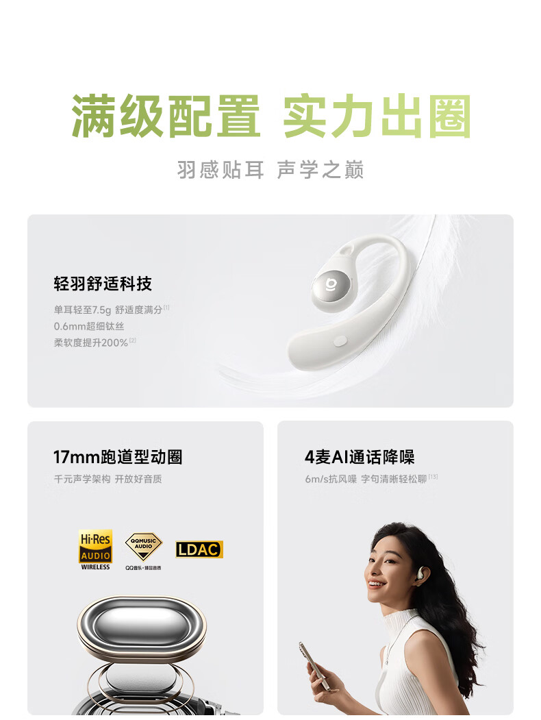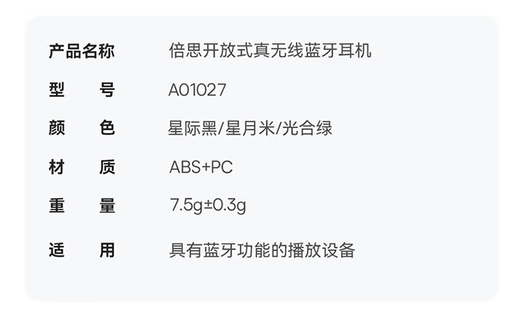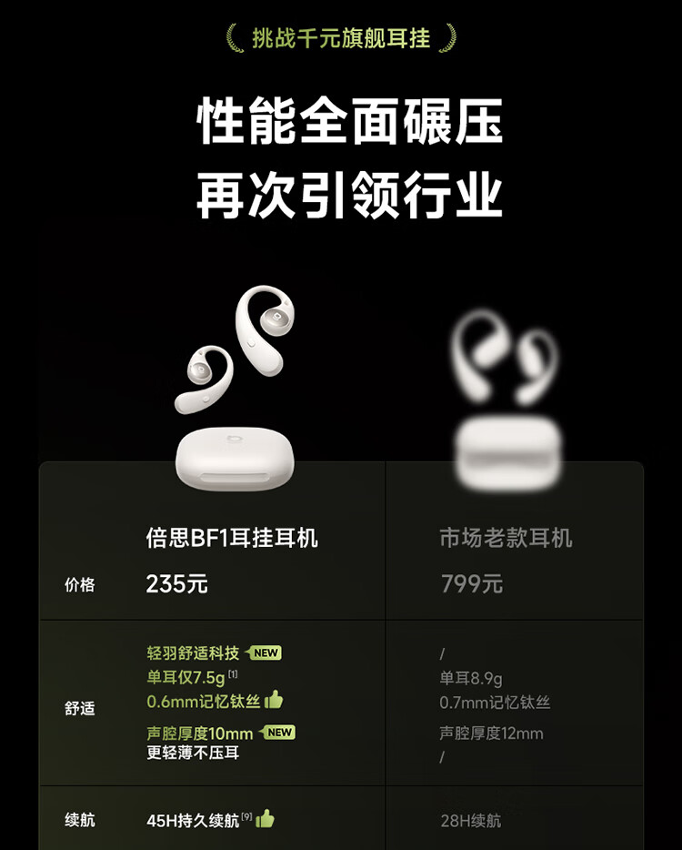 倍思【旗舰新品】BF1蓝牙耳机挂耳式开放式运动跑步长续航通话适用于苹果华为手机