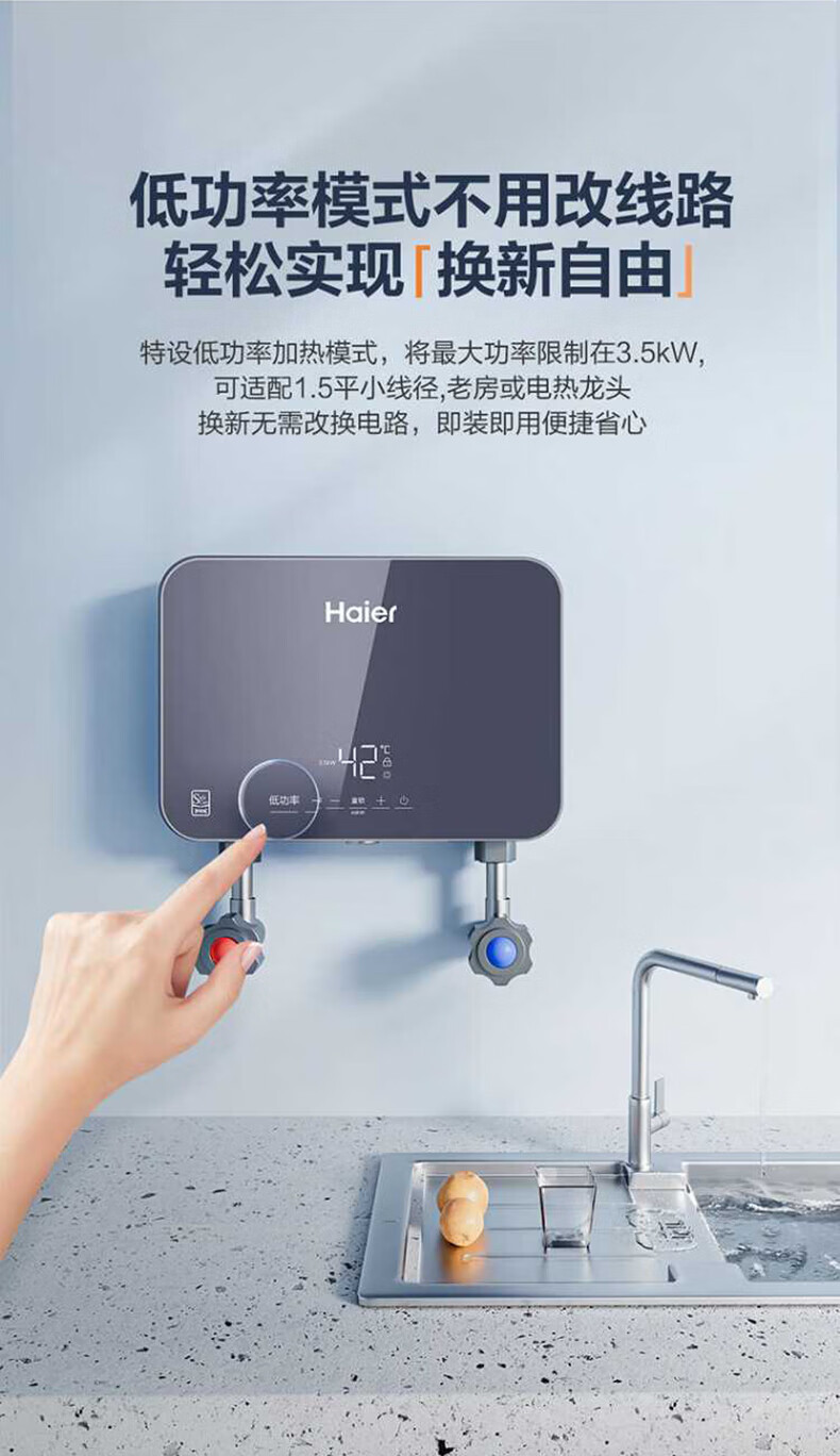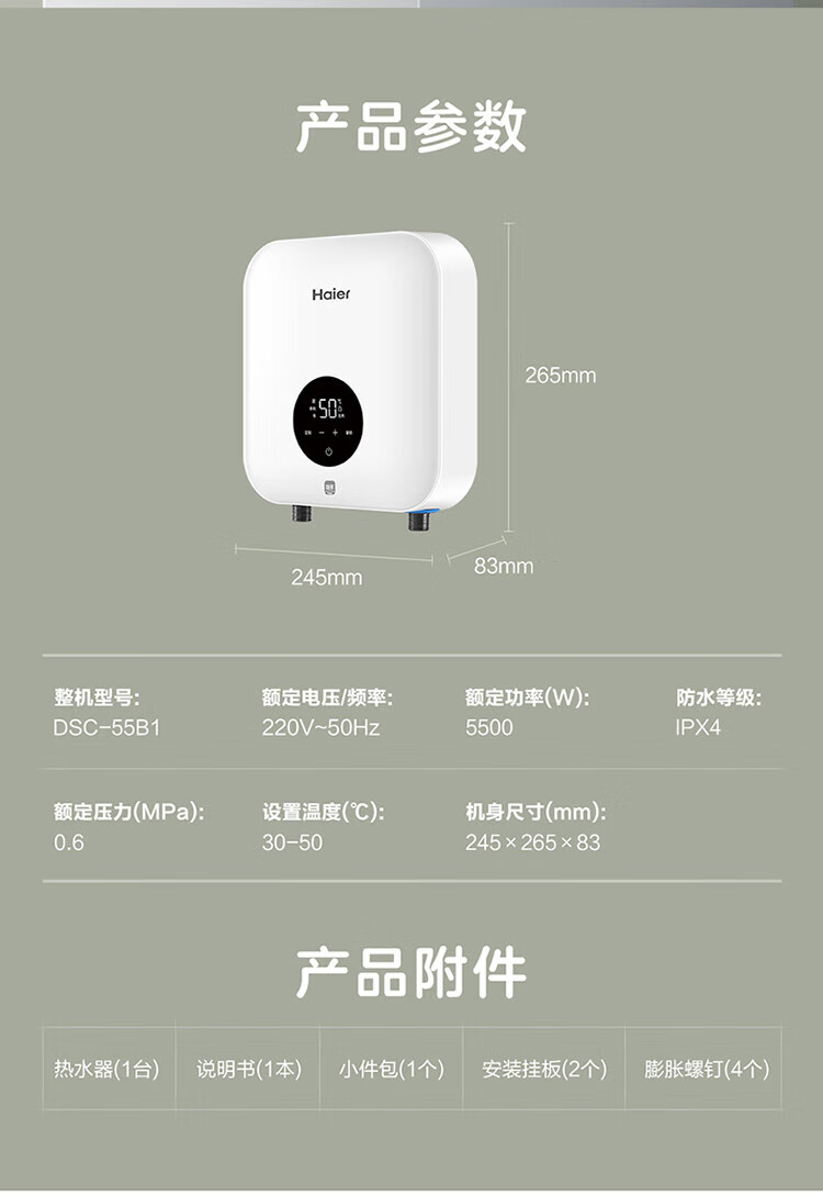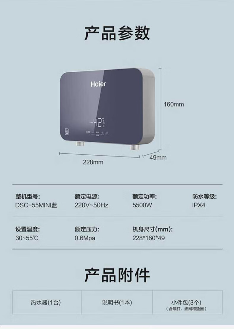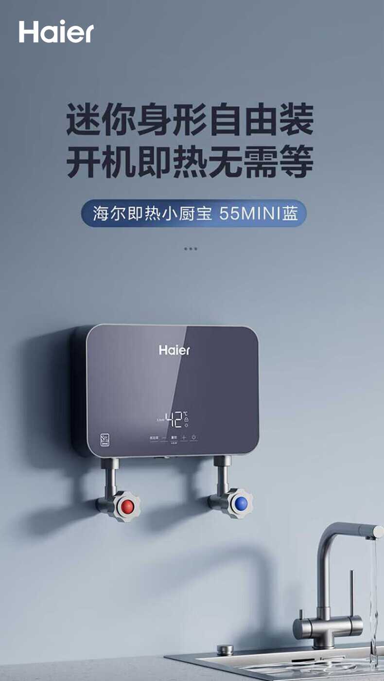 海尔(Haier)热水器即热式小厨宝电热水器电即热 5500W变频即开即热 小尺寸热水无限供应55MINI 0L 5500W 55mini蓝